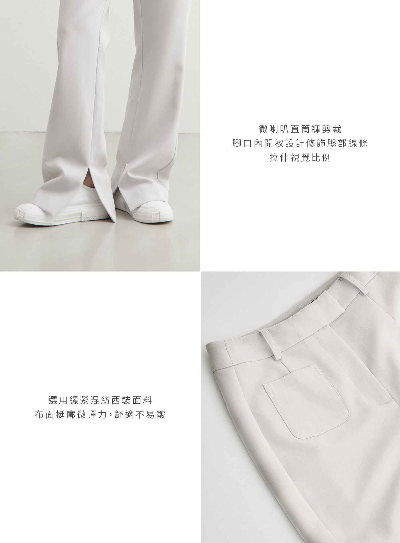 - 腳口內開衩設計修飾腿部線條,拉伸視覺比例