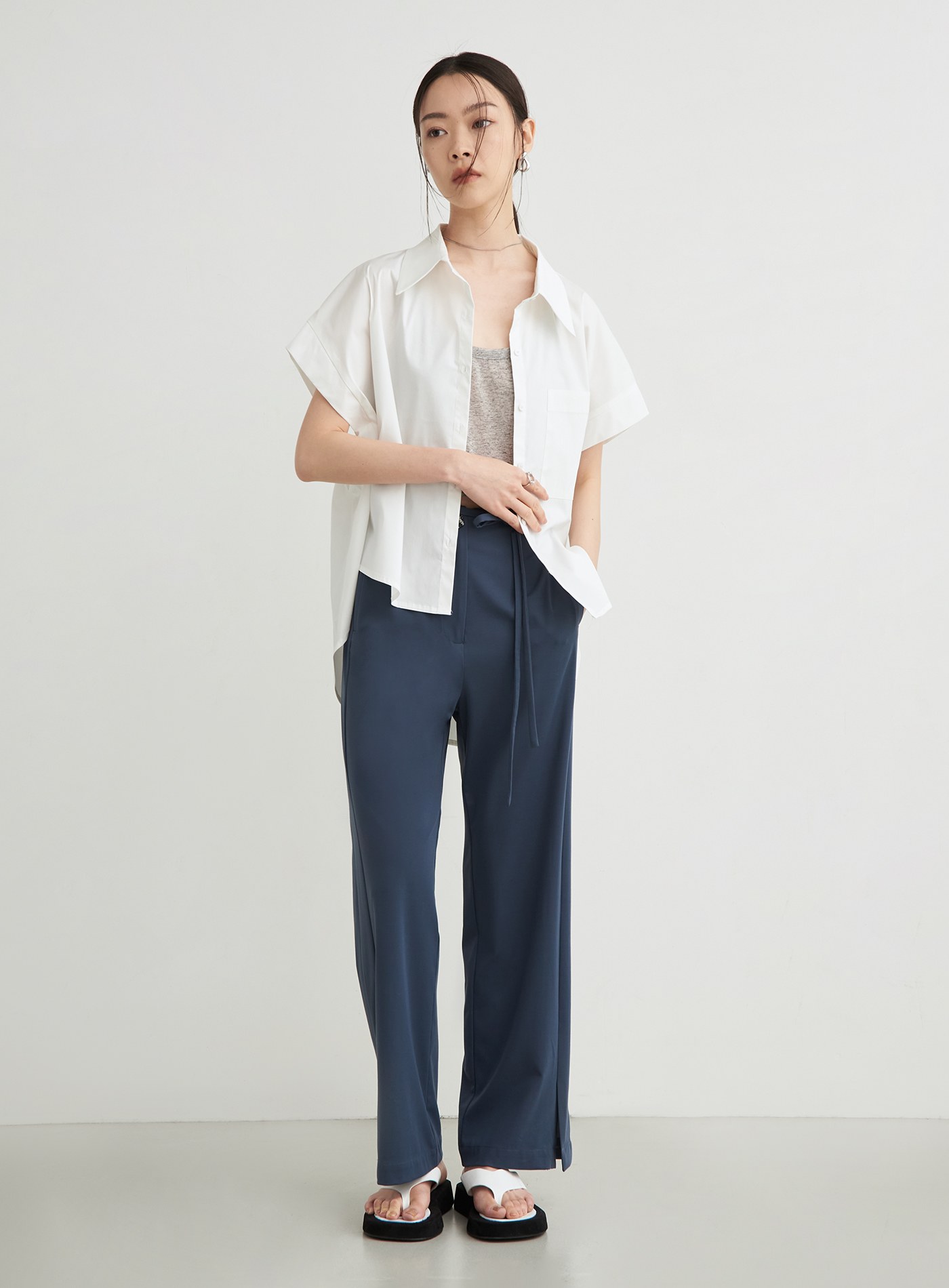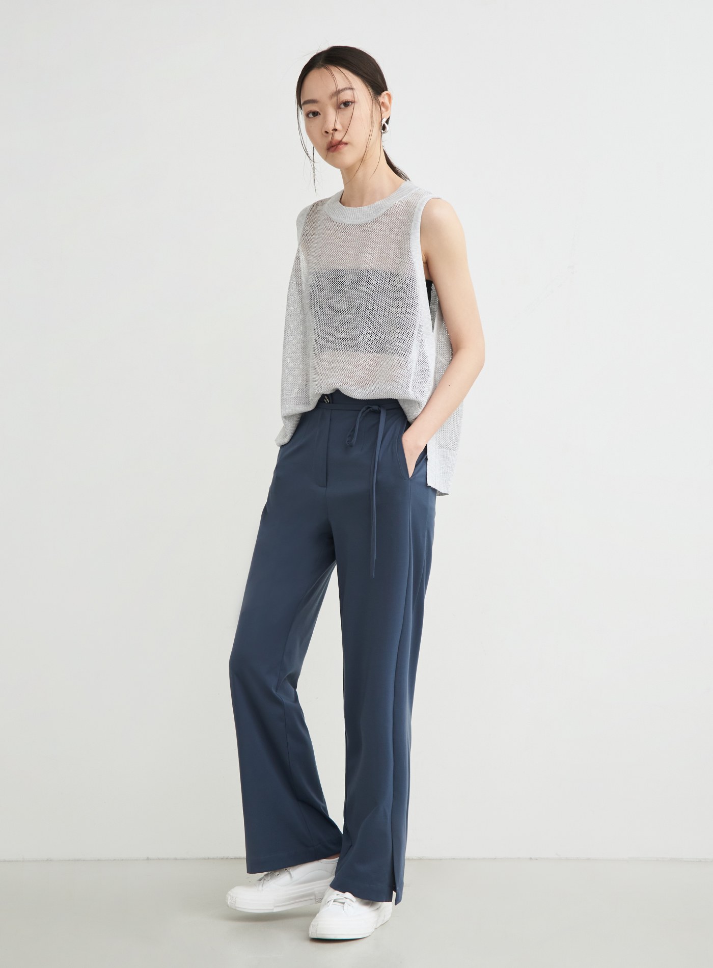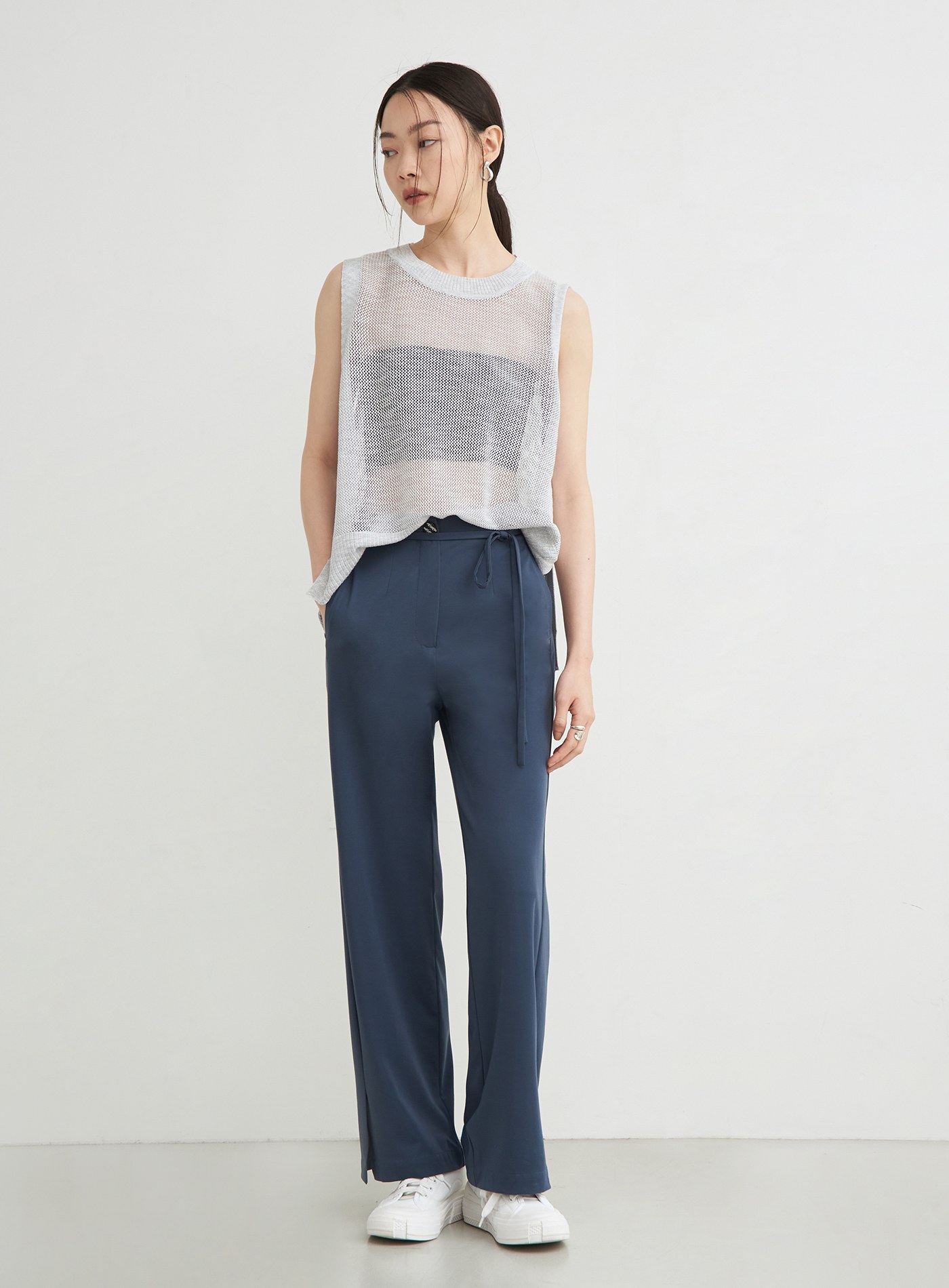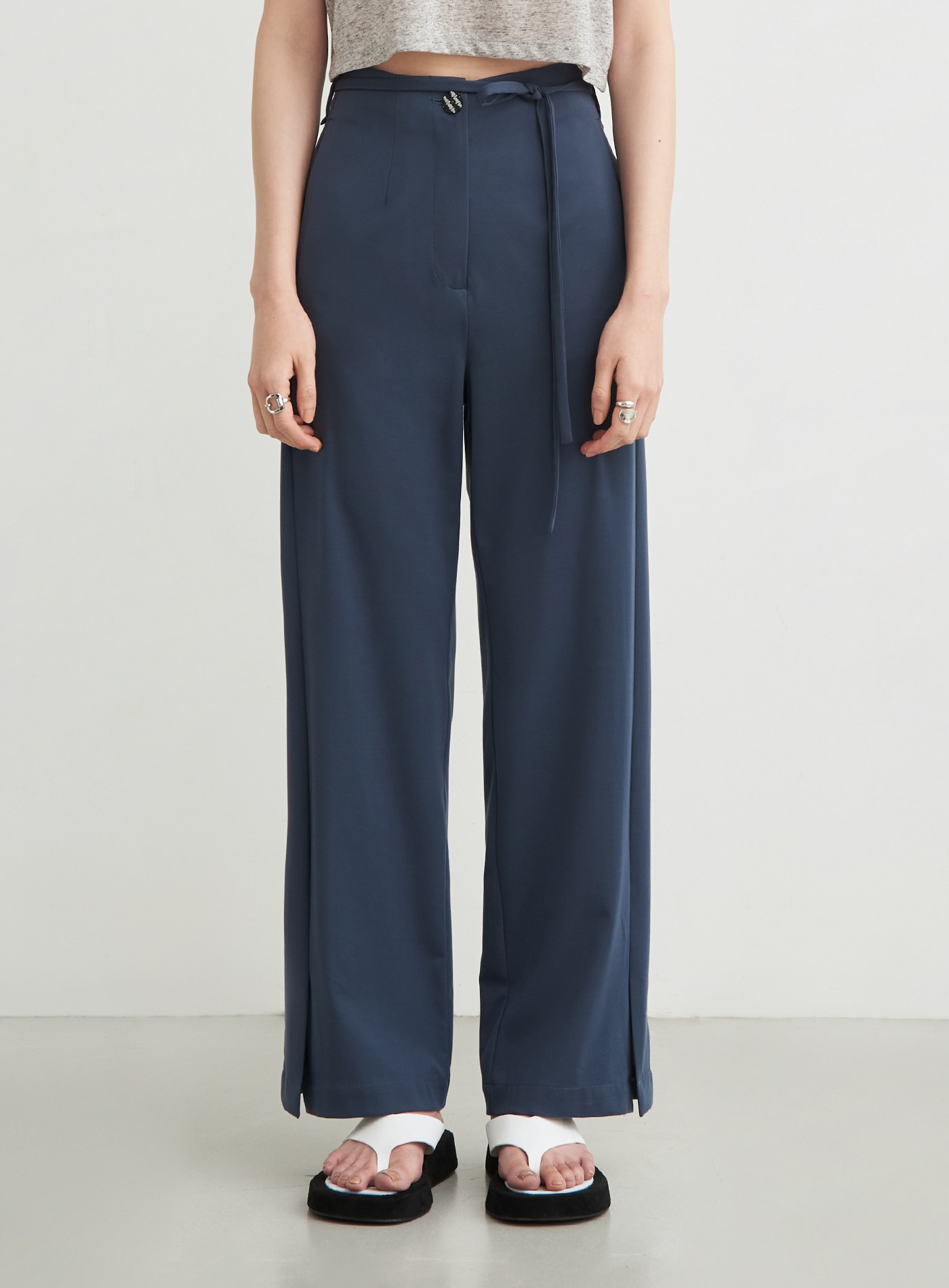 - 腳口開衩設計/附可拆式綁帶/後身箭型腰耳細節