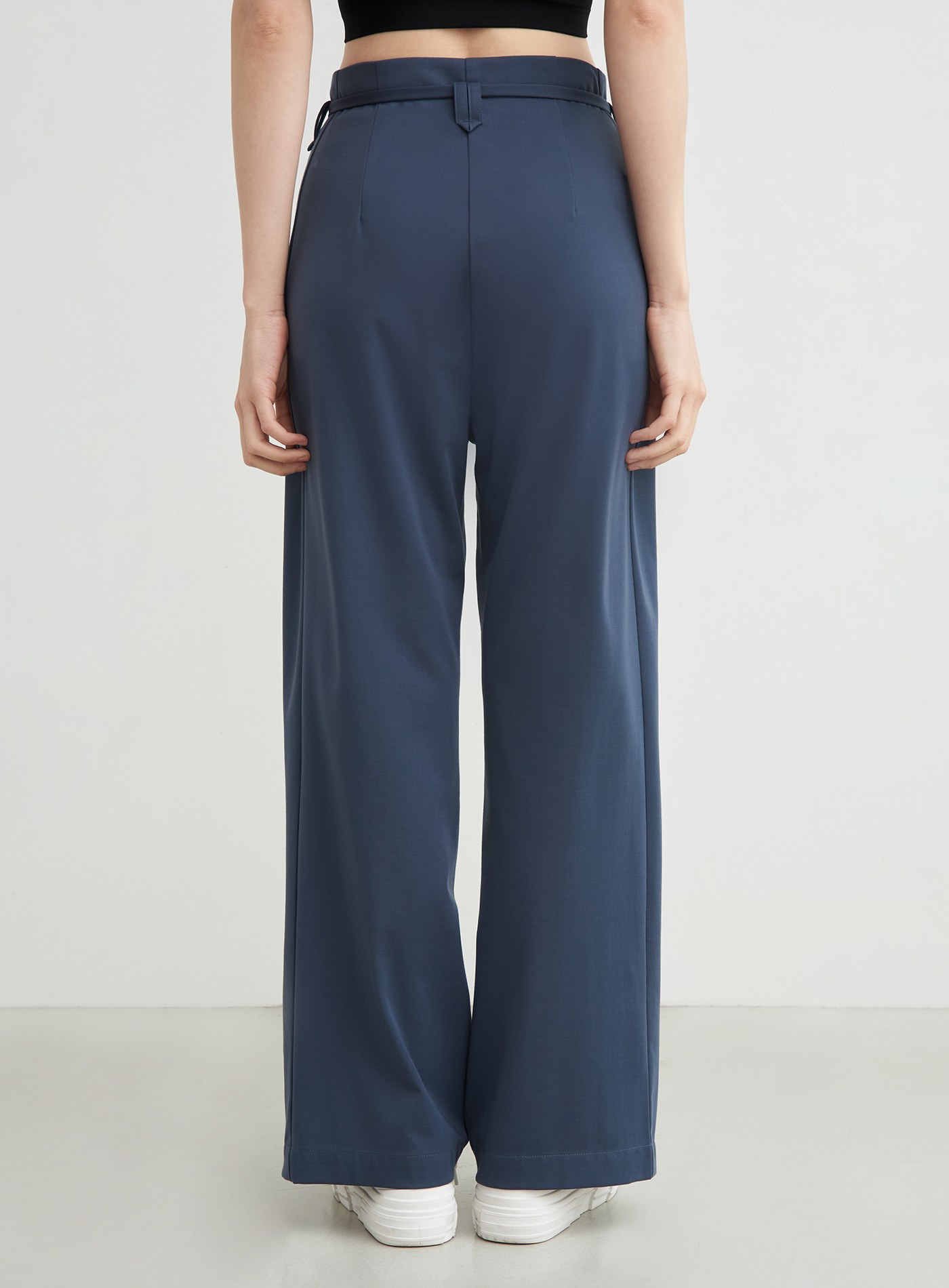 - 直筒寬褲版型,兩側斜邊剪接前移設計,修飾腿部線條