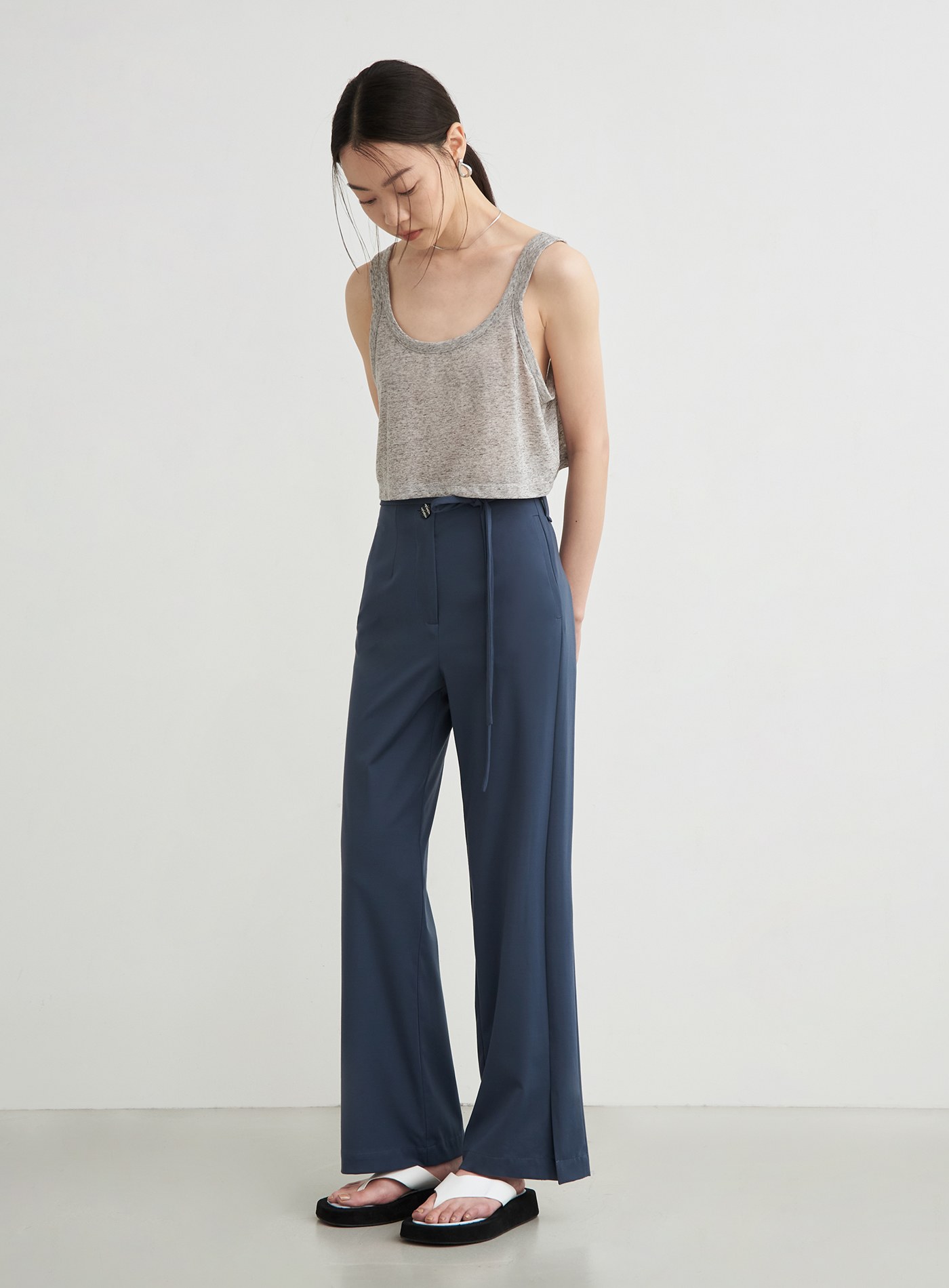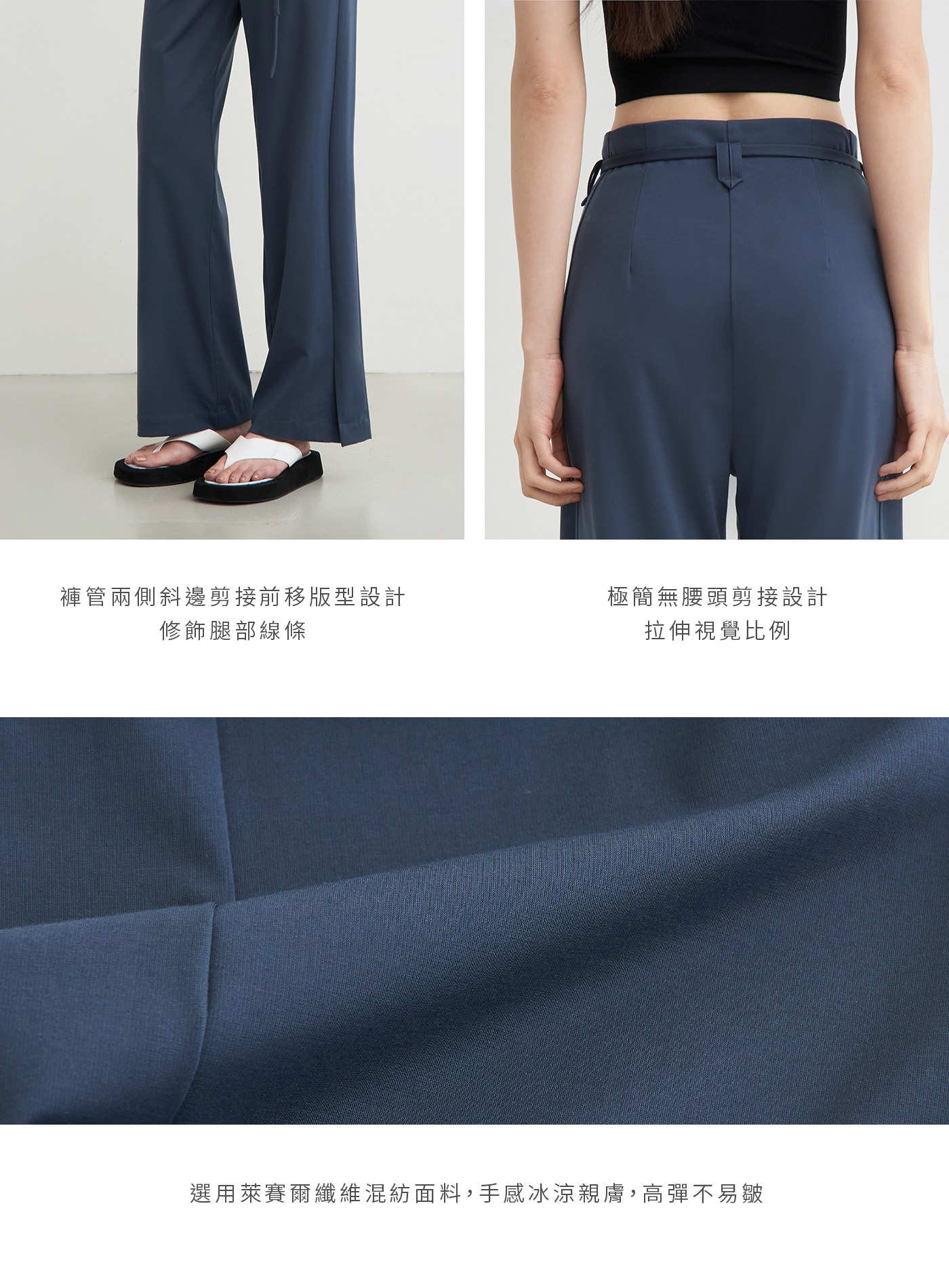 - 極簡無腰頭剪接設計,拉伸視覺比例