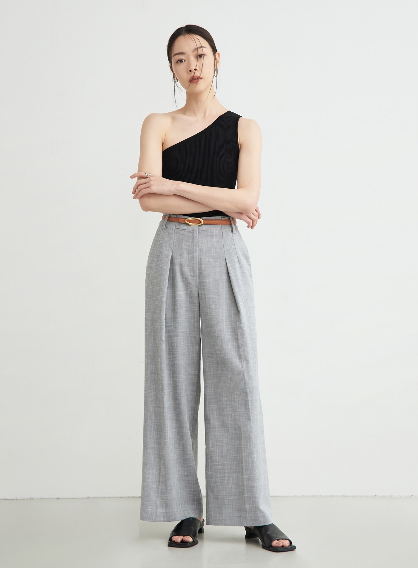 - 前身運用打摺設計,增加腰臀圍的鬆量,讓褲型更加挺廓有型