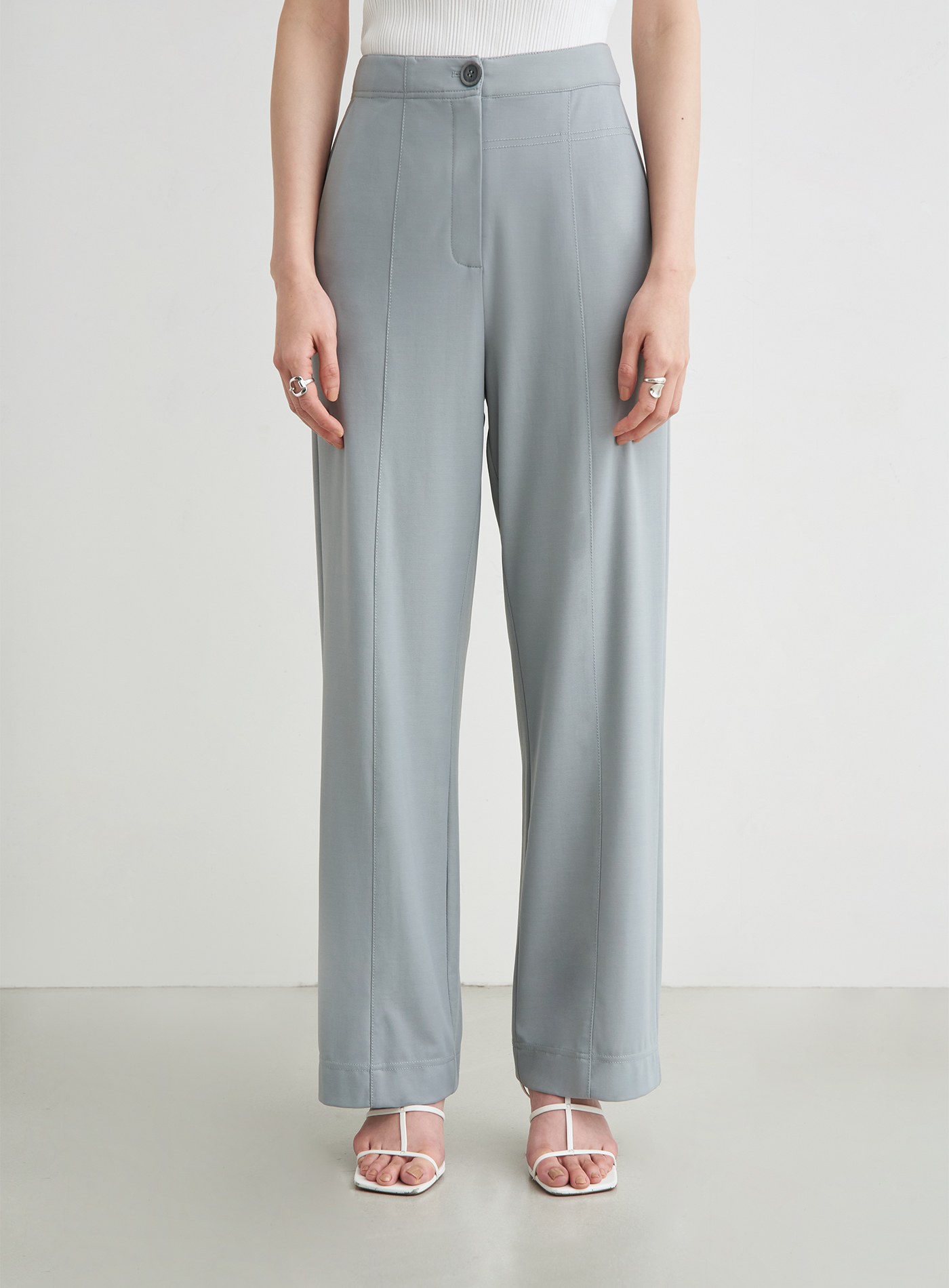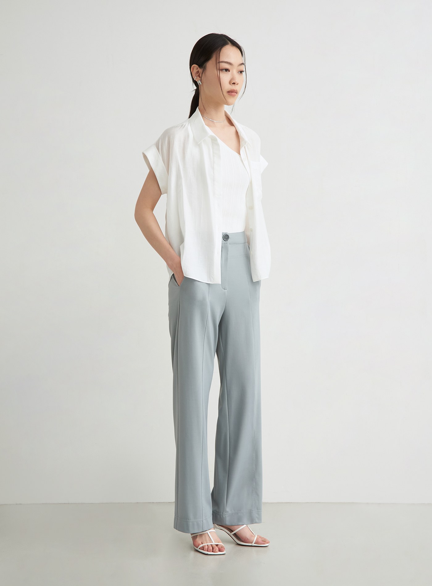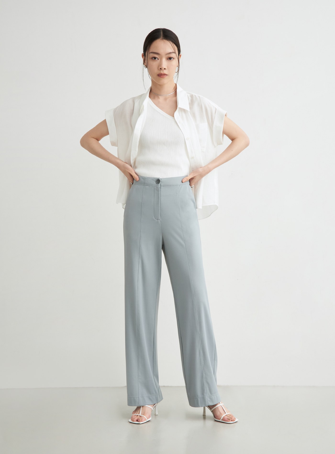 - 中腰直身寬褲版型,前身直向壓線細節,休閒又不失嚴謹,輕鬆營造挺廓感