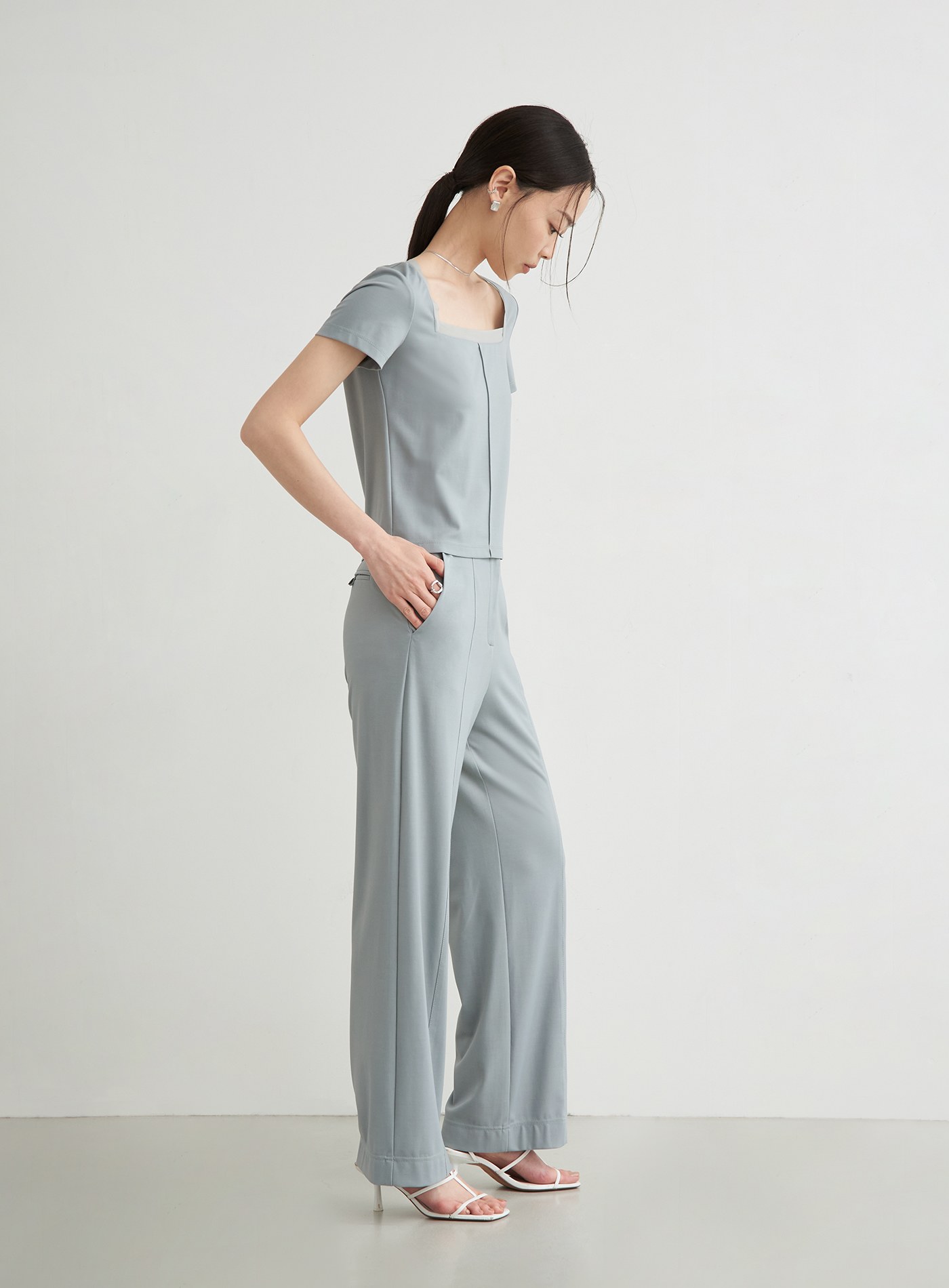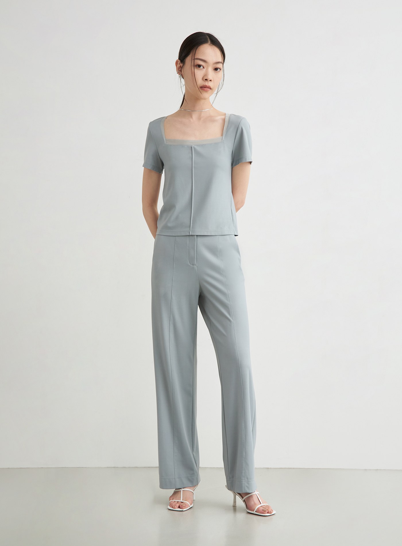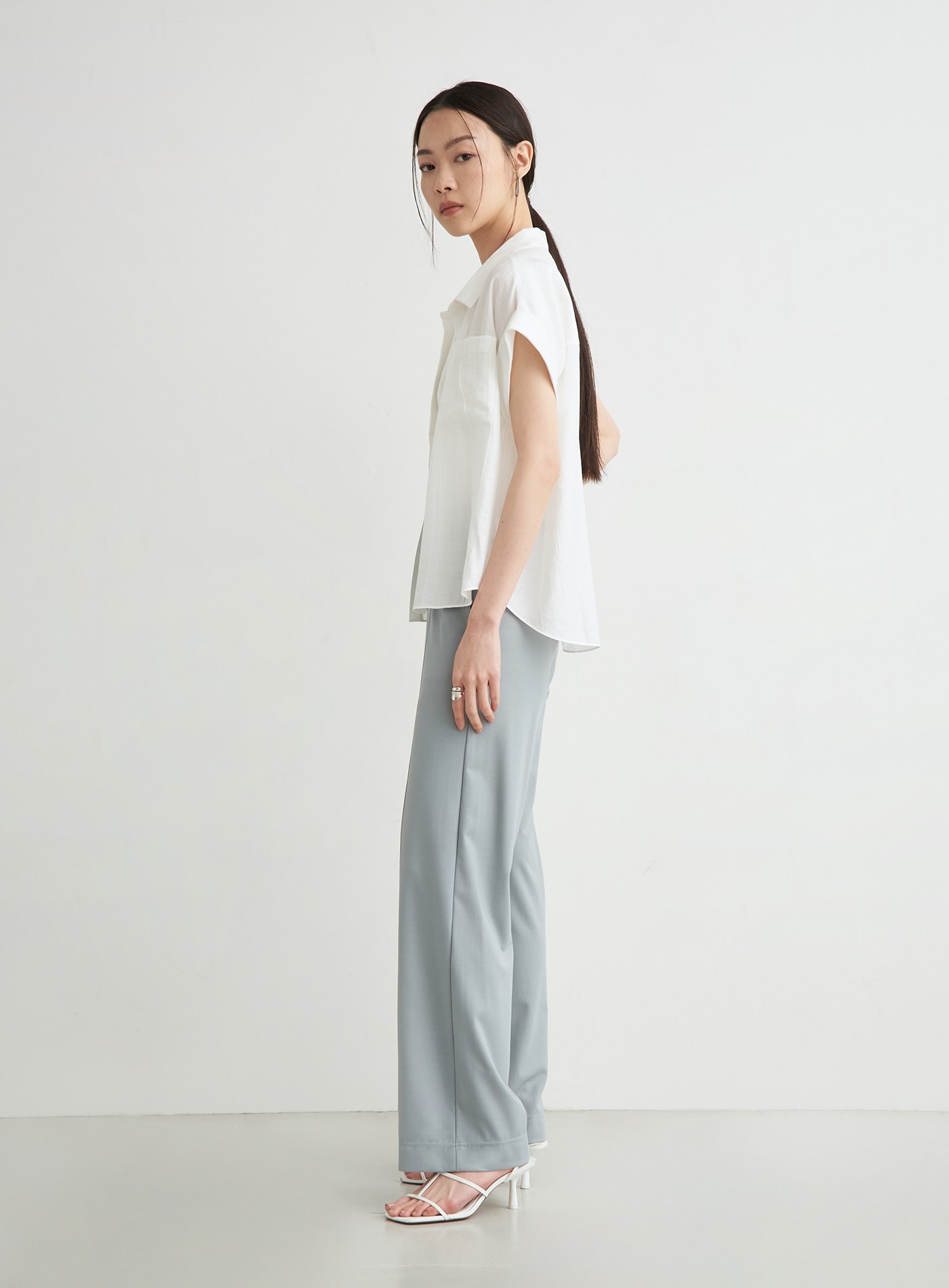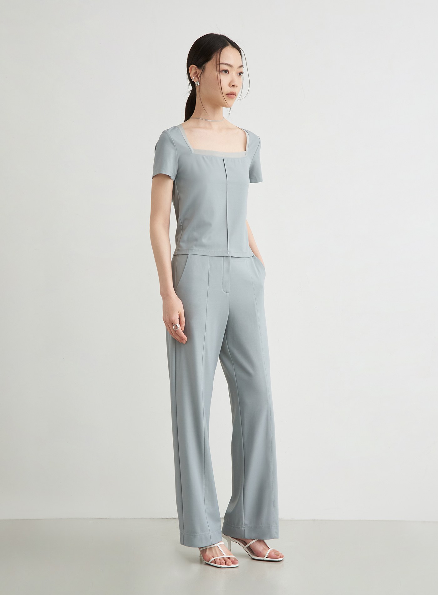 - 中腰直身寬褲版型,前身直向壓線細節,休閒又不失嚴謹,輕鬆營造挺廓感