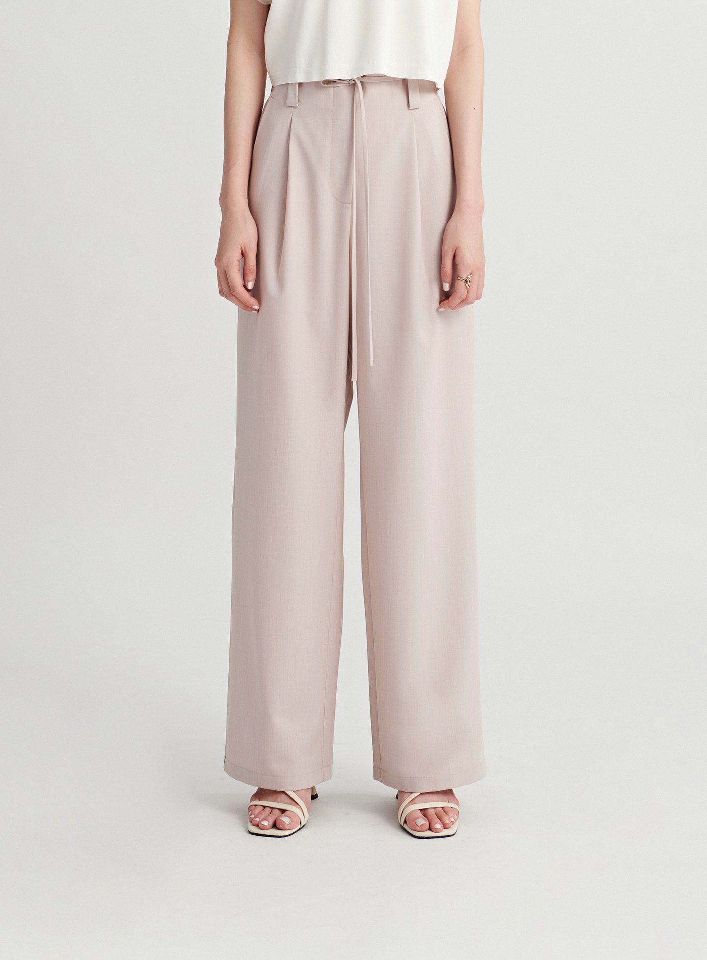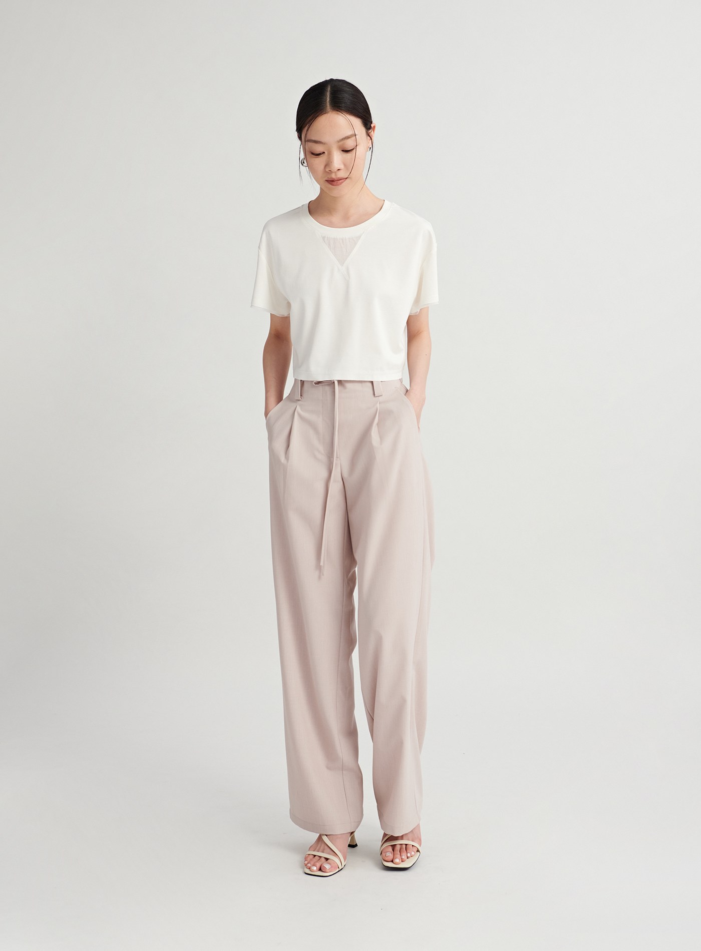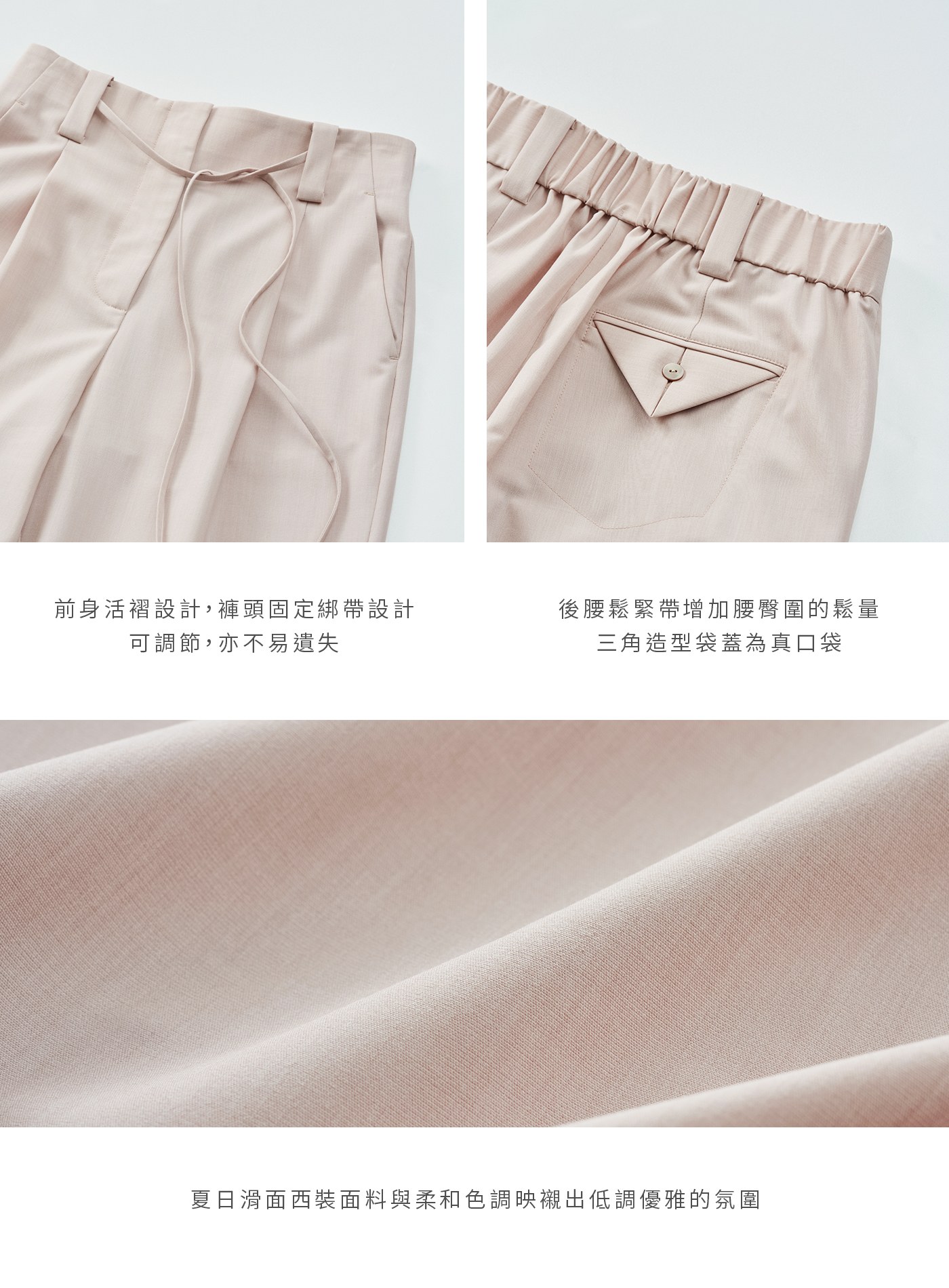 - 輕盈滑面面料與柔和色調映襯出低調優雅的氛圍