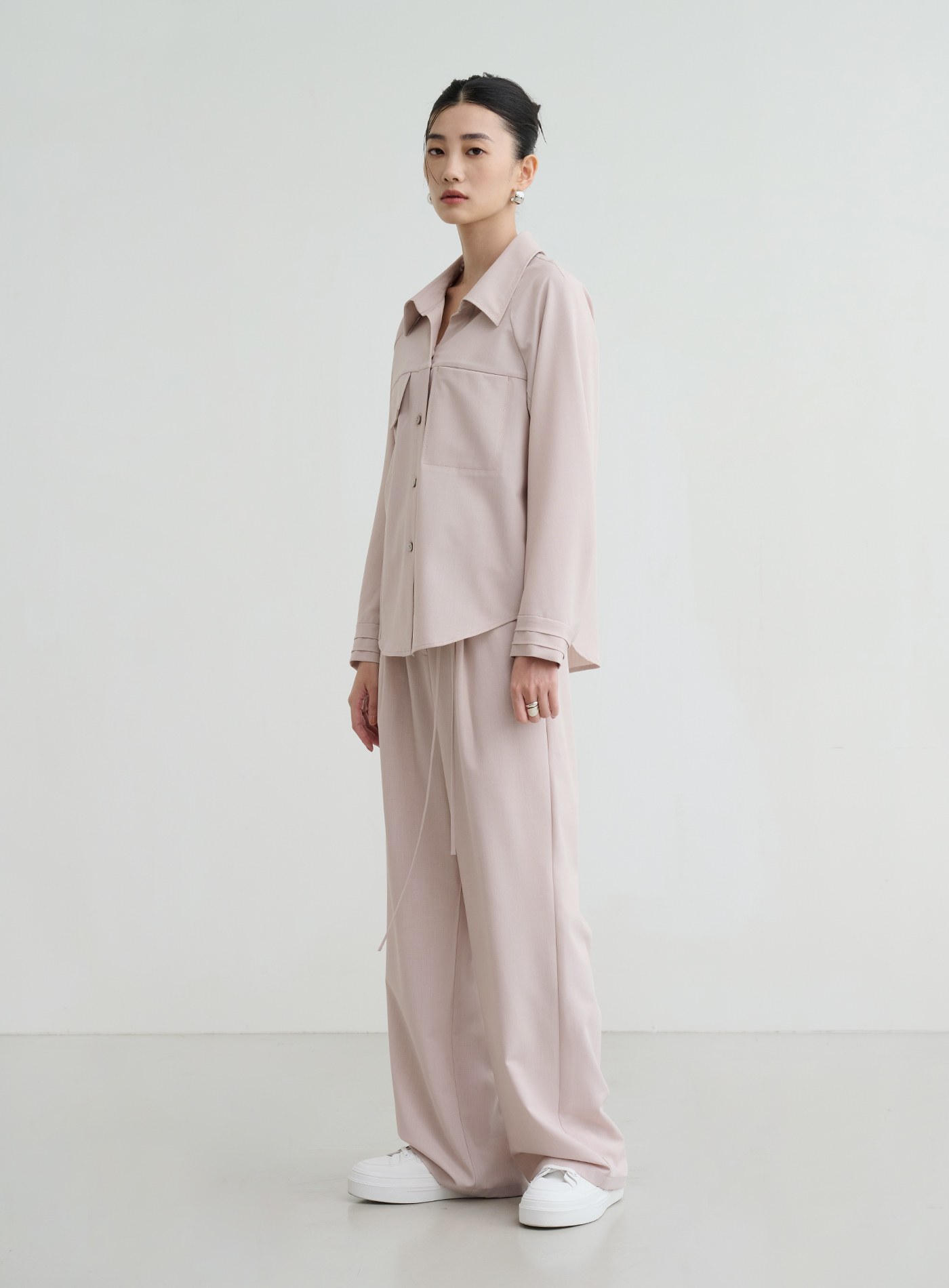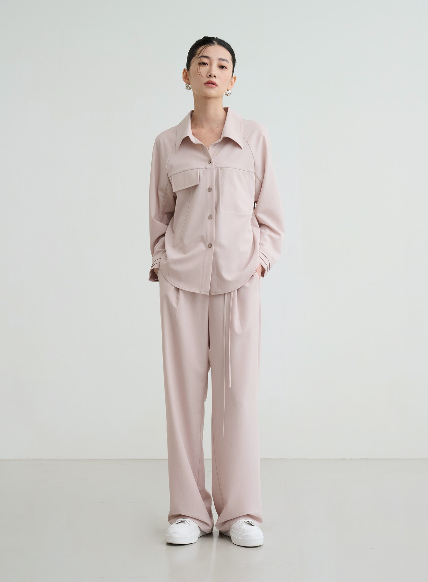 - 此款可與 '清新淡雅不對稱口袋長袖襯衫' 搭配成一套