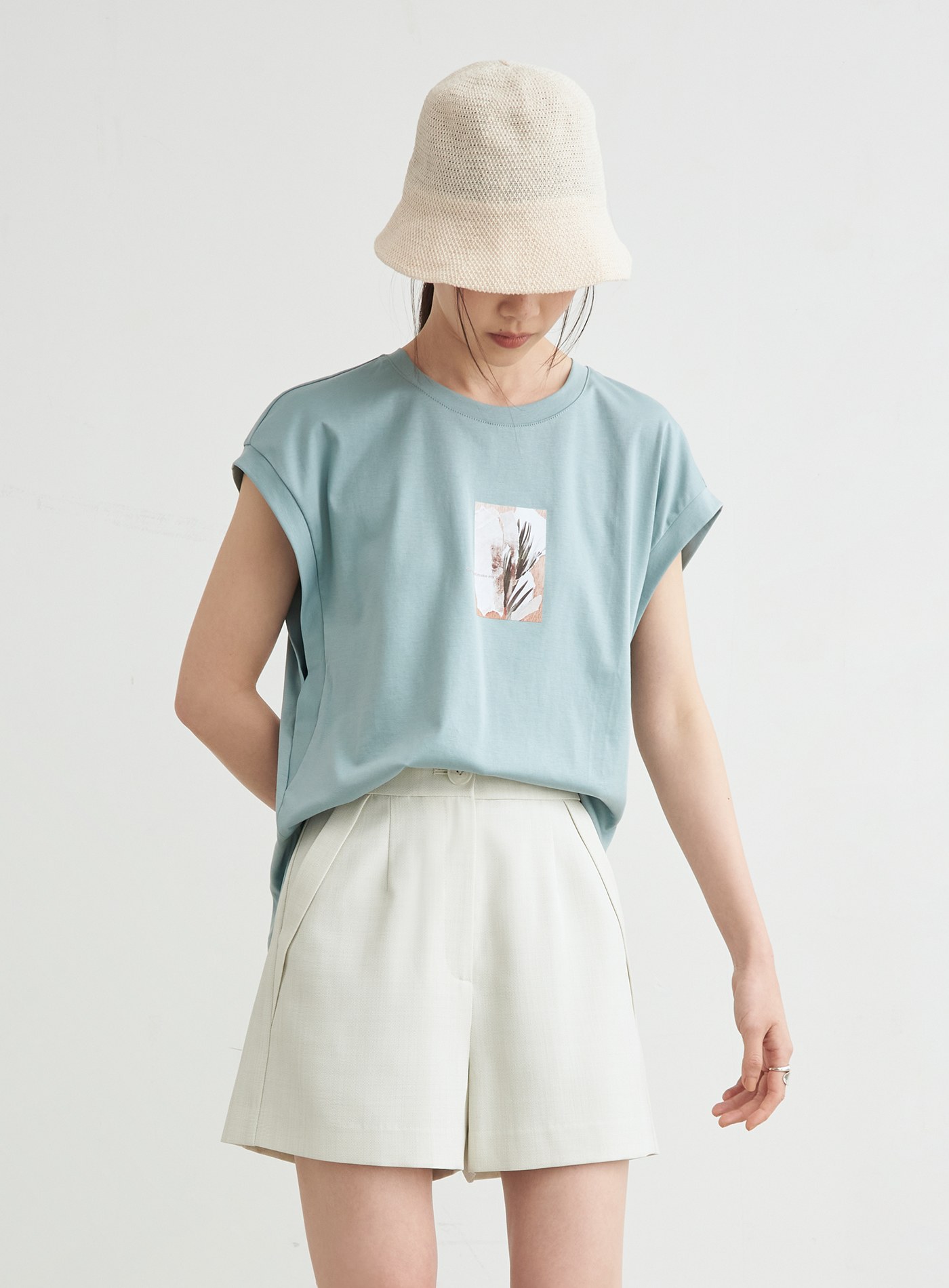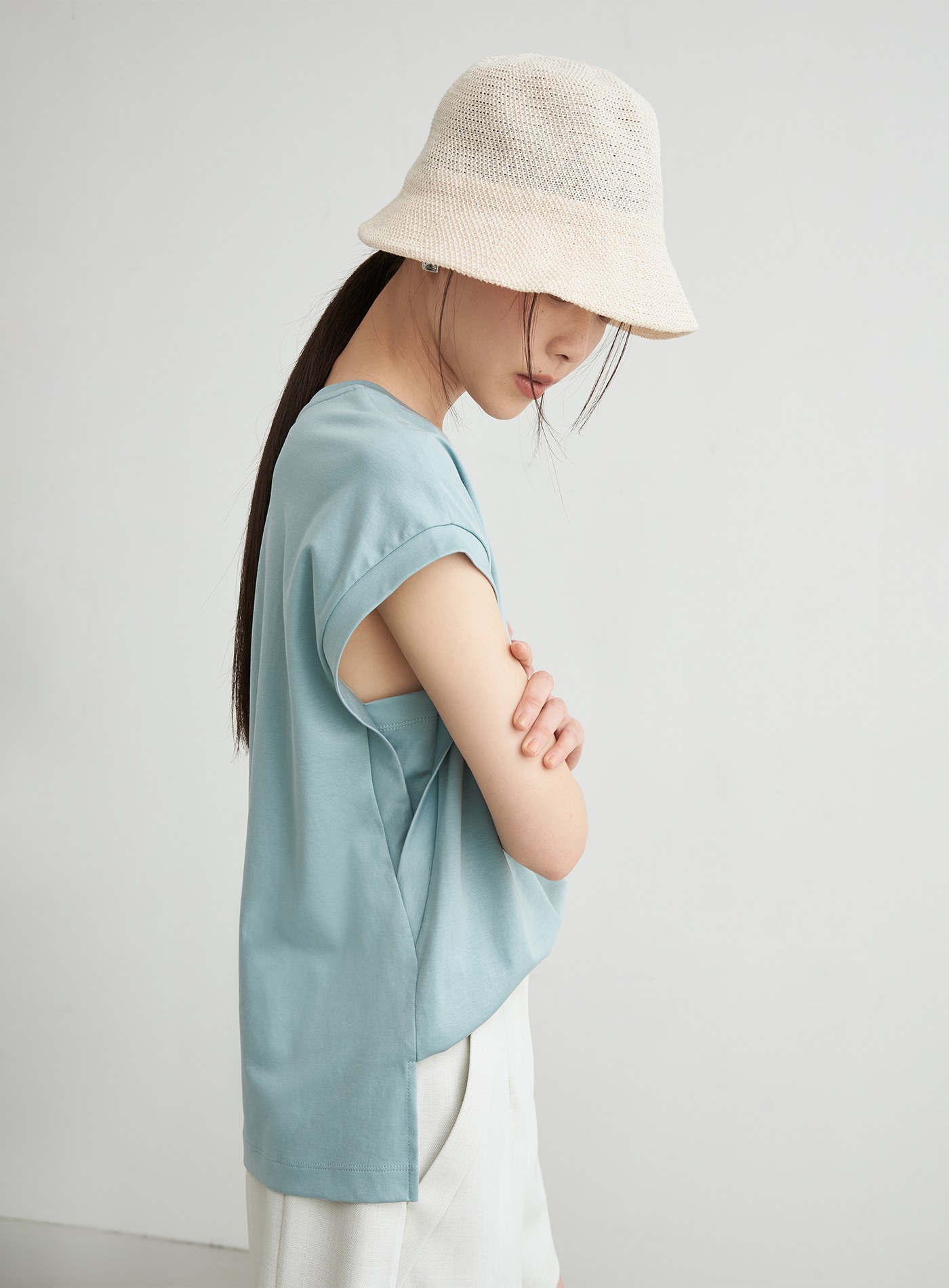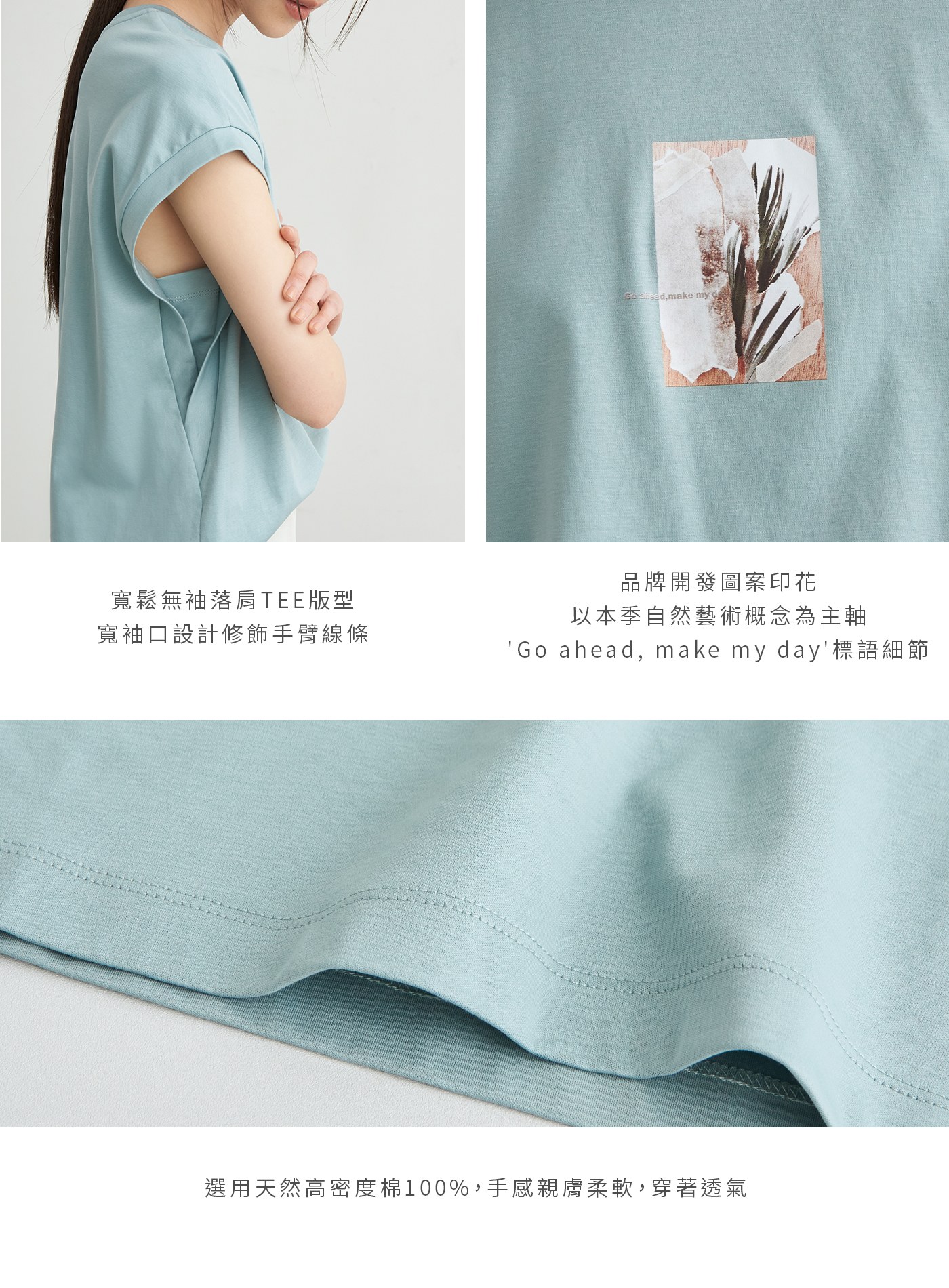 - 寬鬆無袖落肩TEE版型,寬袖口設計修飾手臂線條