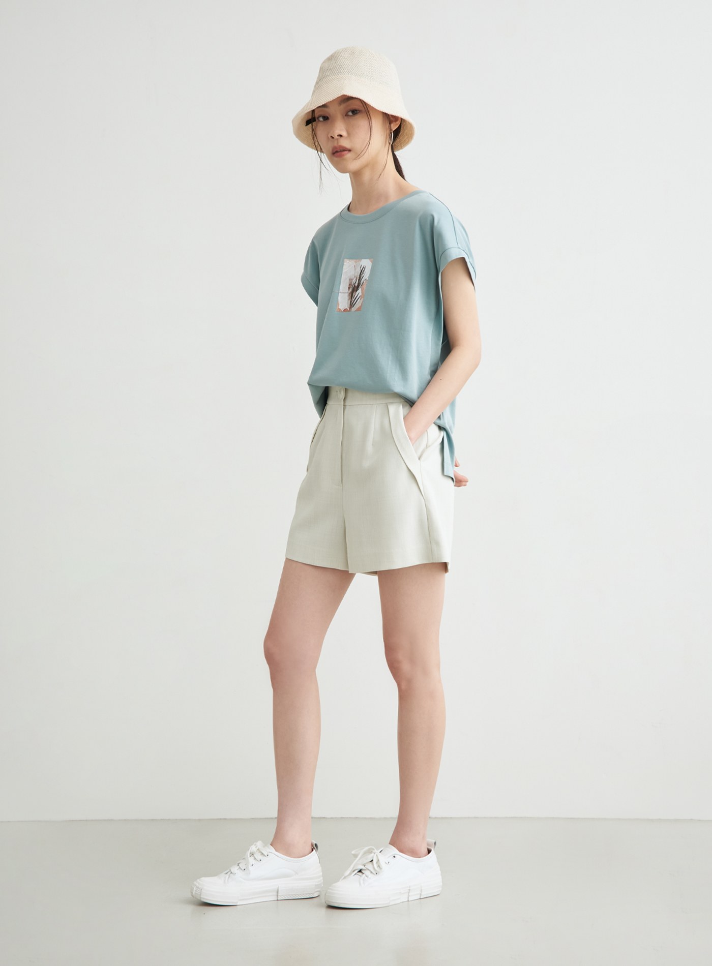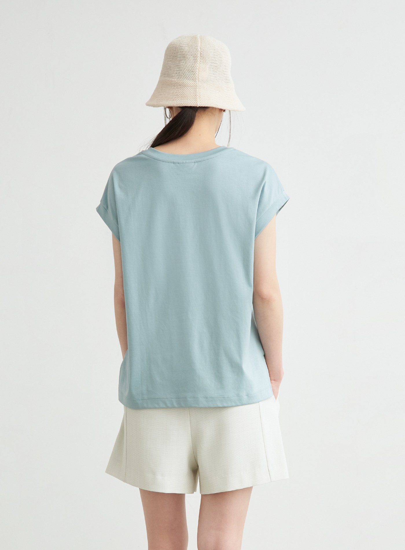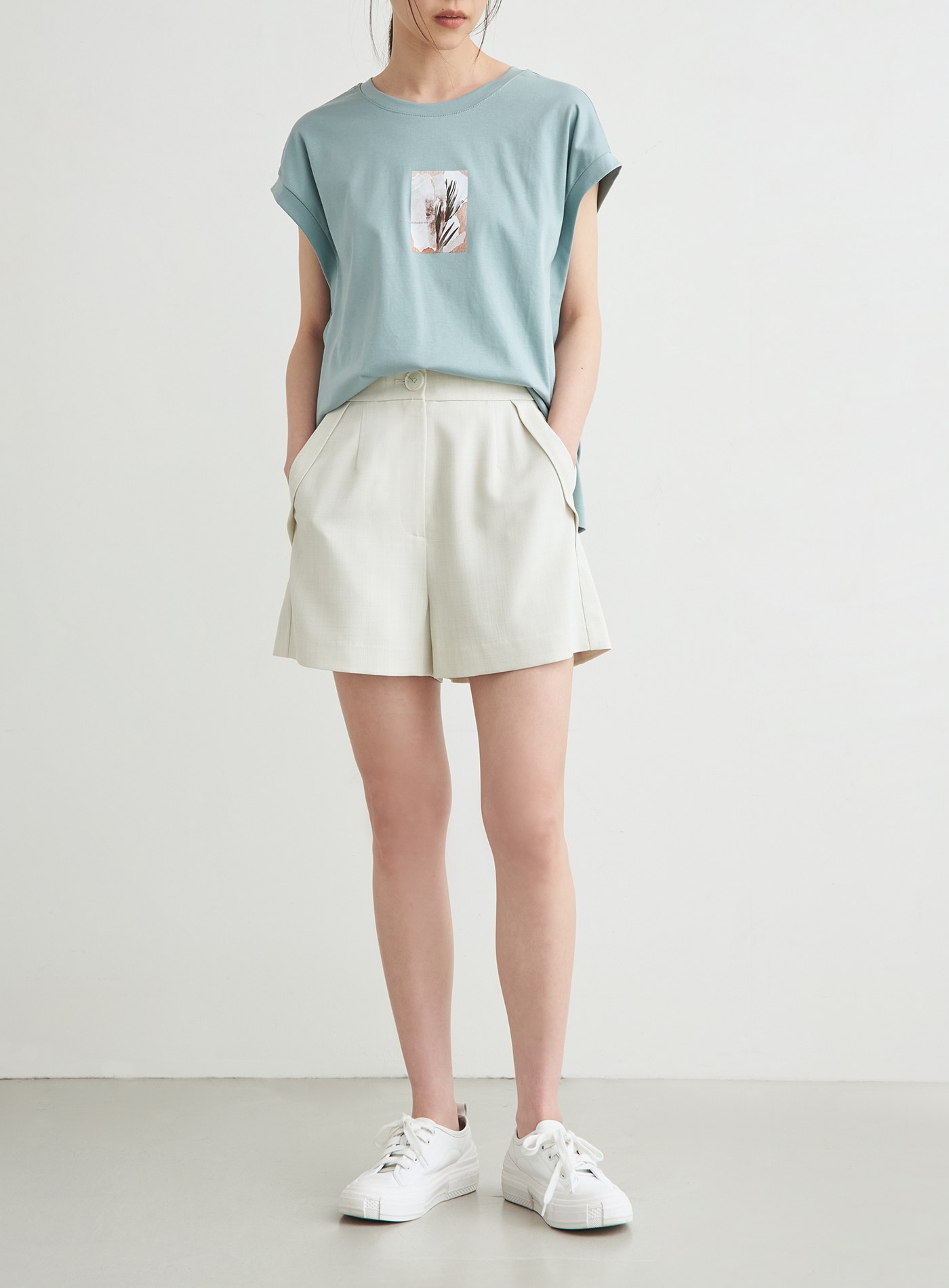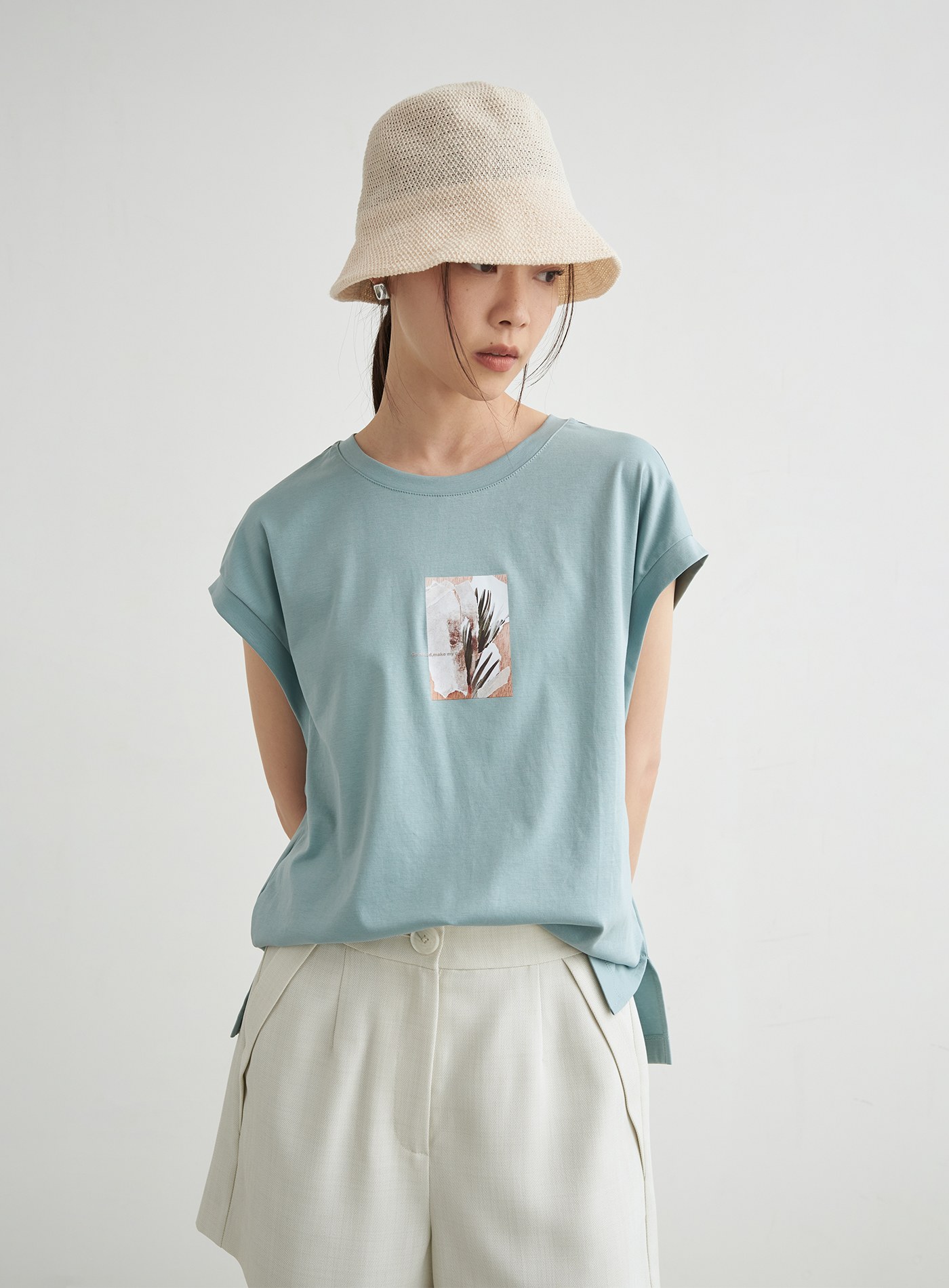 - 寬鬆無袖落肩TEE版型,寬袖口設計修飾手臂線條