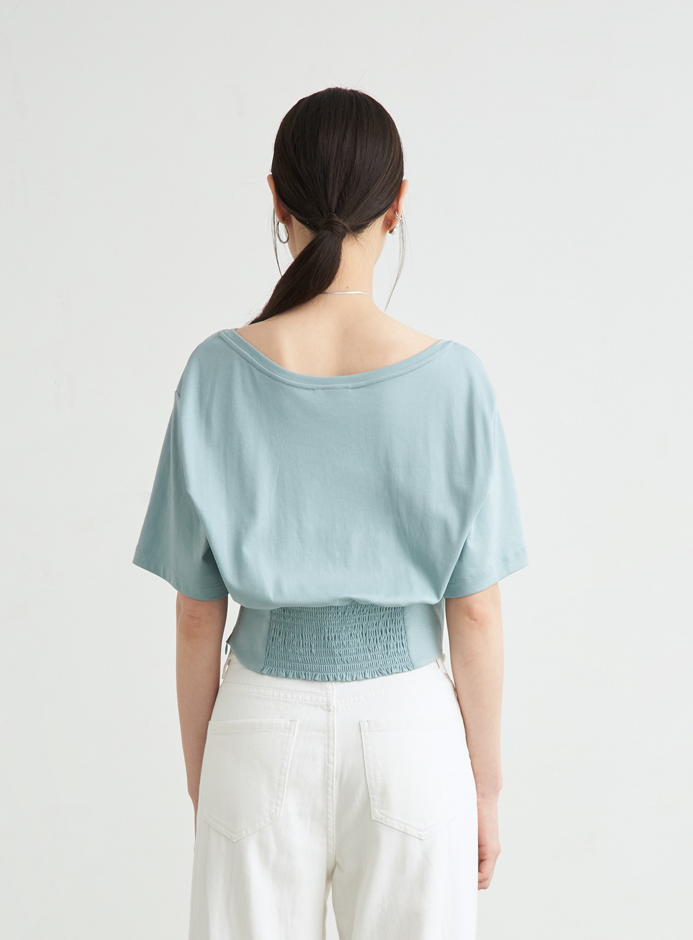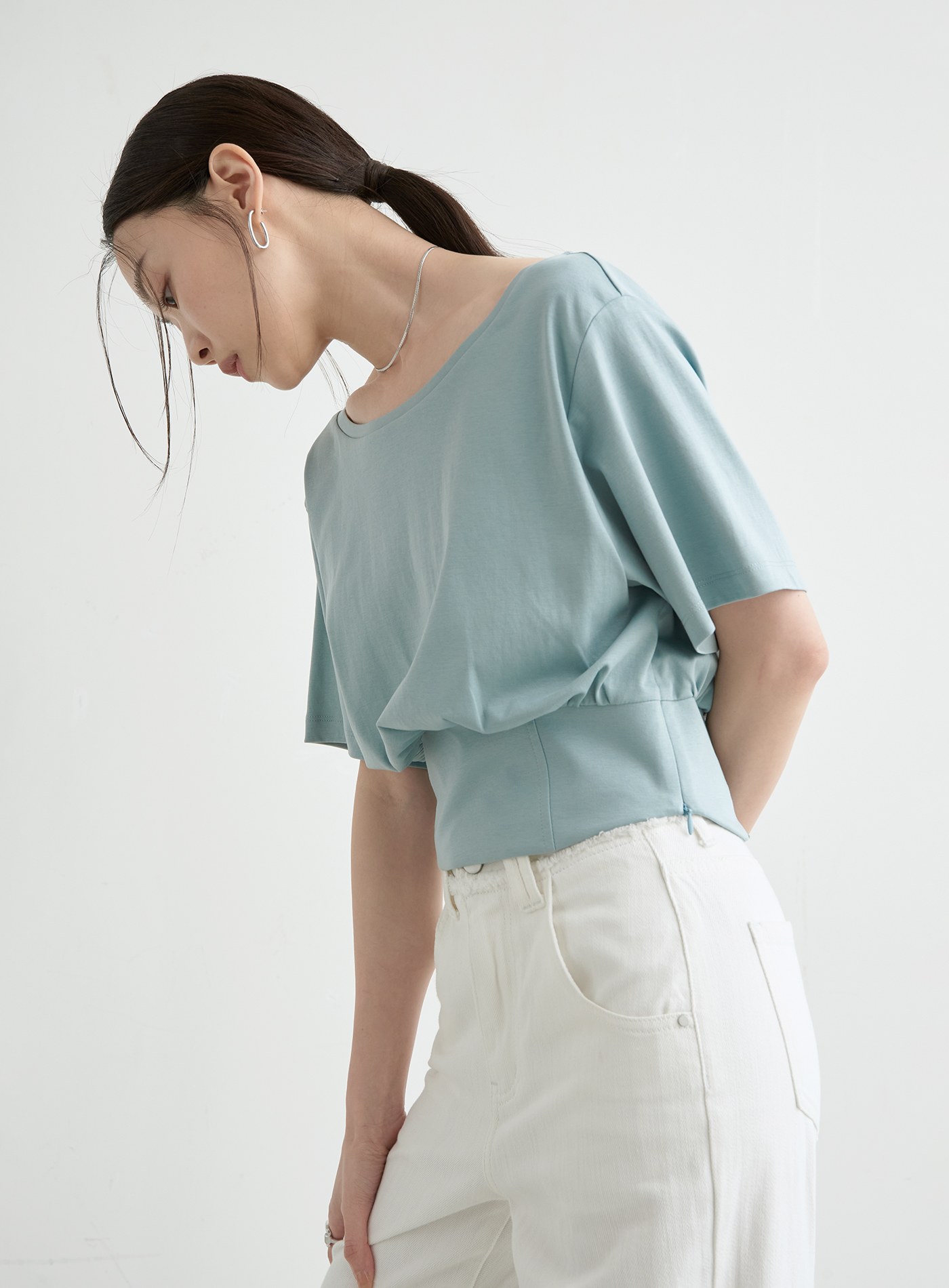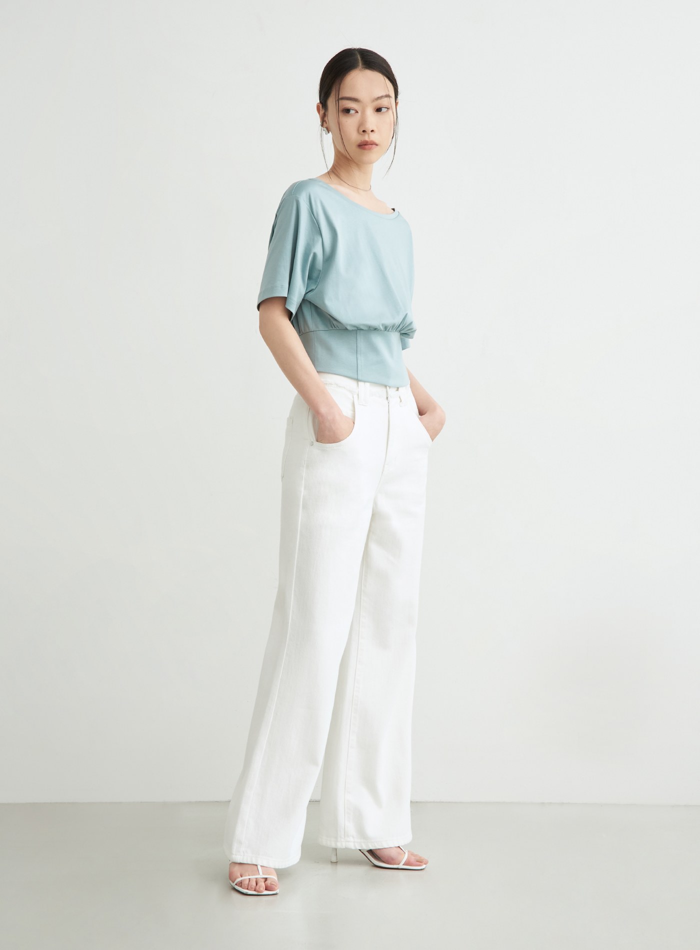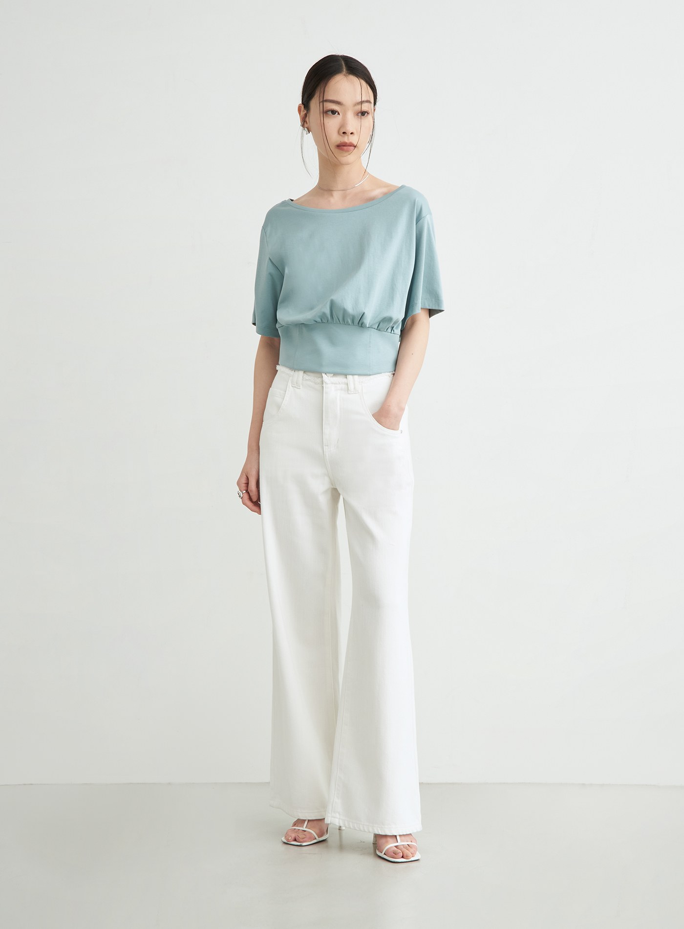 - 寬鬆落肩TEE版型,領口以船型一字領,勾勒鎖骨線條