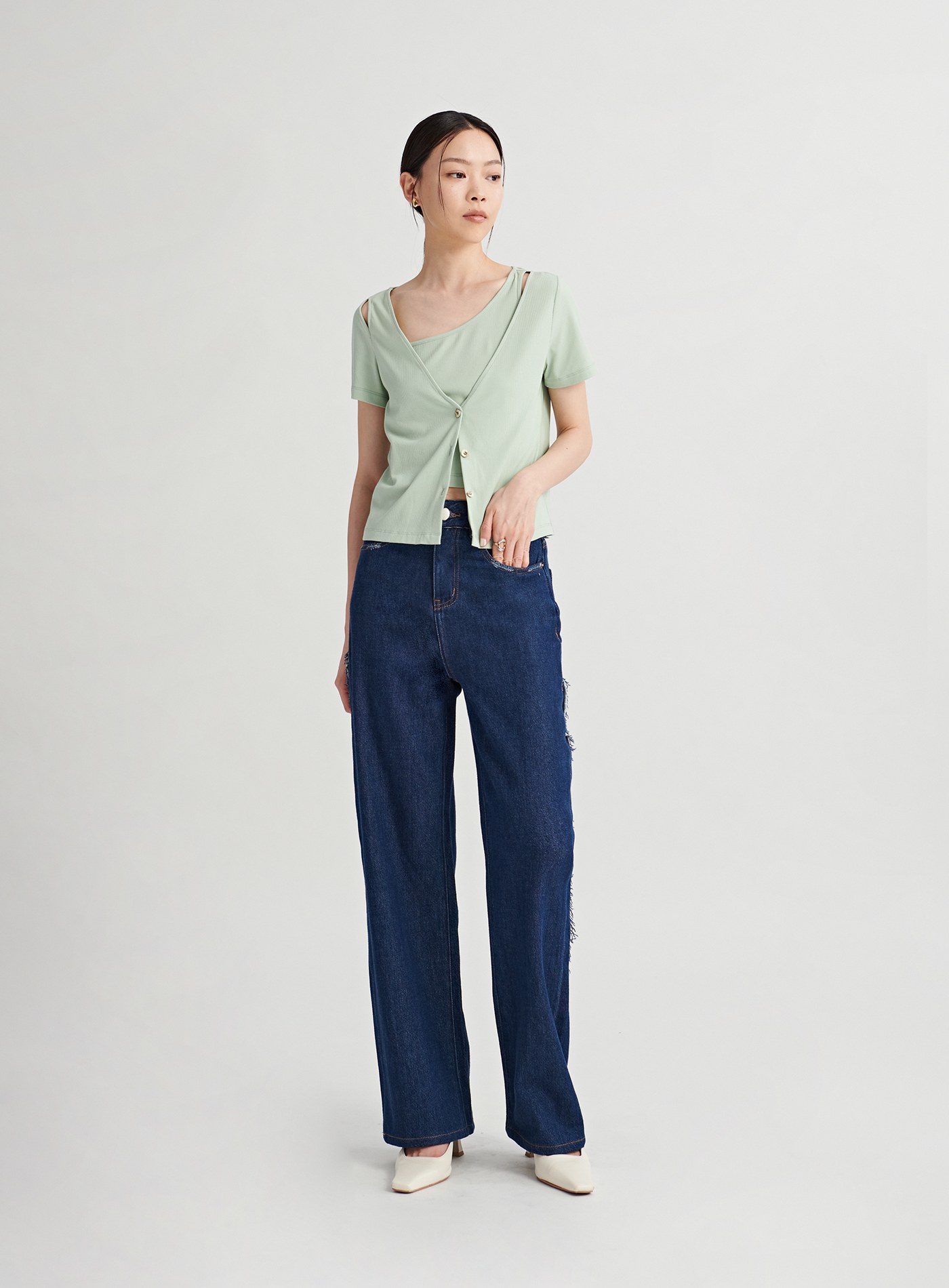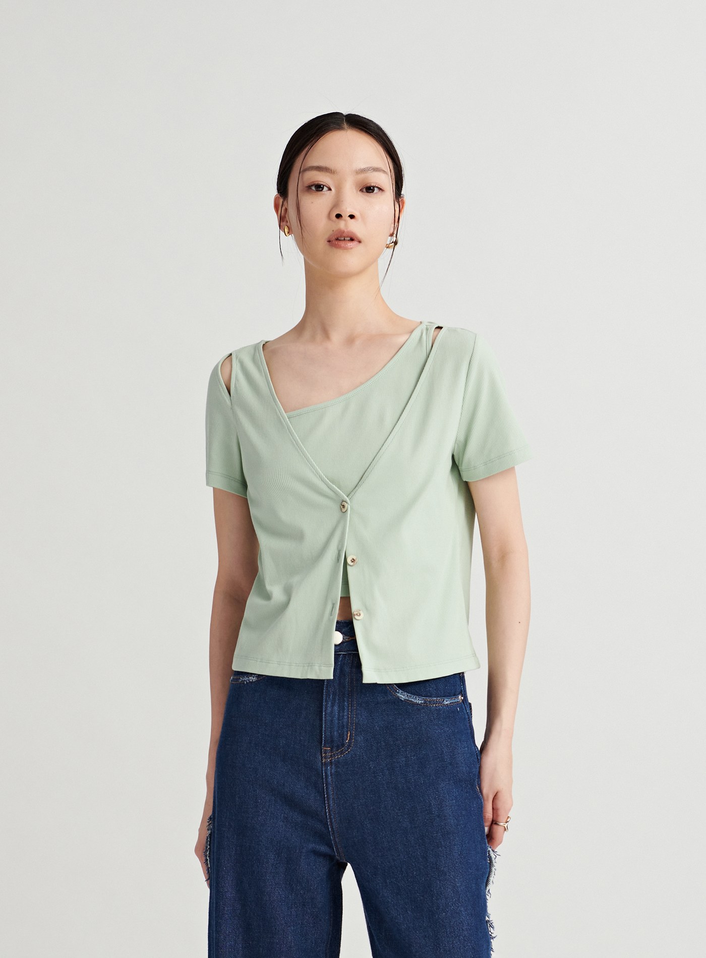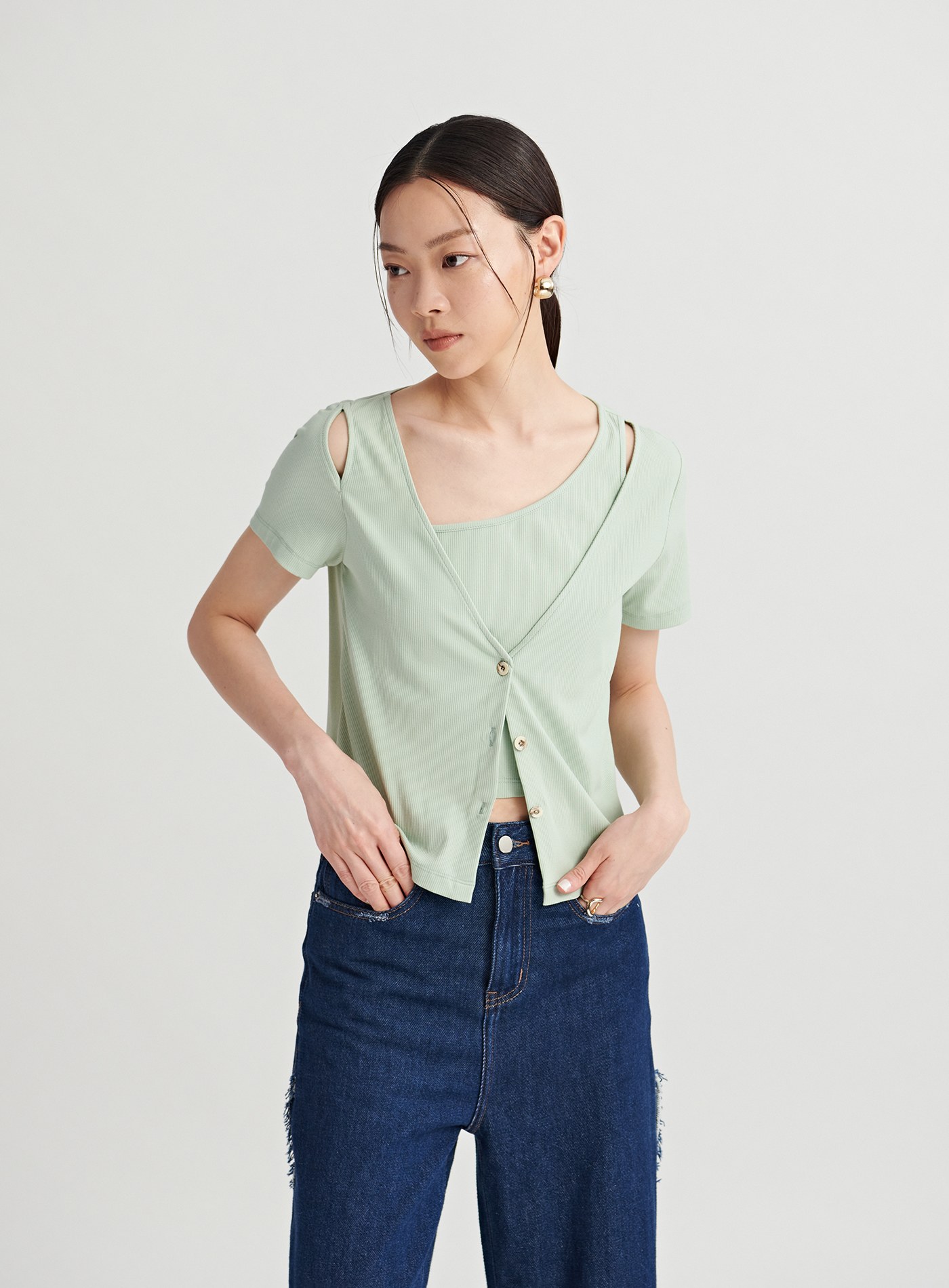 - 假兩件前開襟外套設計,可扣上也可打開,夏天也可以穿出層次感