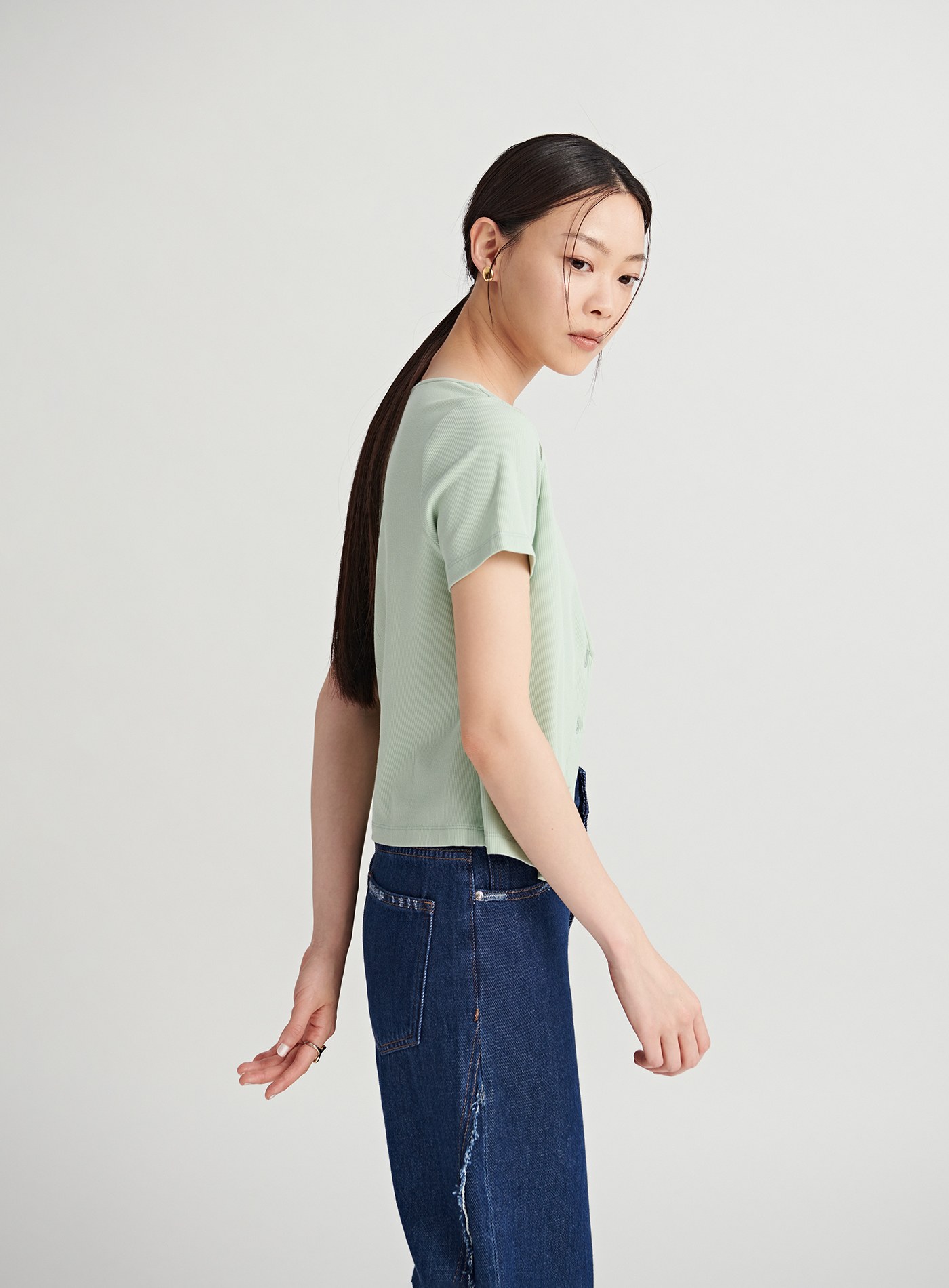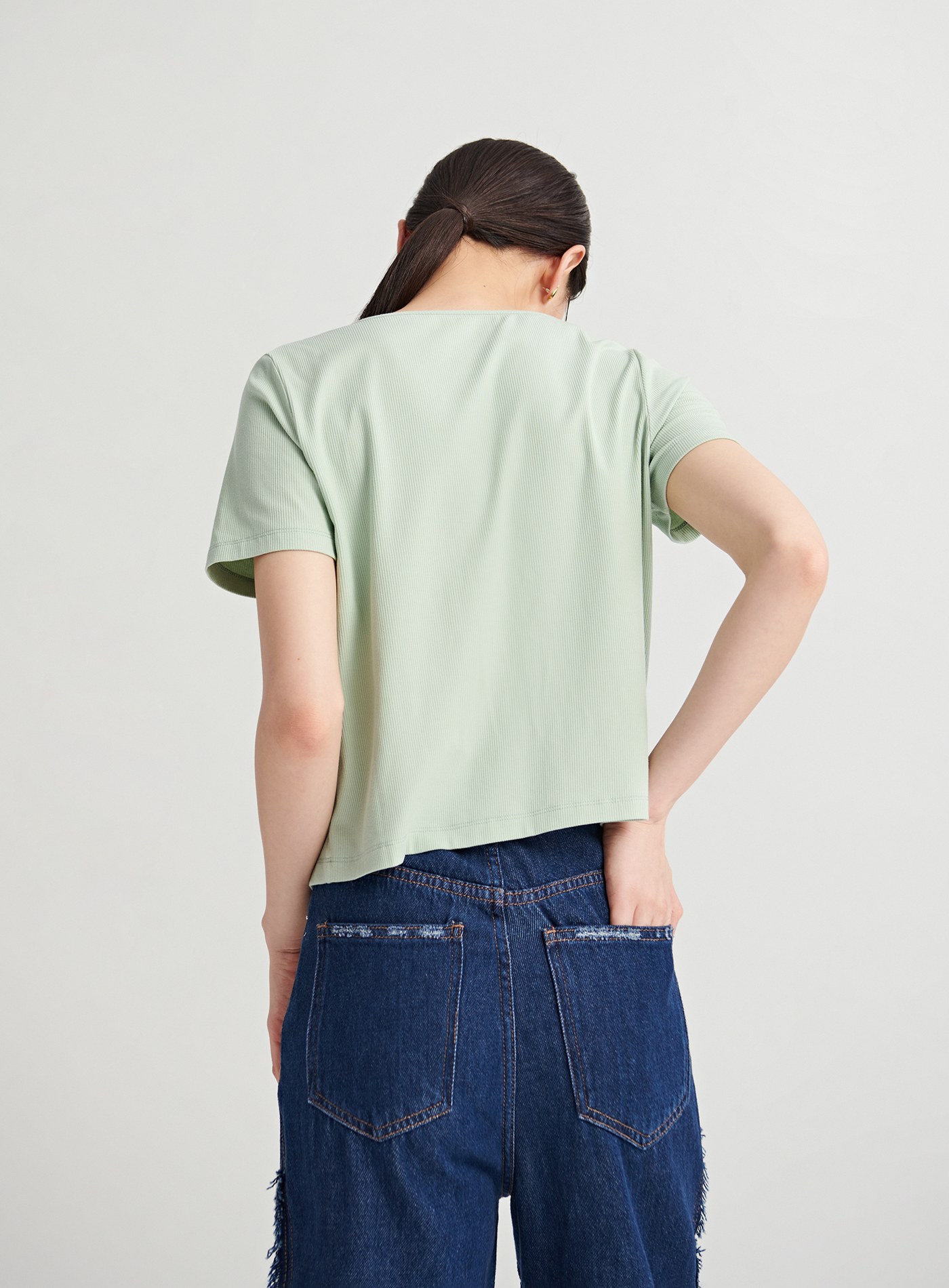 - 内裏斜切設計,肩膀鏤空小露肌膚,微寬鬆版型穿著更爲舒服