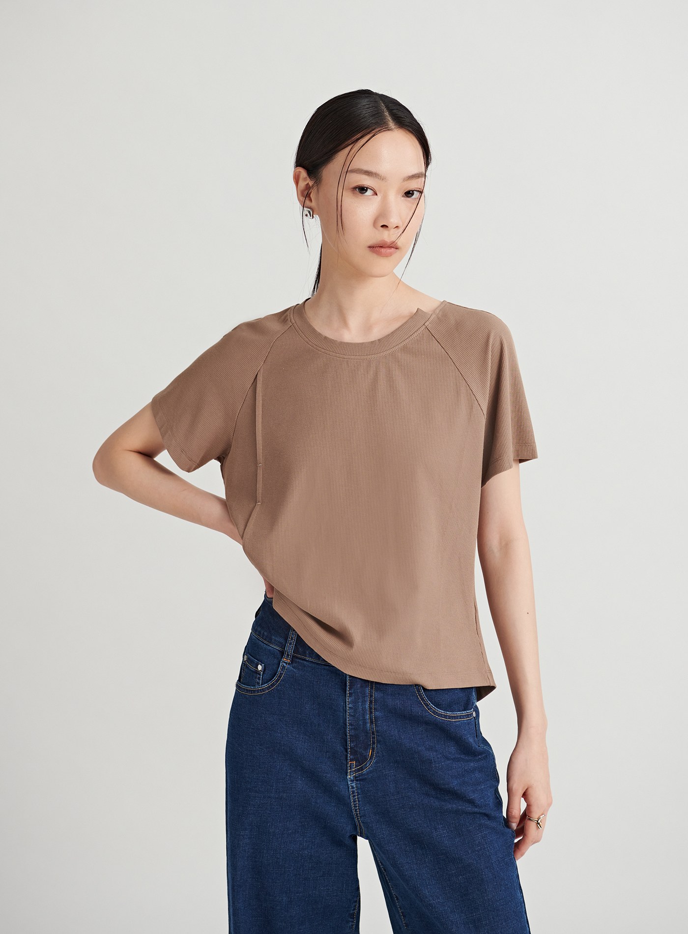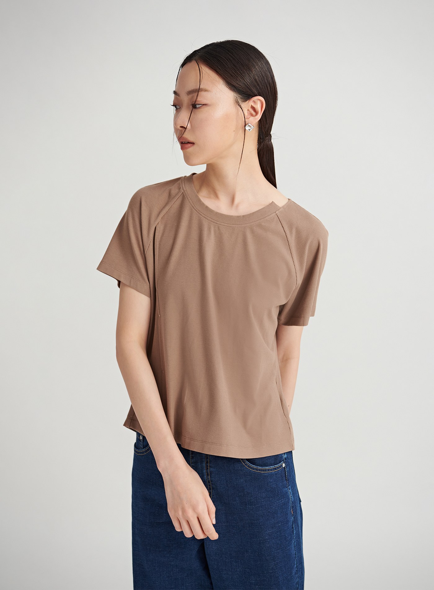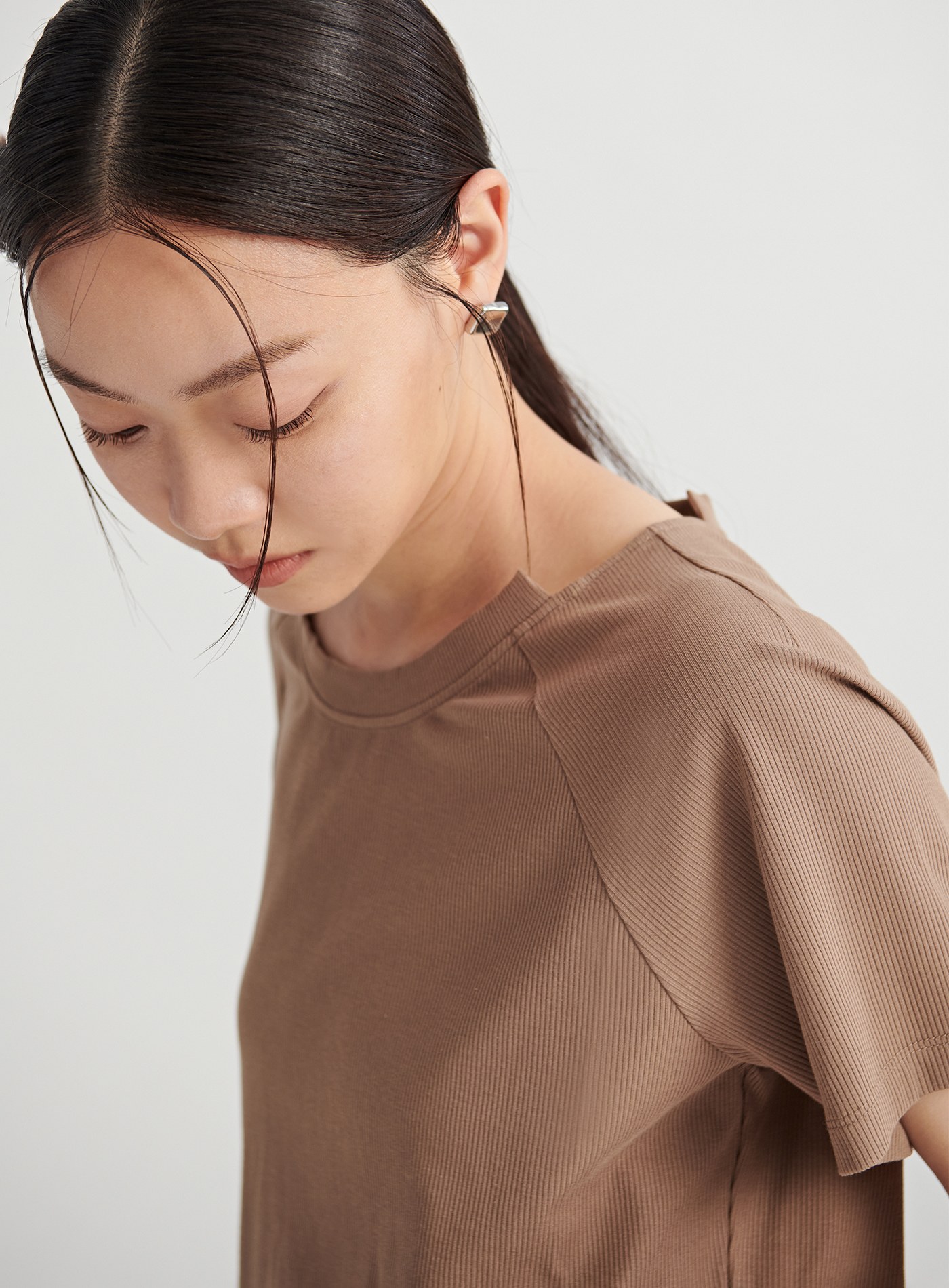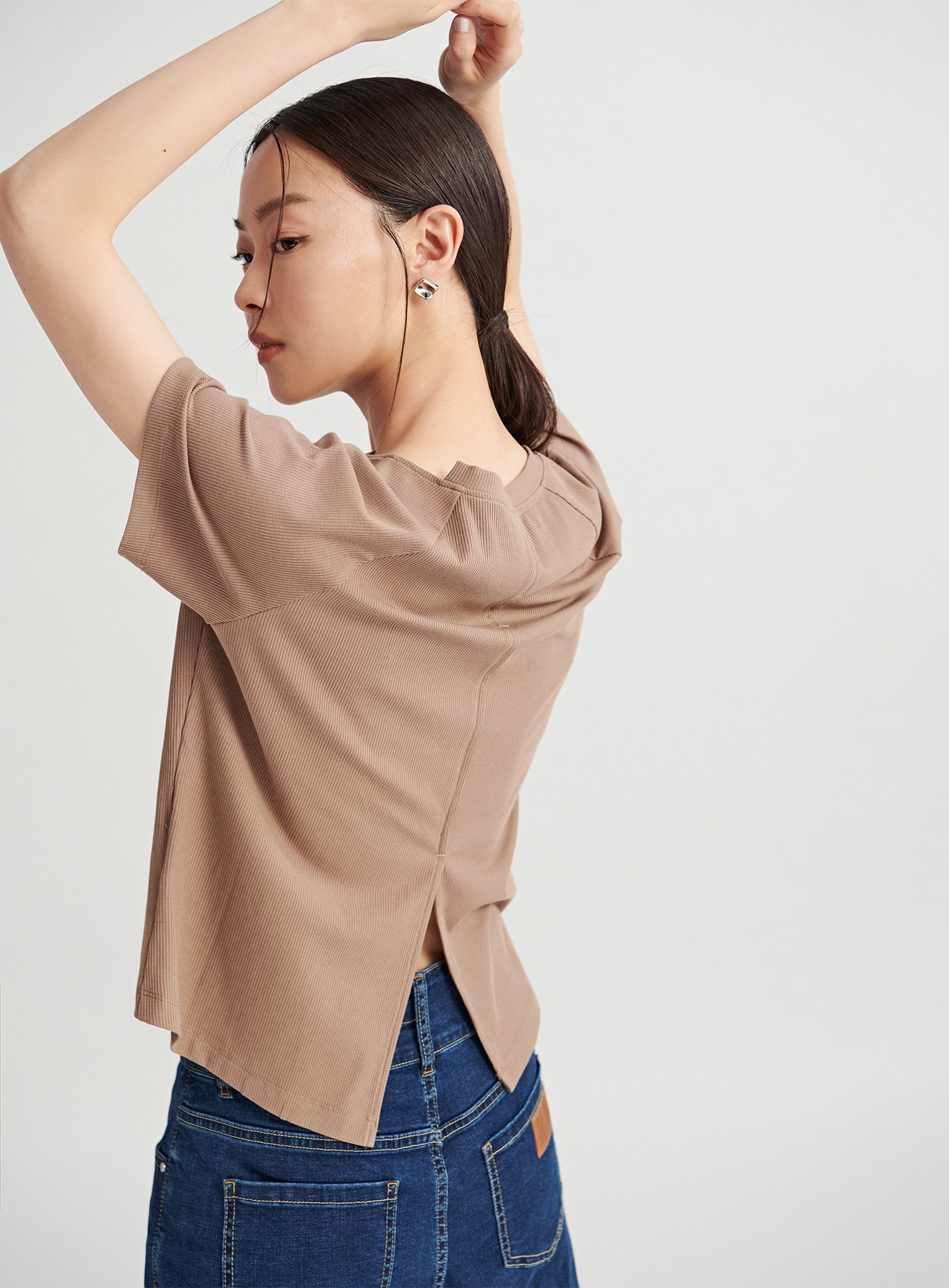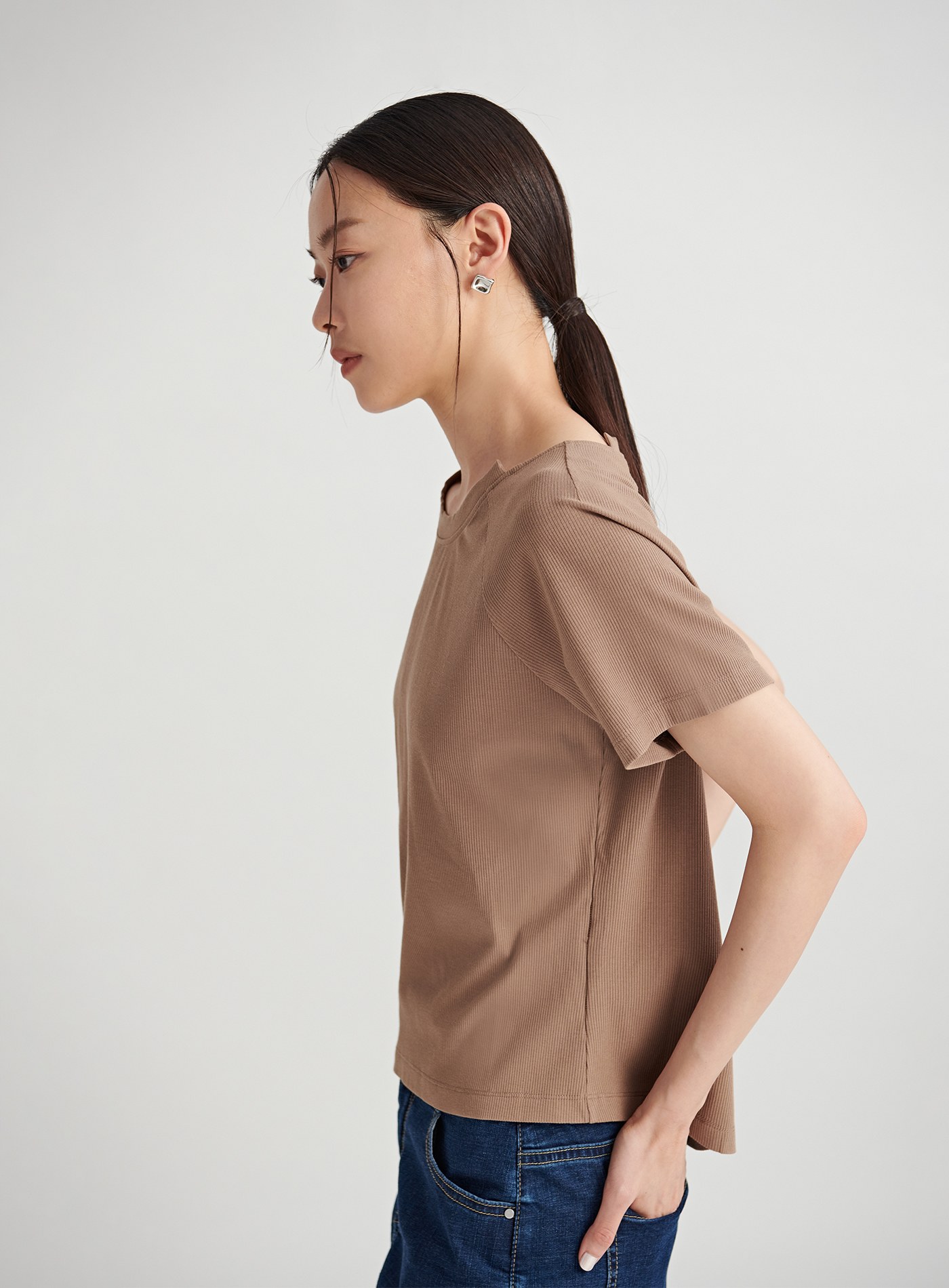 挖背剪裁圓領短版上衣$35 USD