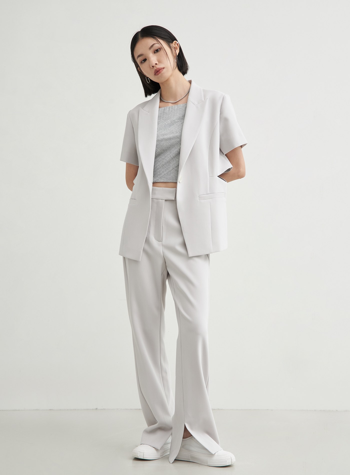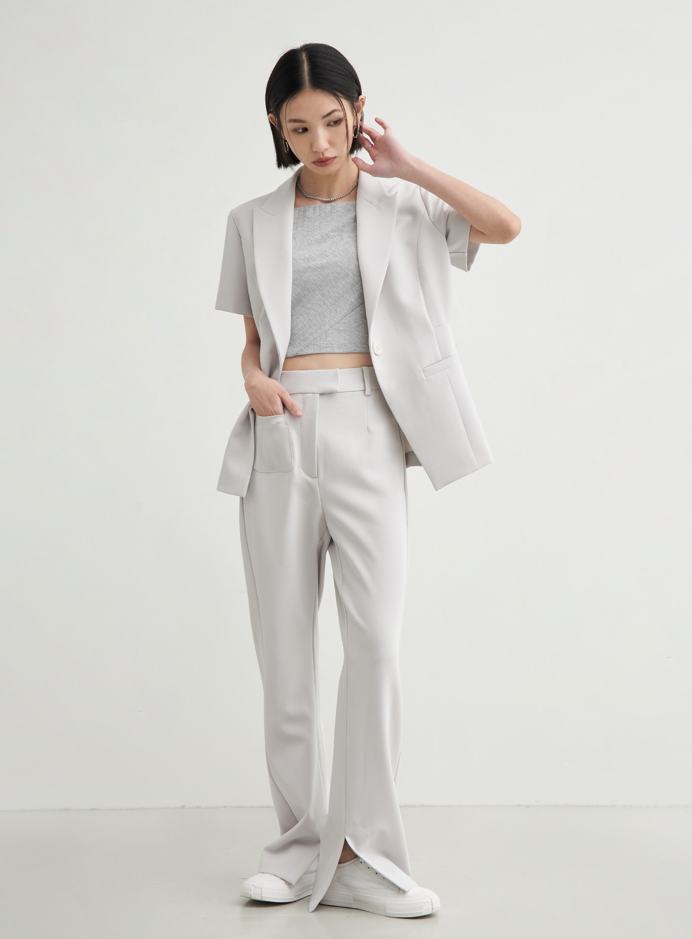 - 合身不貼身版型,衣身與領口運用條向變化剪接,增加設計層次感
