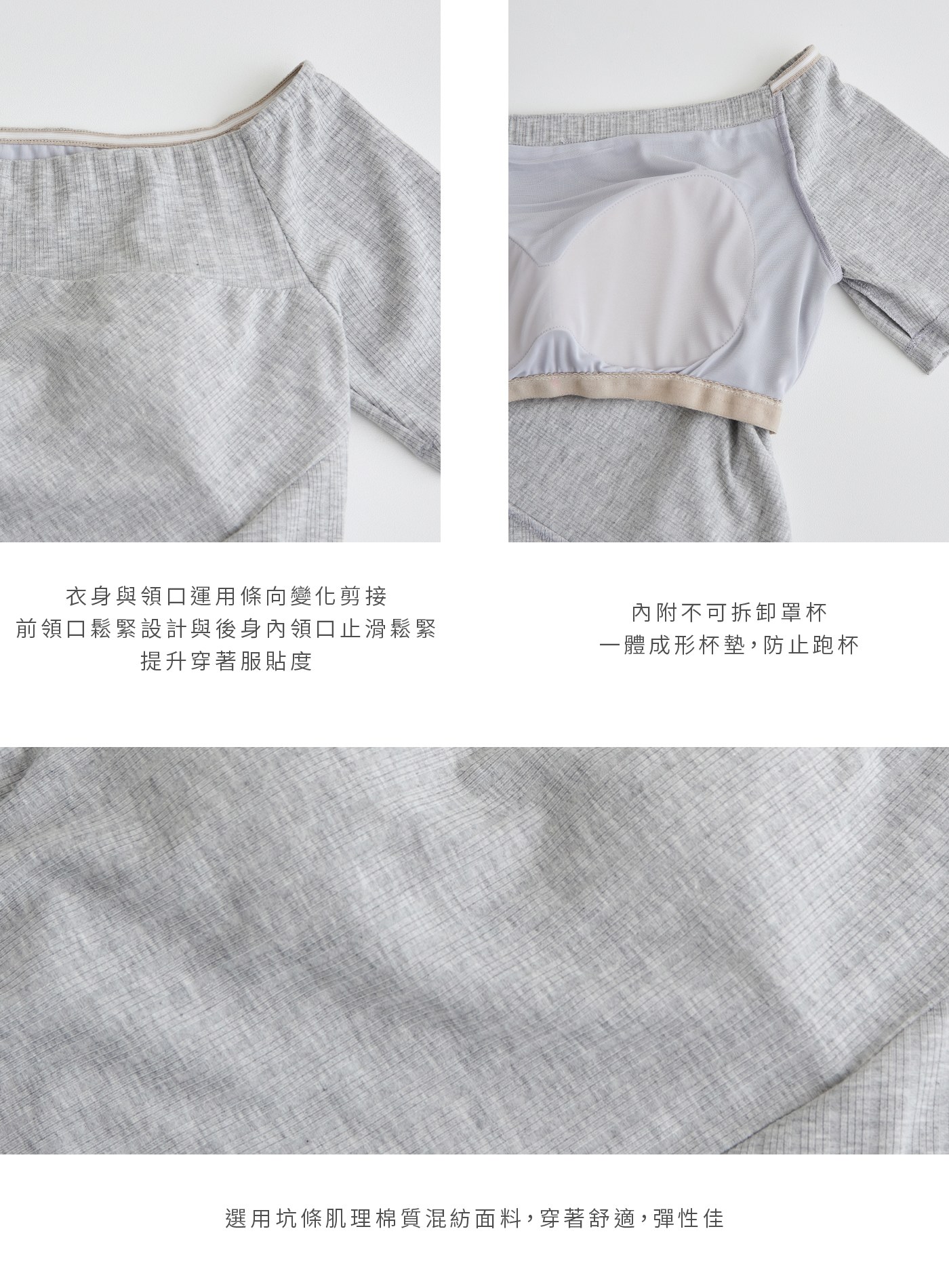 - 前領口鬆緊設計,與後身內領口止滑鬆緊,提升穿著服貼度