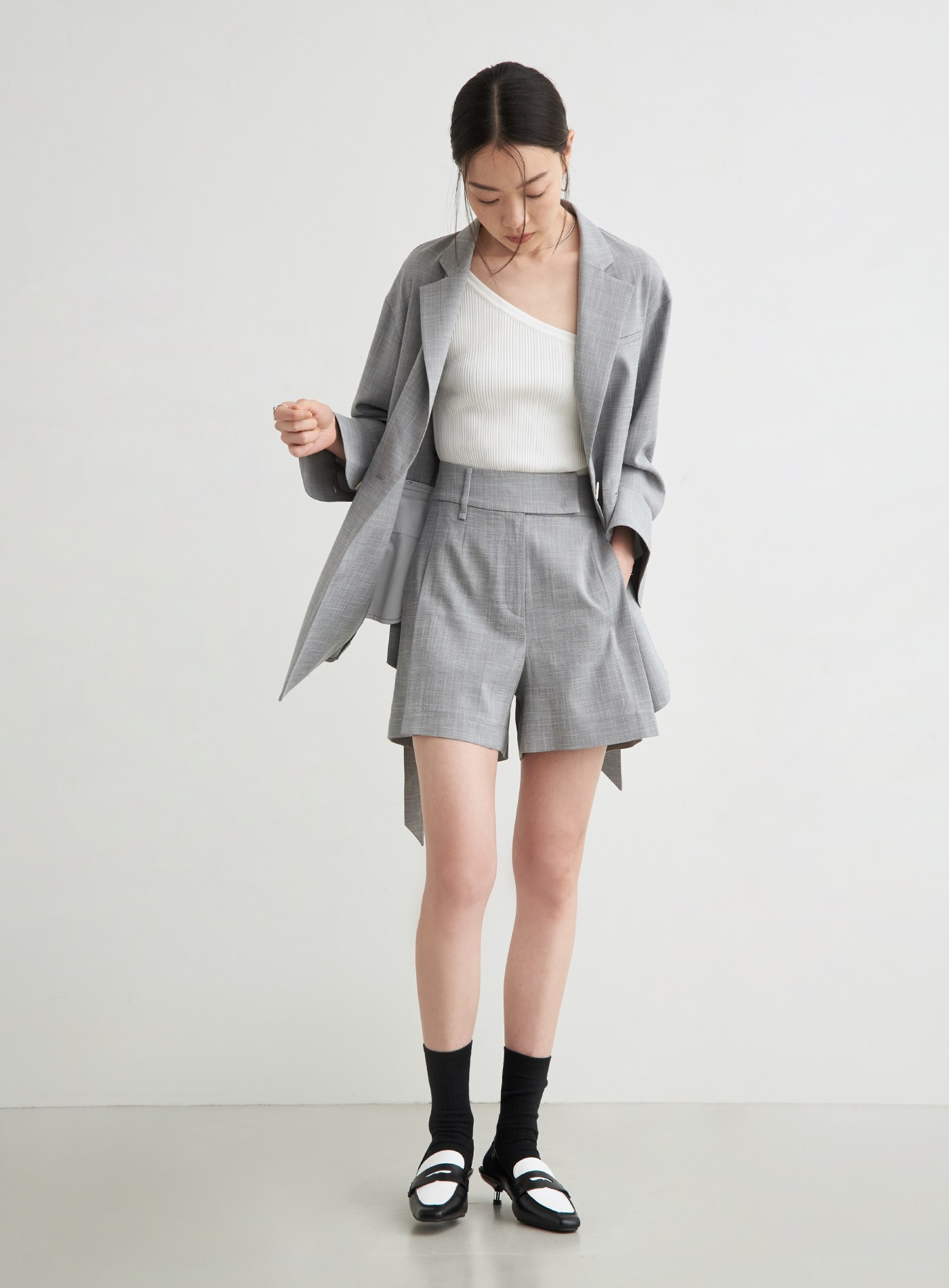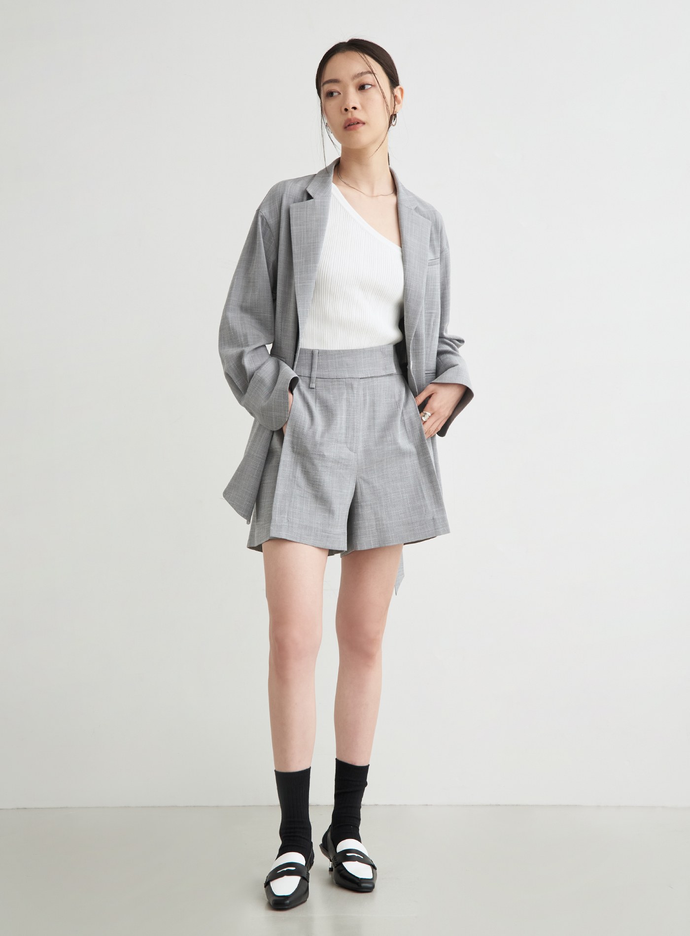 - 衣身採用不規則羅紋組織,組織密實緊密,穿著挺闊有型