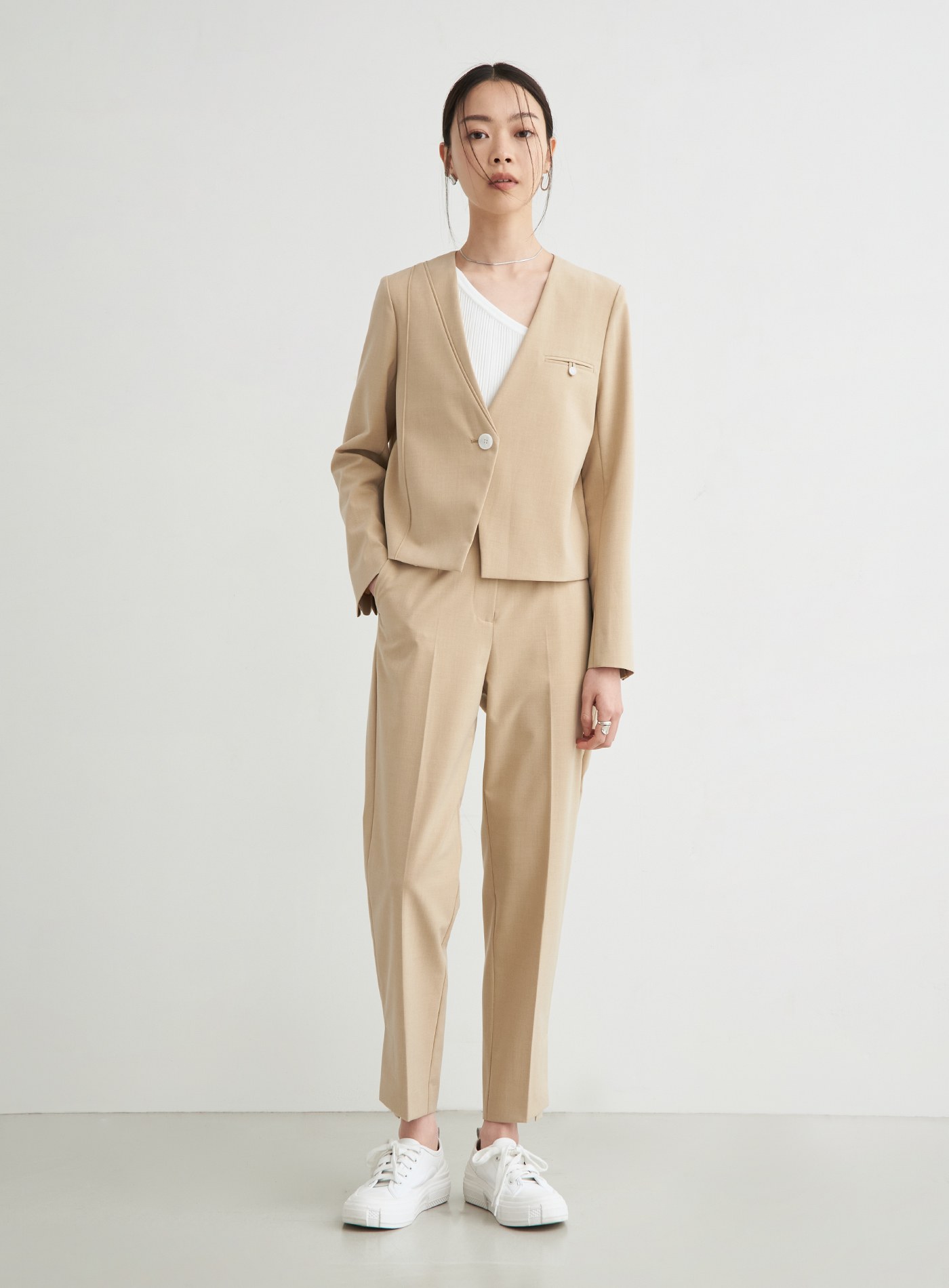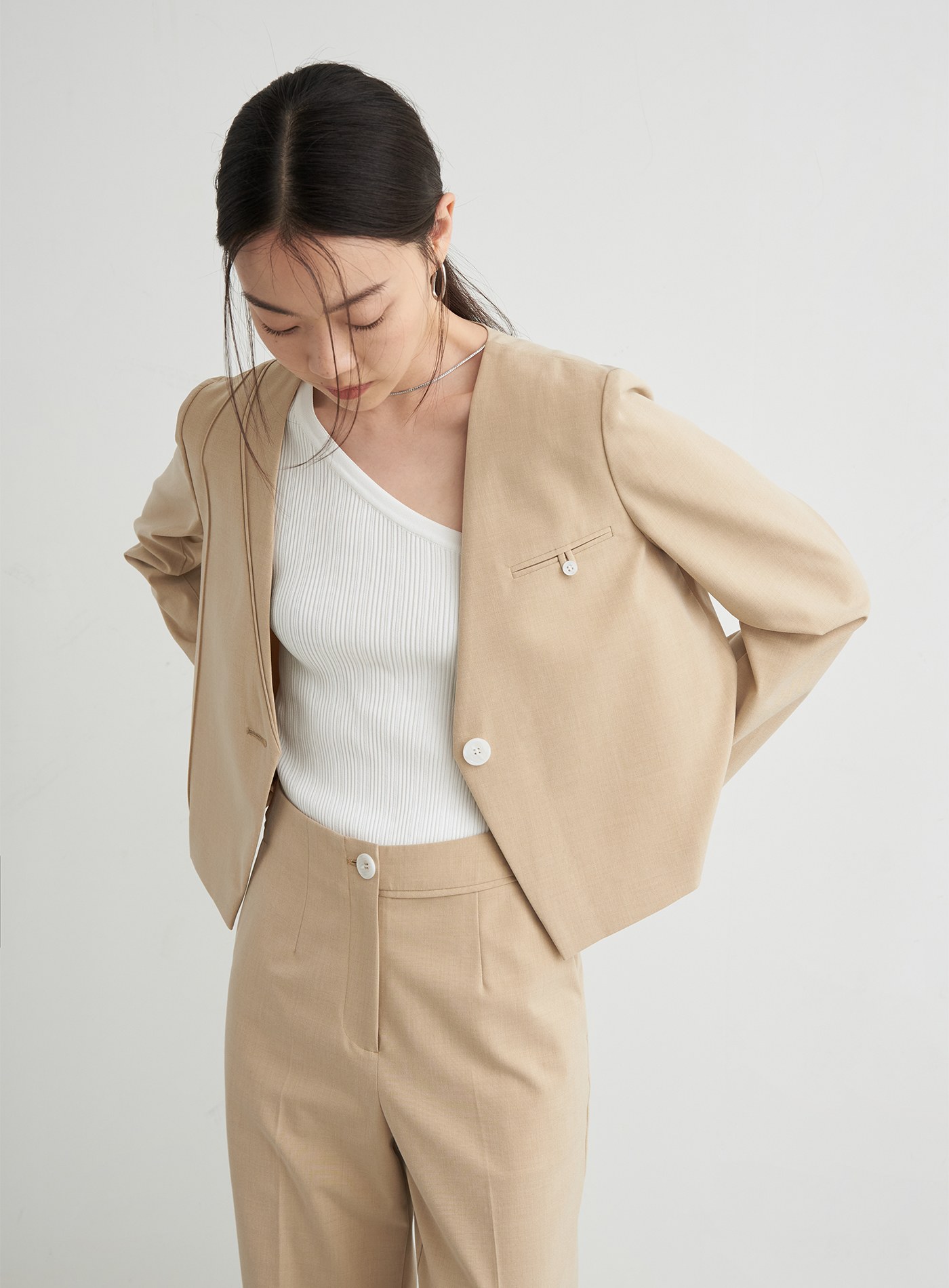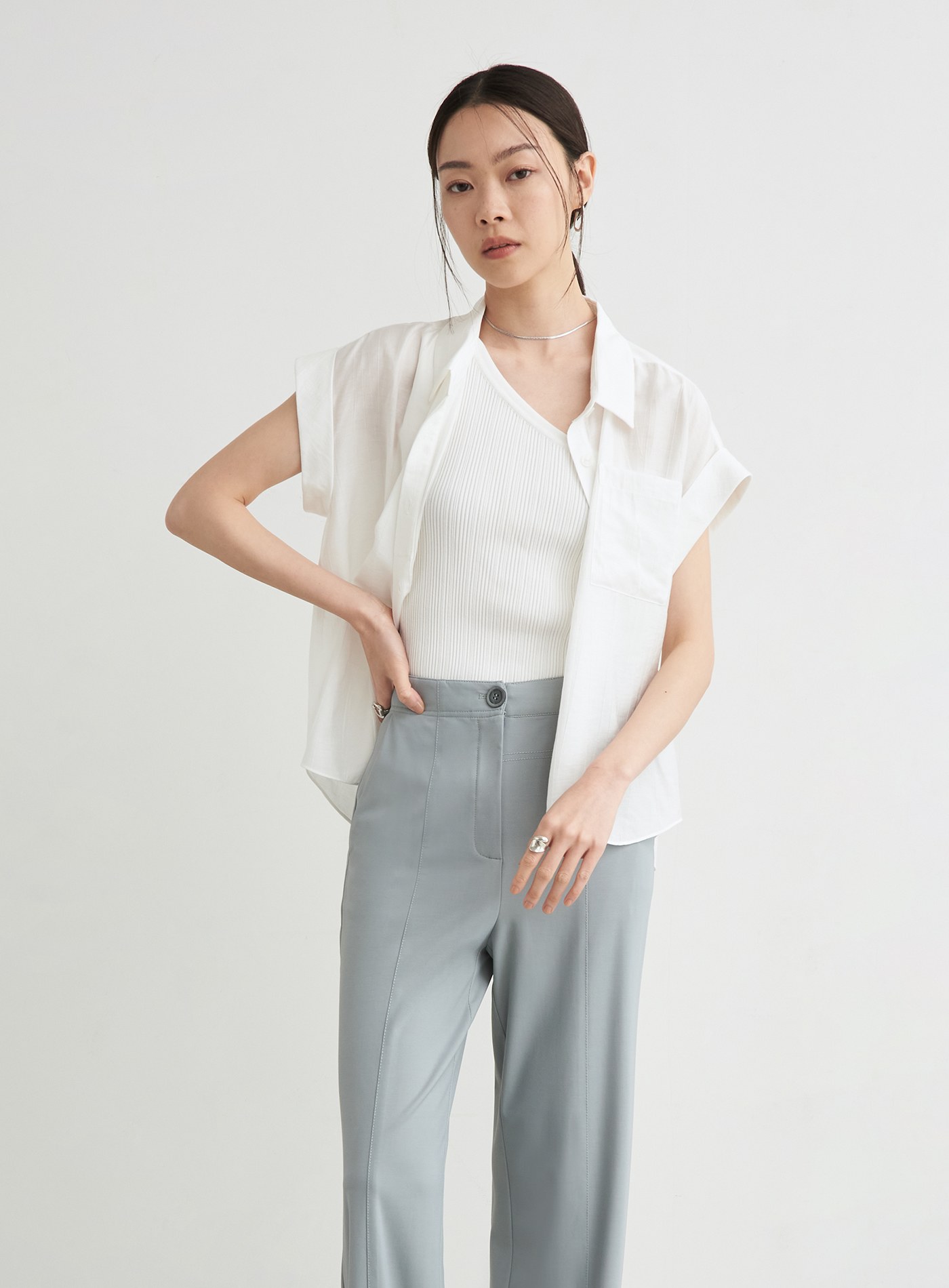 - 領口螺紋邊以包邊處理,提升穿著服貼度,精緻工藝細節