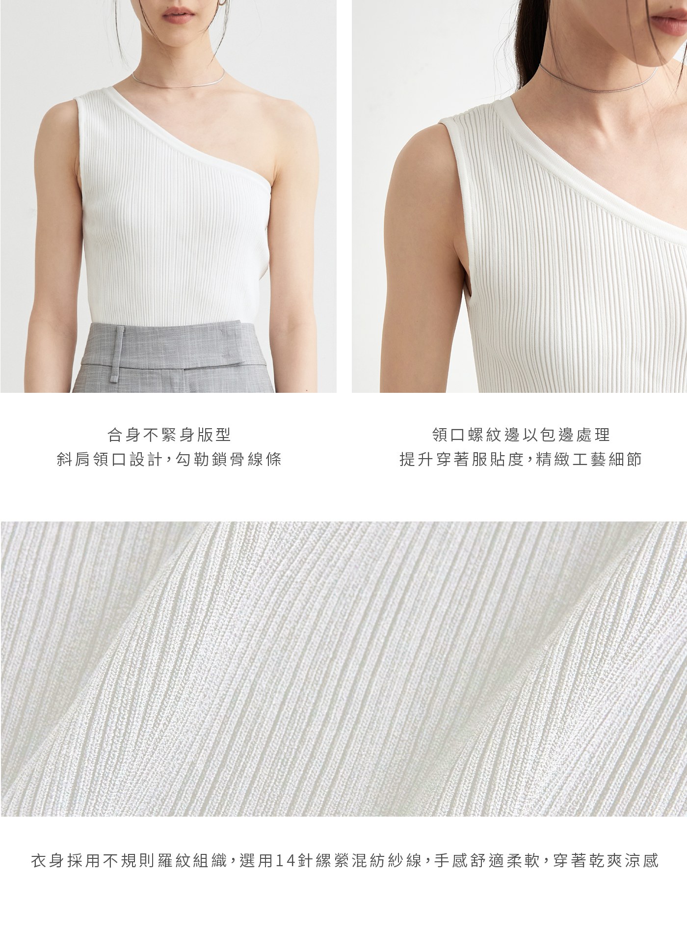 - 合身不緊身版型,斜肩領口設計,勾勒鎖骨線條