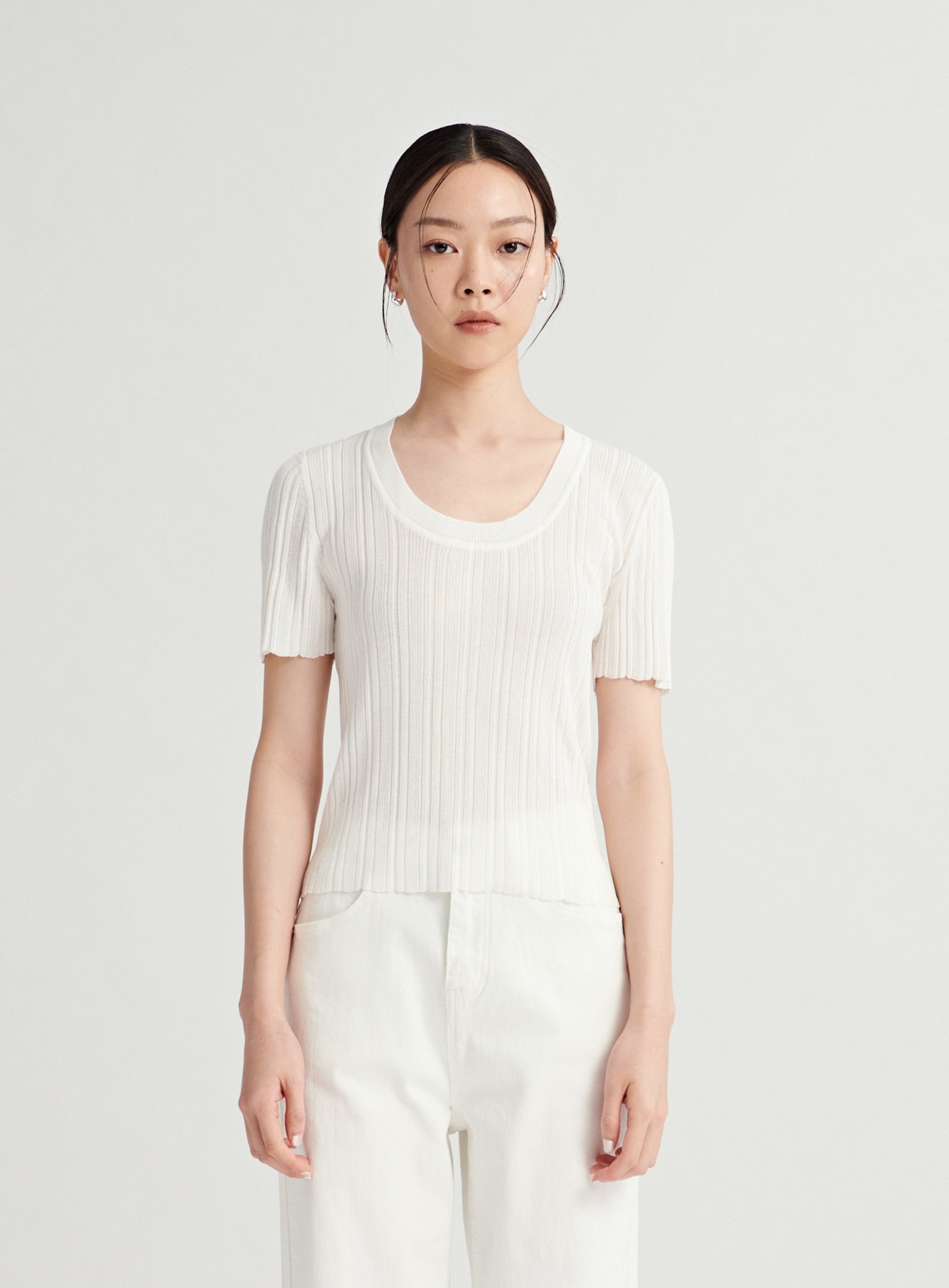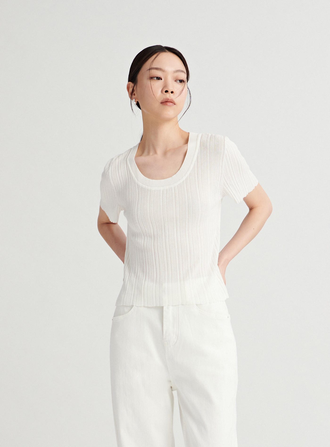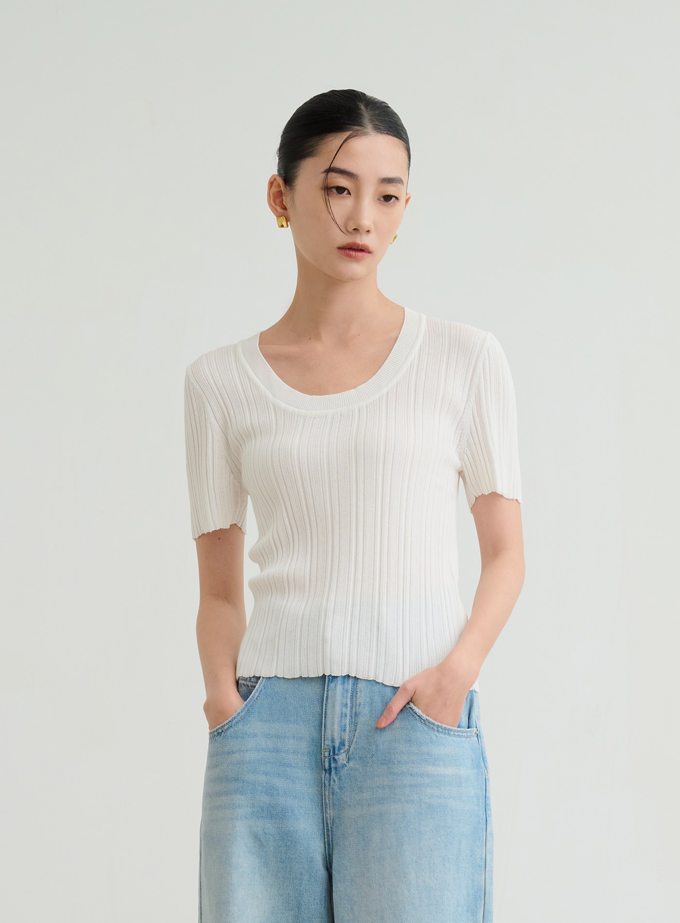 挖背剪裁圓領短版上衣$35 USD
