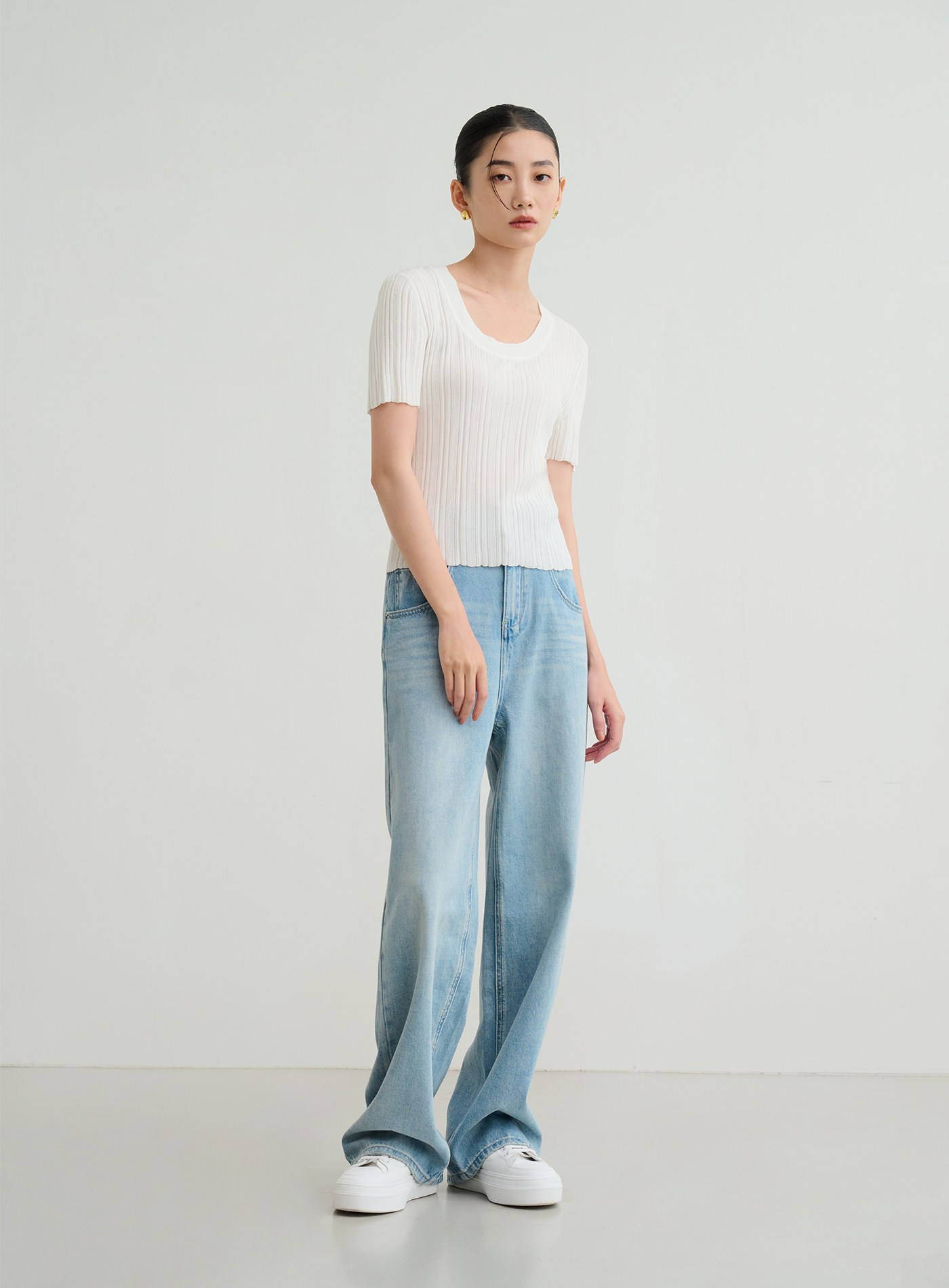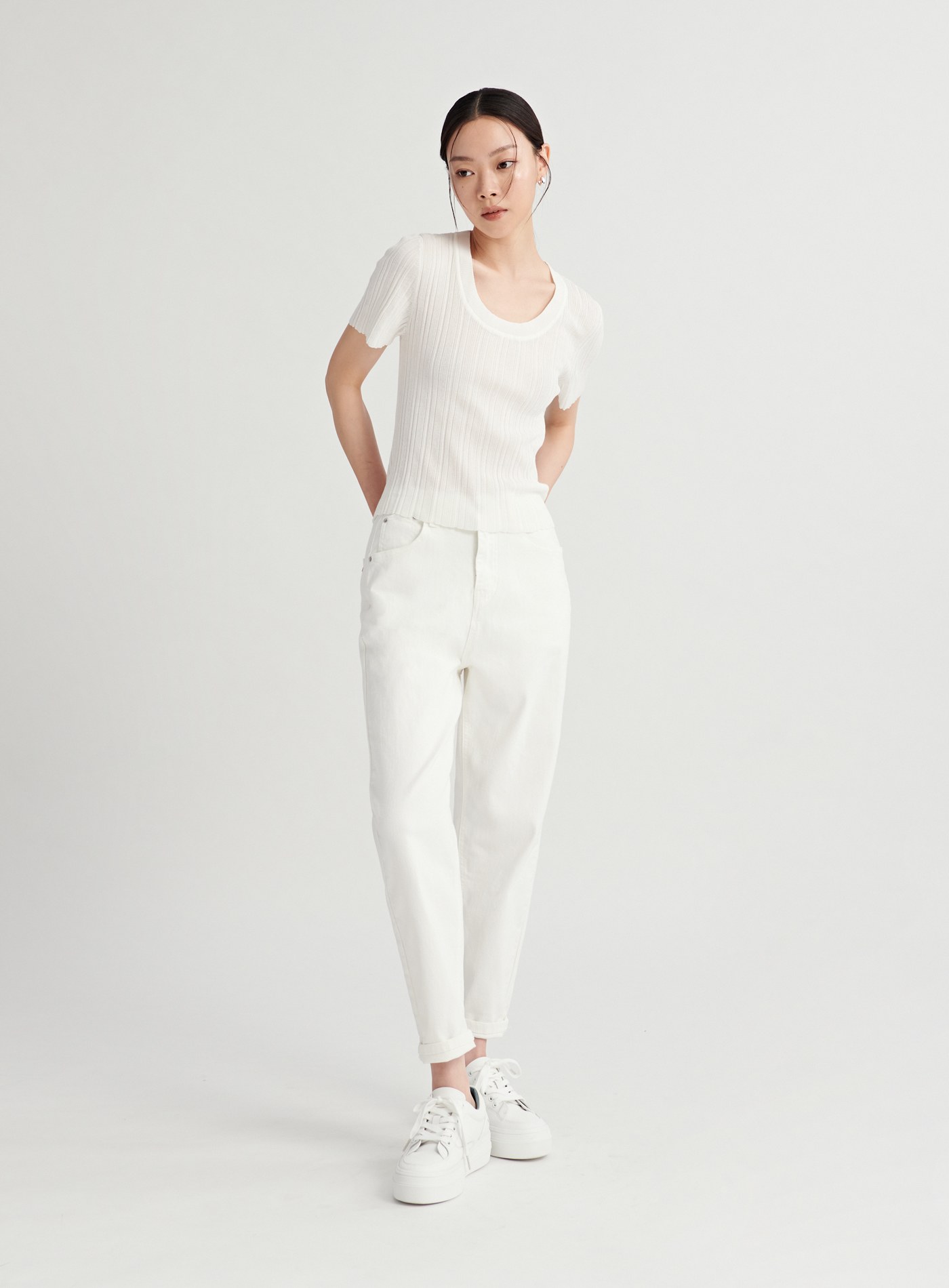 優雅不對稱圓領設計上衣$63 USD