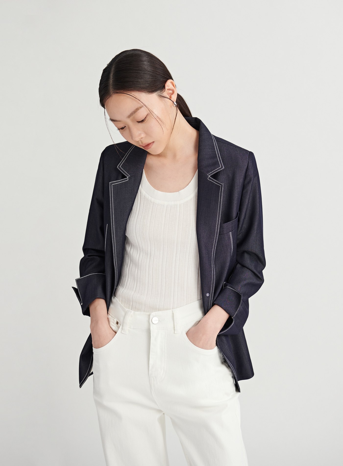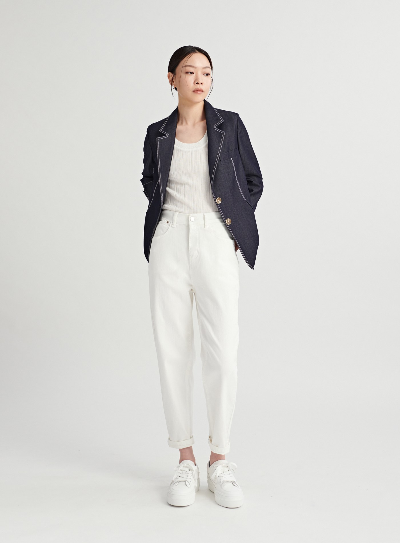 短版俐落寬肩無袖休閒襯杉$60 USD