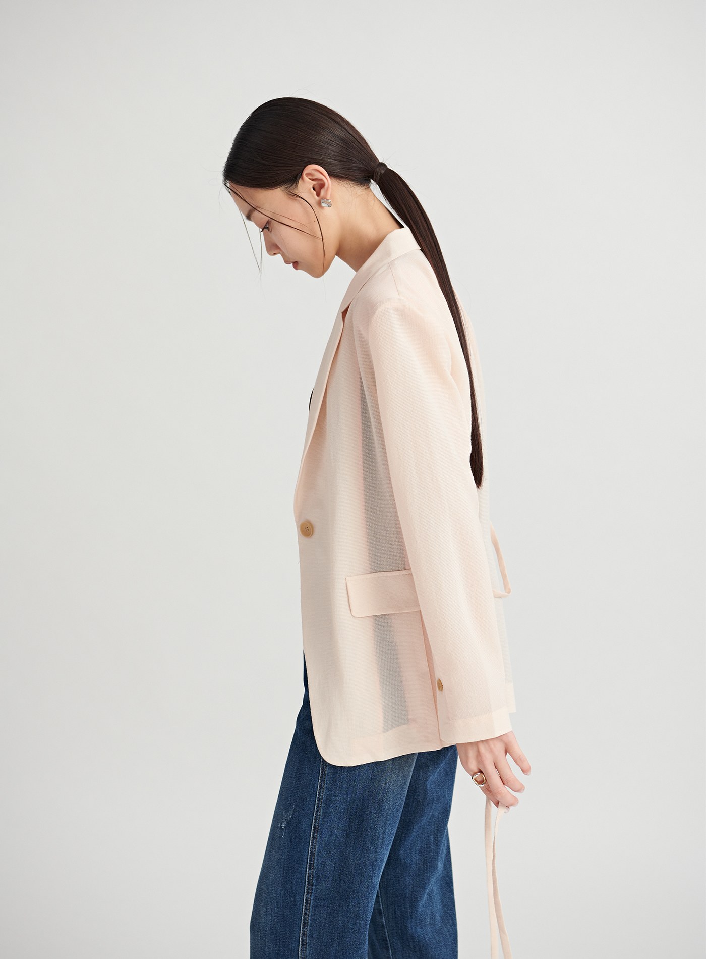 - 選用特殊肌理感半透明面料,兼具夏季輕薄與挺度