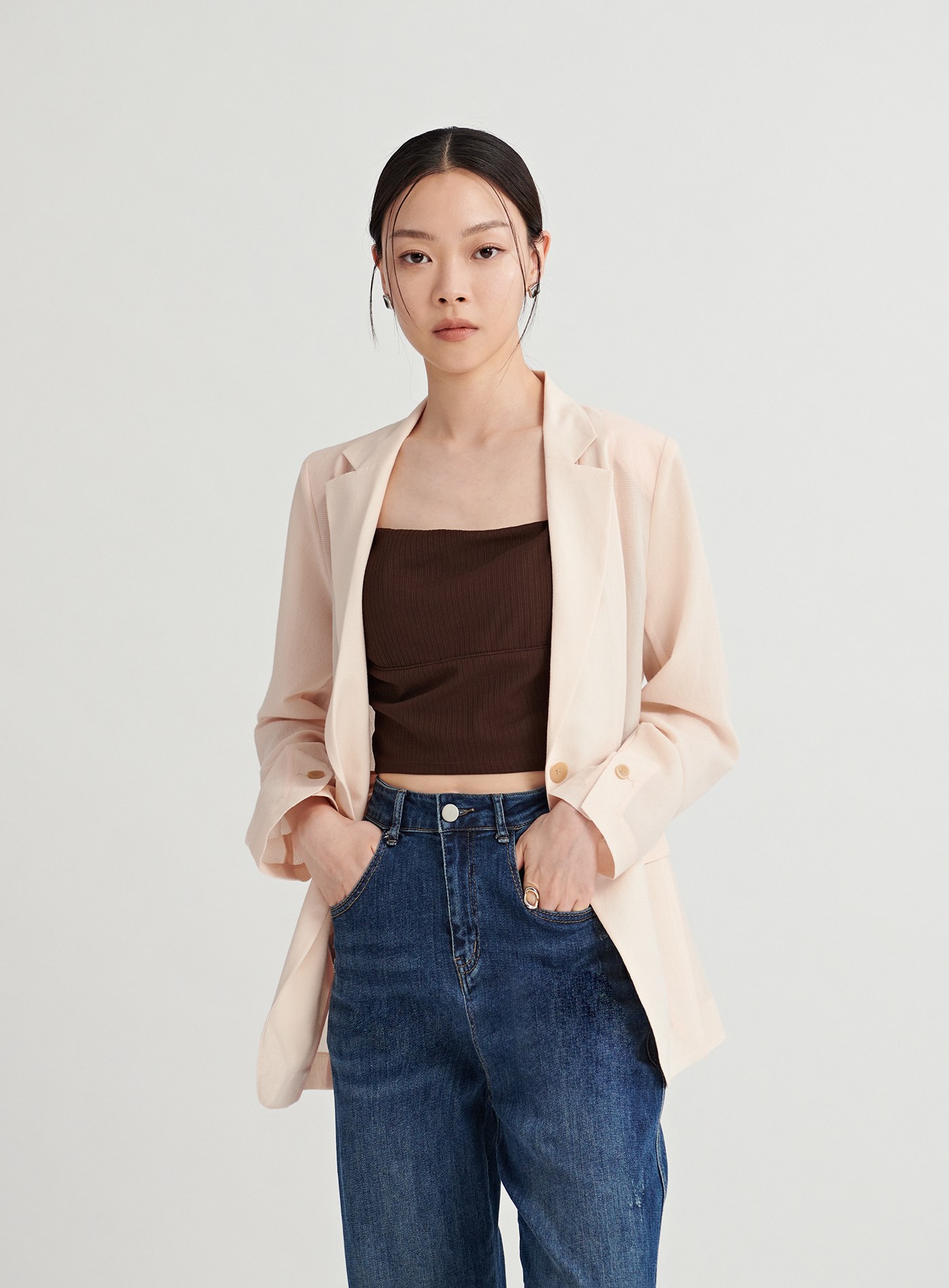 - 袖口一顆扣開衩設計可反褶,整件縫份包緄處理