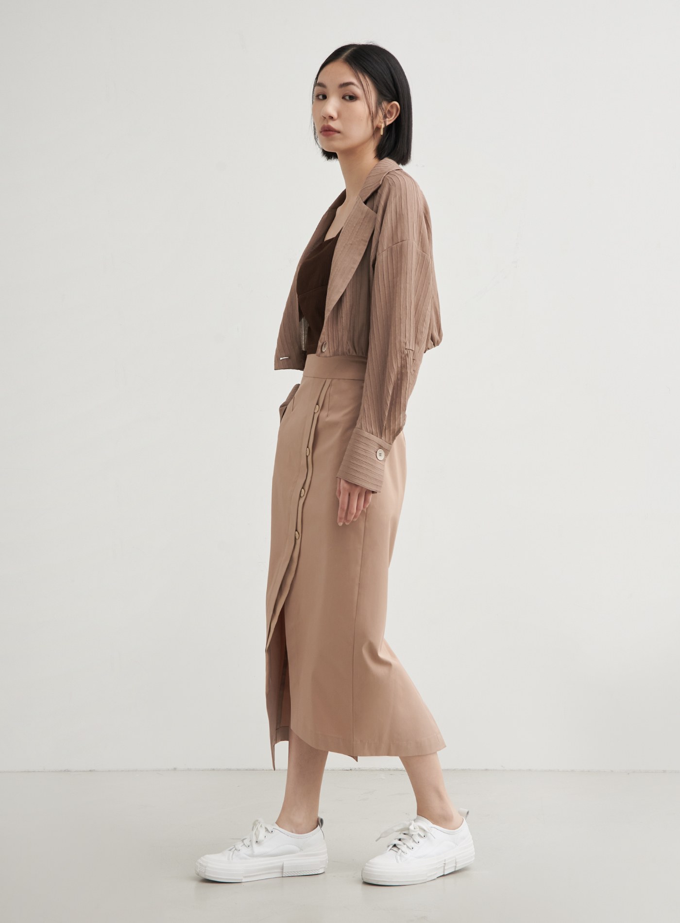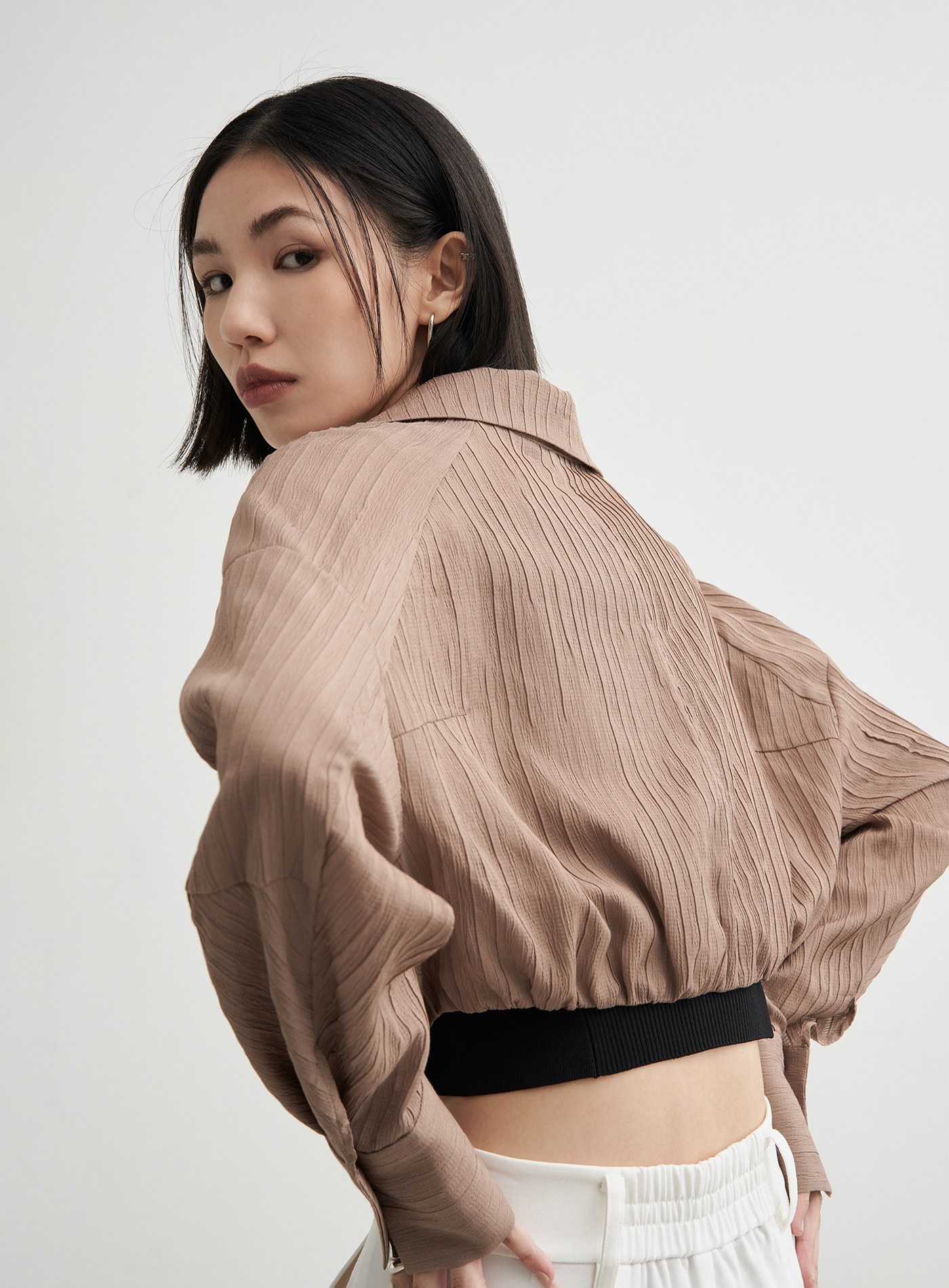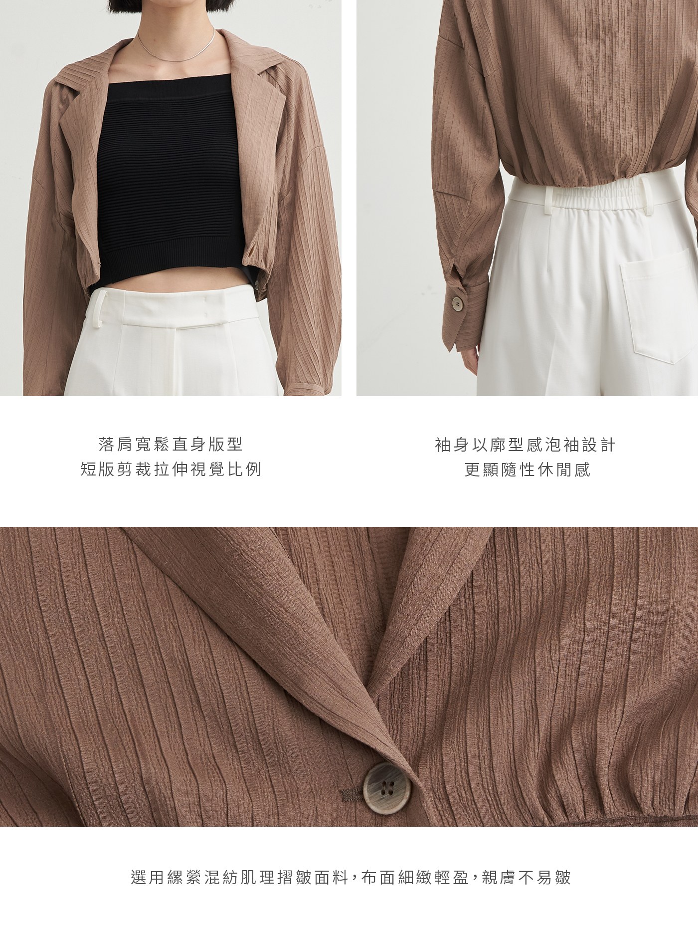 - 選用縲縈混紡肌理摺皺面料,布面細緻輕盈,親膚不易皺