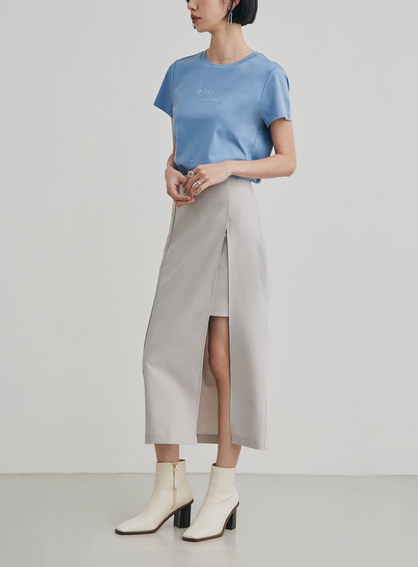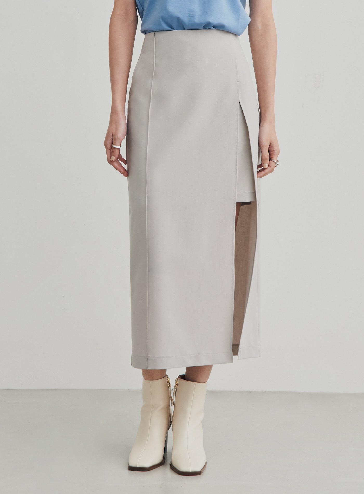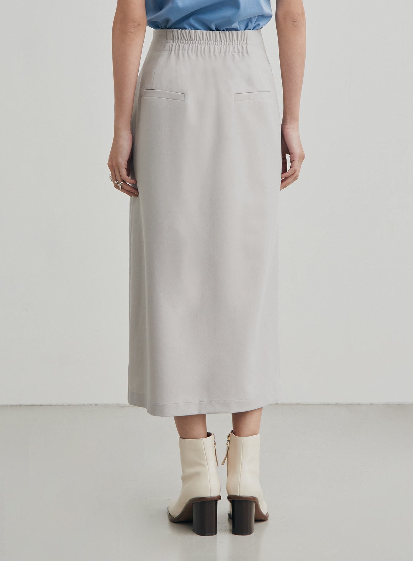 - H型直筒裙型剪裁/後腰鬆緊設計