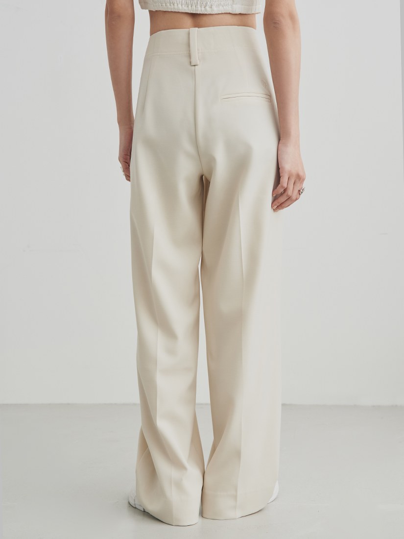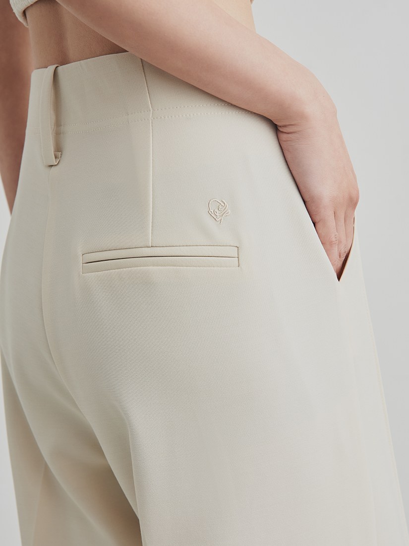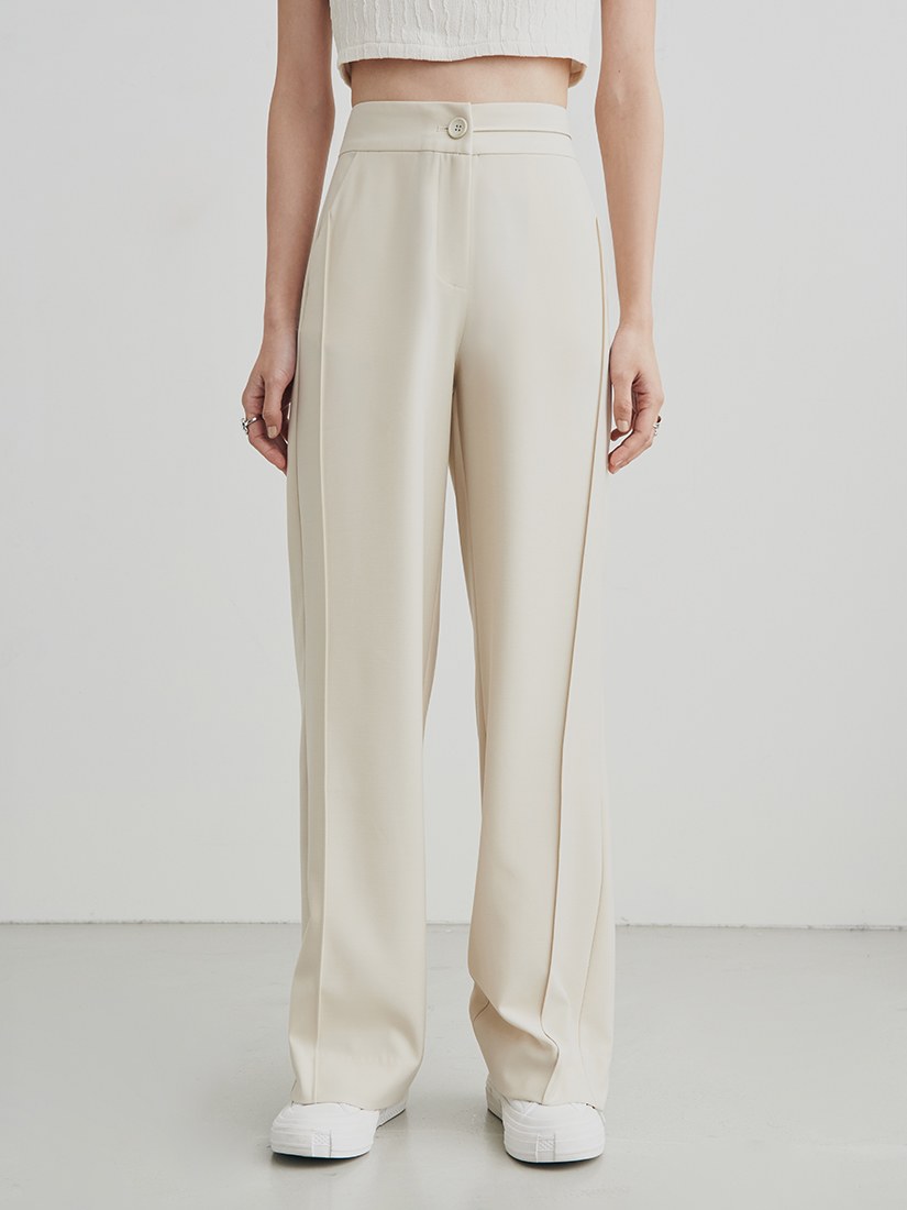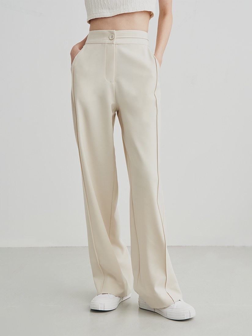 - 直筒寬褲剪裁/微V腰頭設計,修飾腰部曲線/有口袋