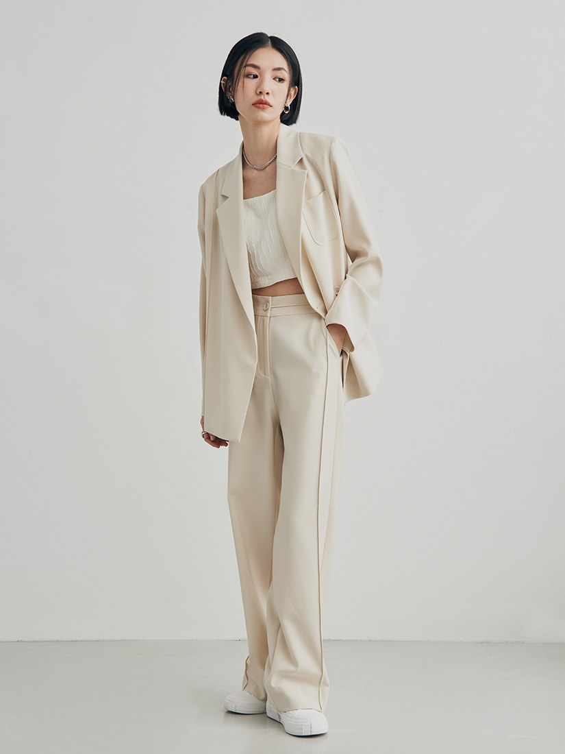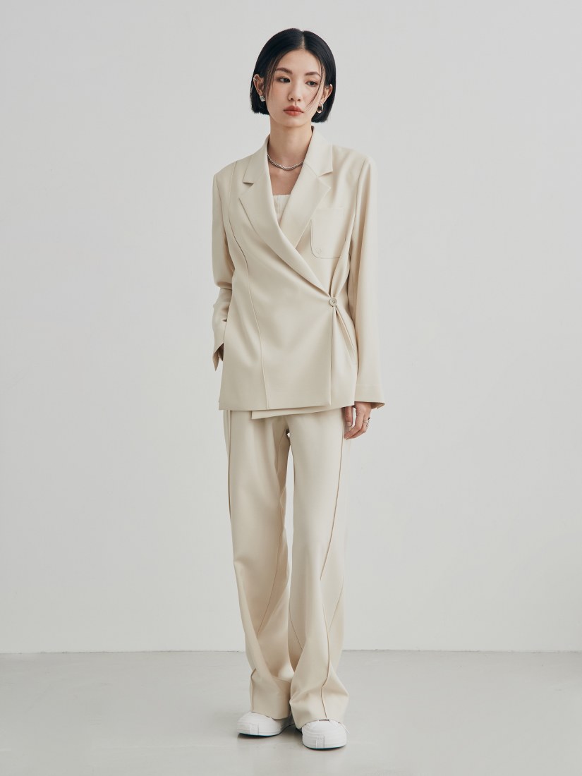 - 可與 '細節不對稱開衩西裝外套 ' 搭成一套