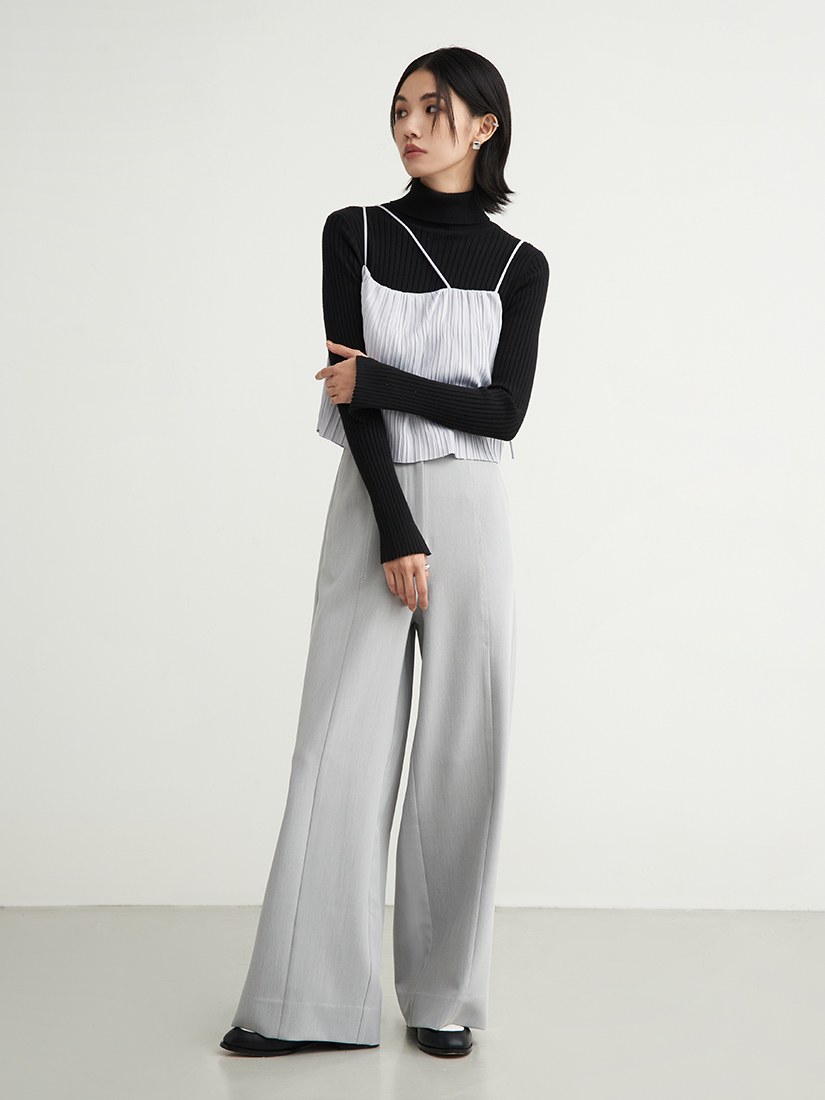 - 直筒寬褲剪裁/後身腰部連腰無剪接設計,讓視覺比例更加修身