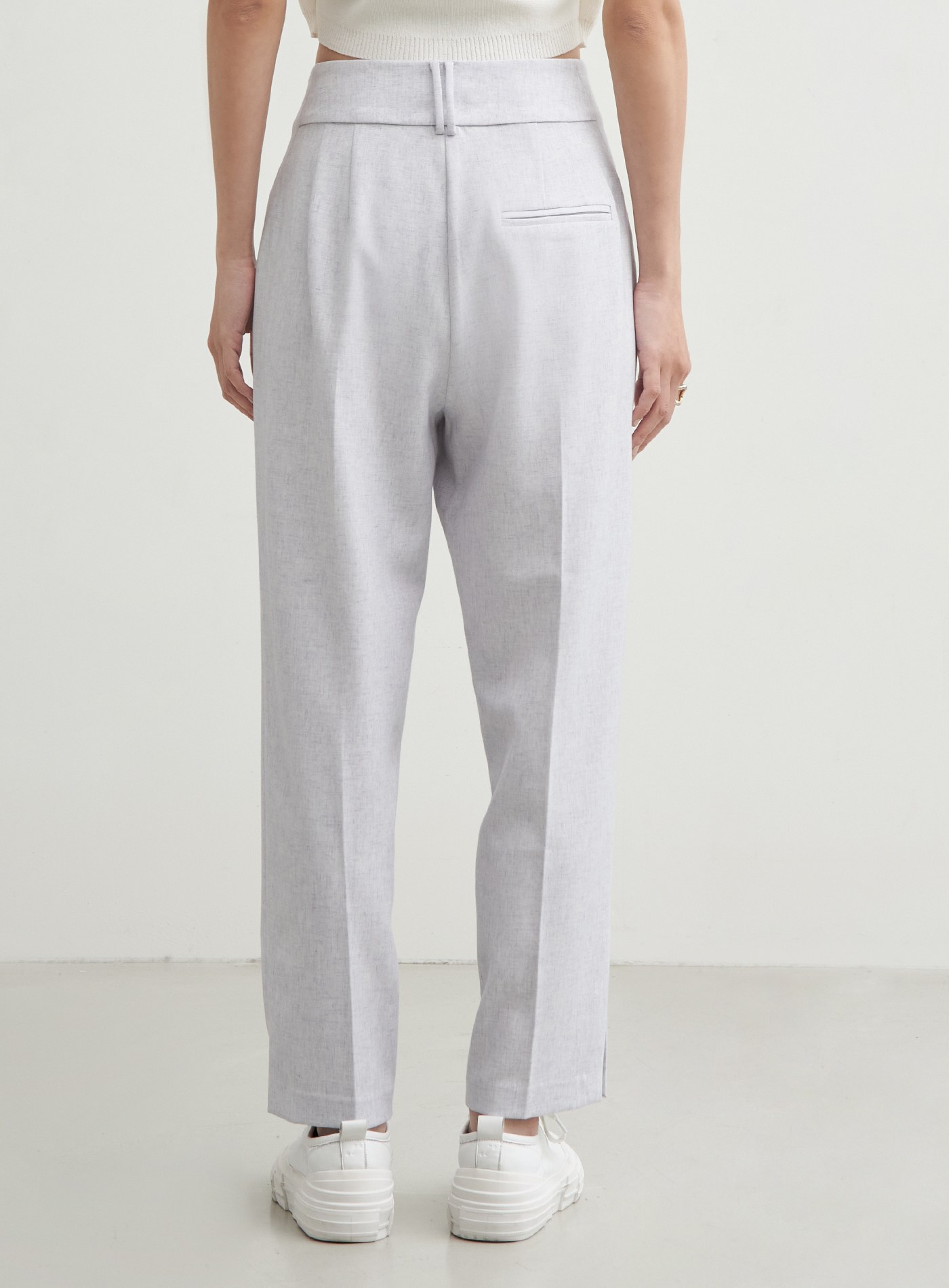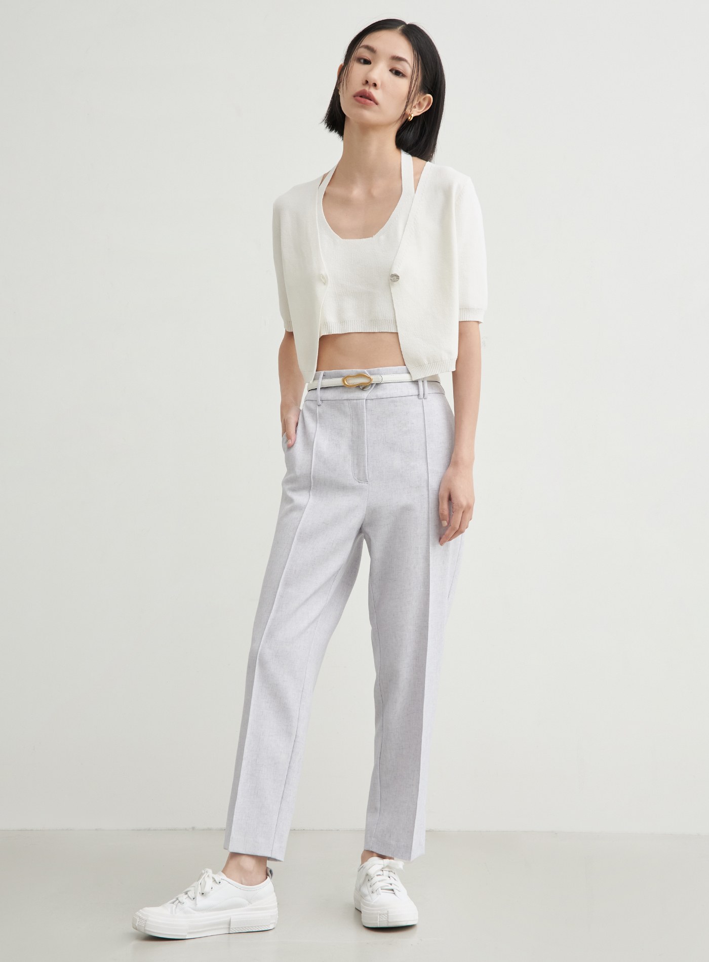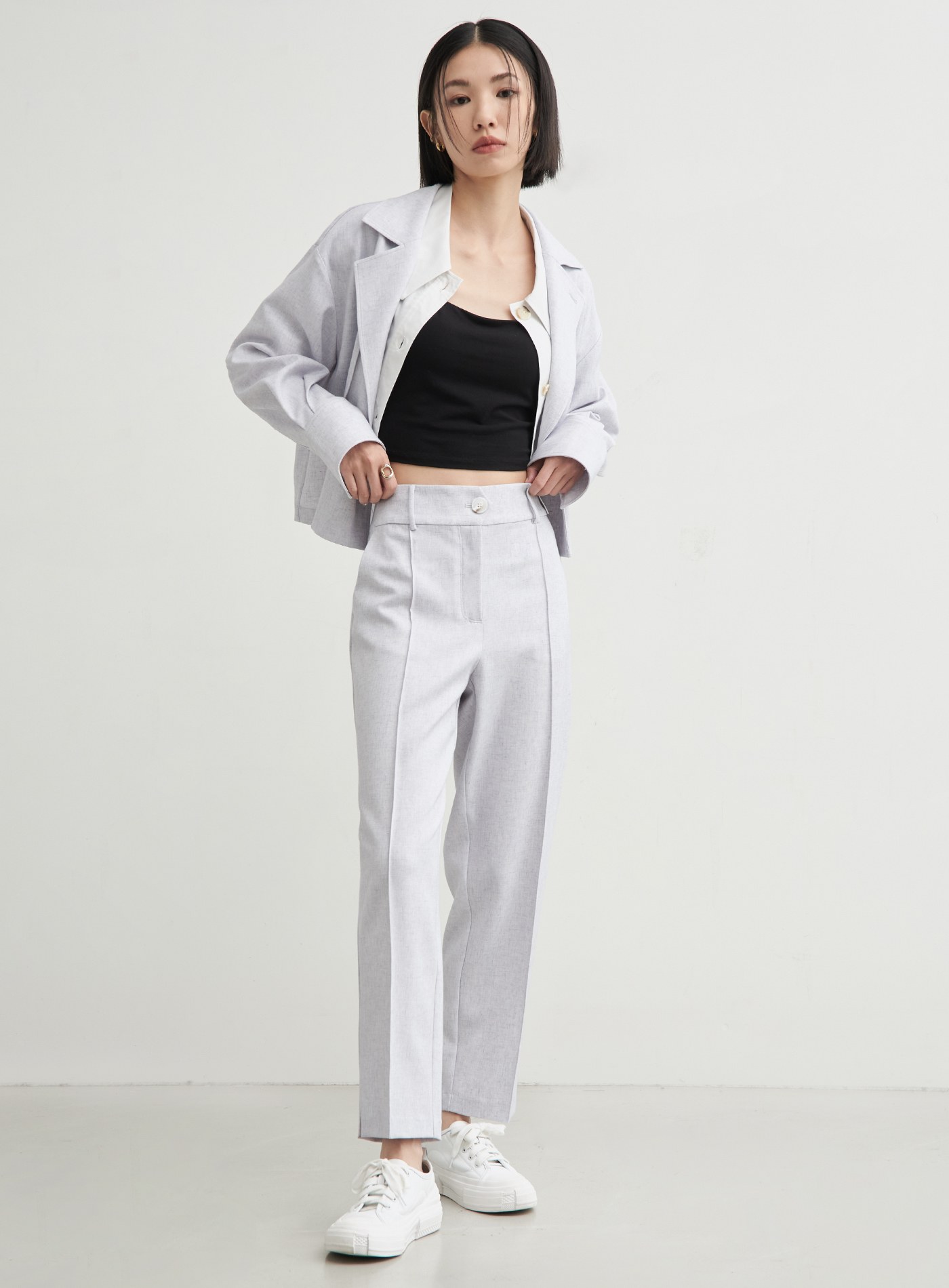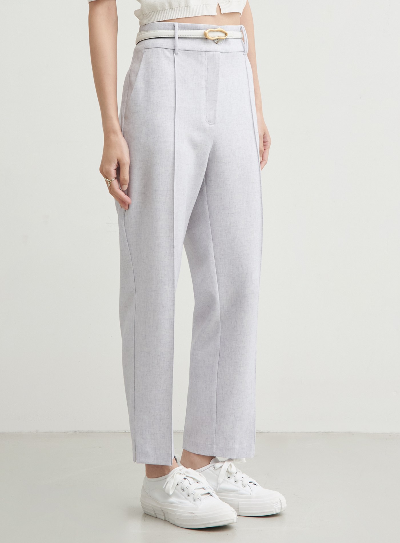 - 錐形西裝褲剪裁/不對稱腰耳設計/腳口開衩/有口袋
