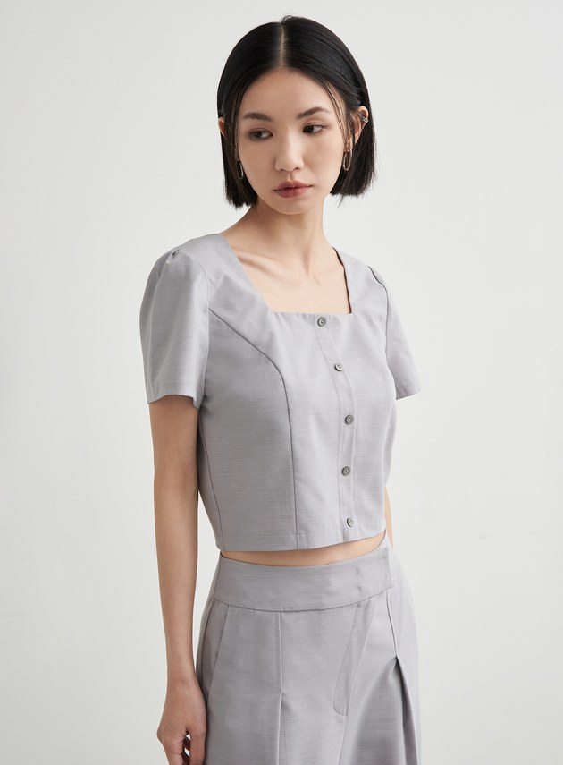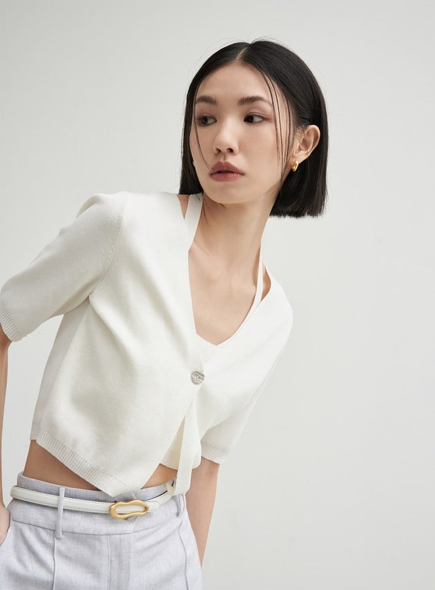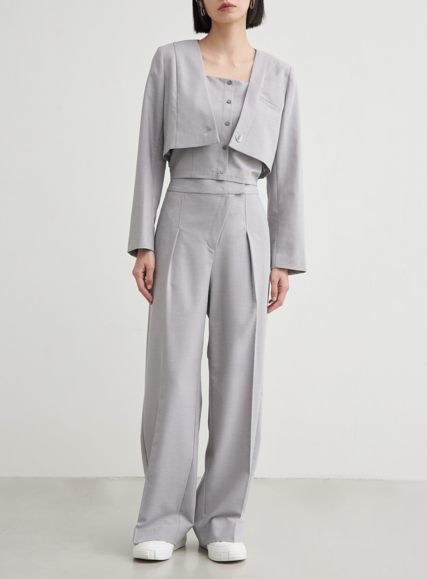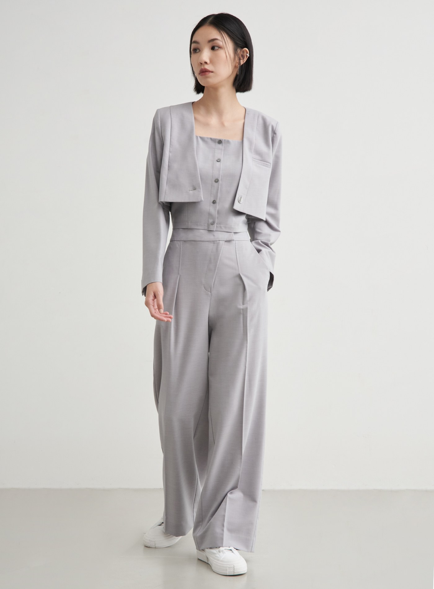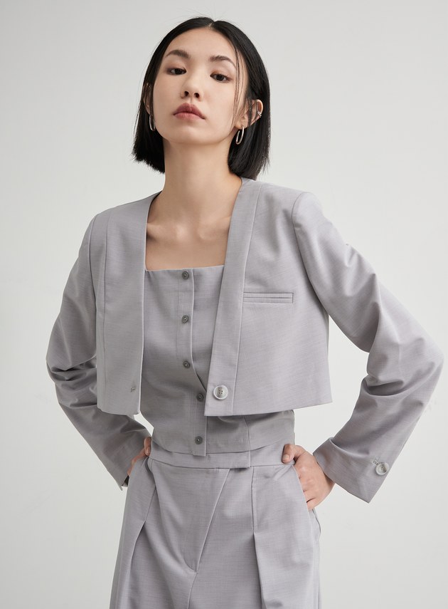 - 可與 '短版方領休閒短袖上衣' 或 '短版無領單釦西裝外套' 搭成一套