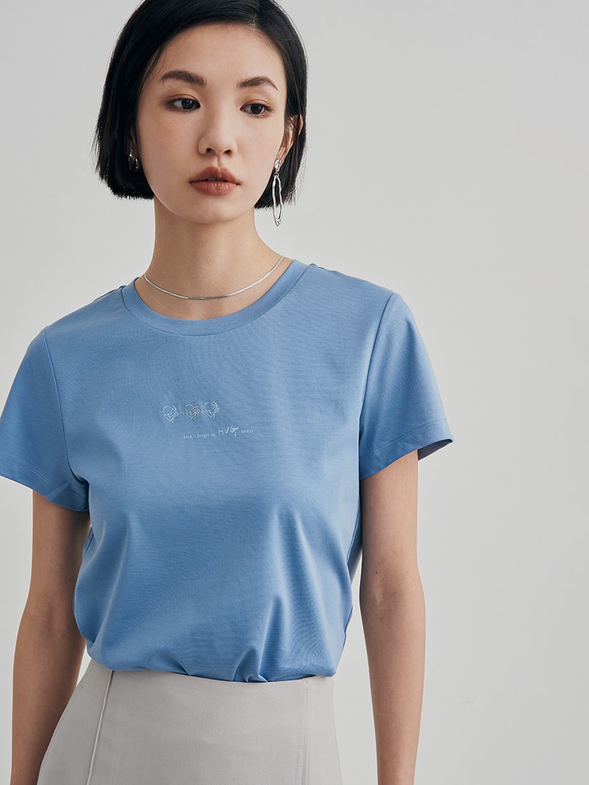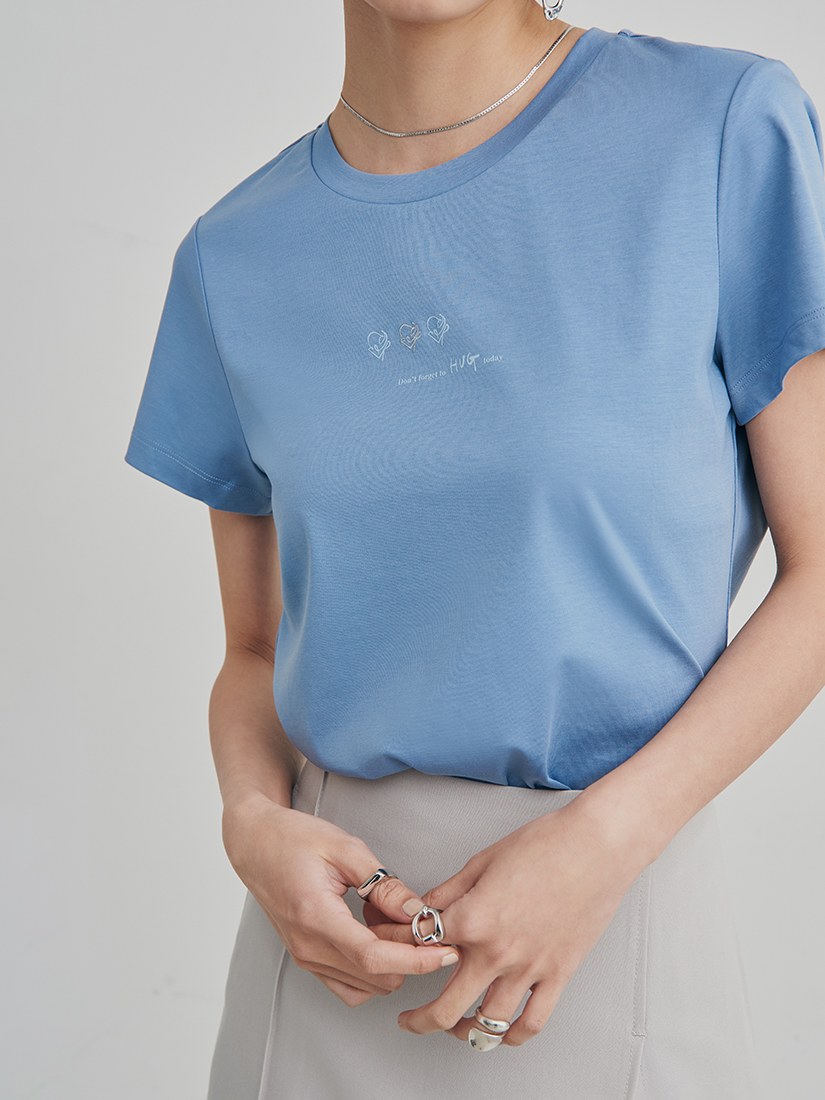- 前身有品牌開發擁抱logo印花與刺繡- ' Don't forget to HUG today ' 標語細節