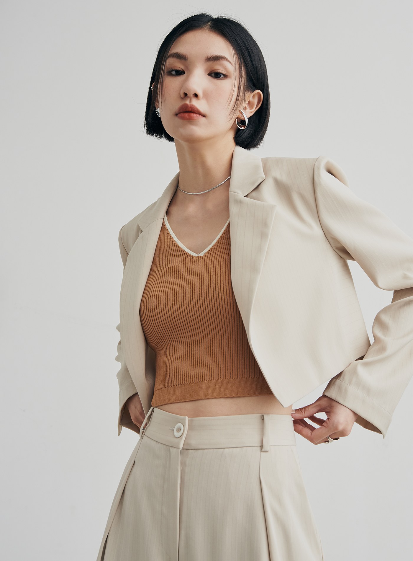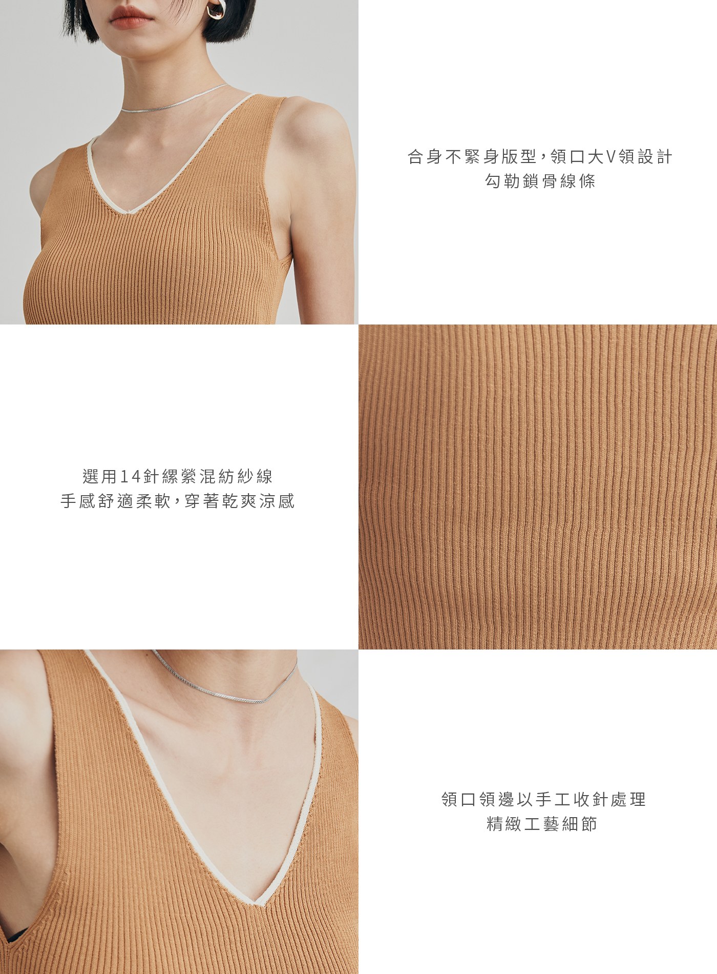 - 合身不緊身版型,領口大V領設計,勾勒鎖骨線條