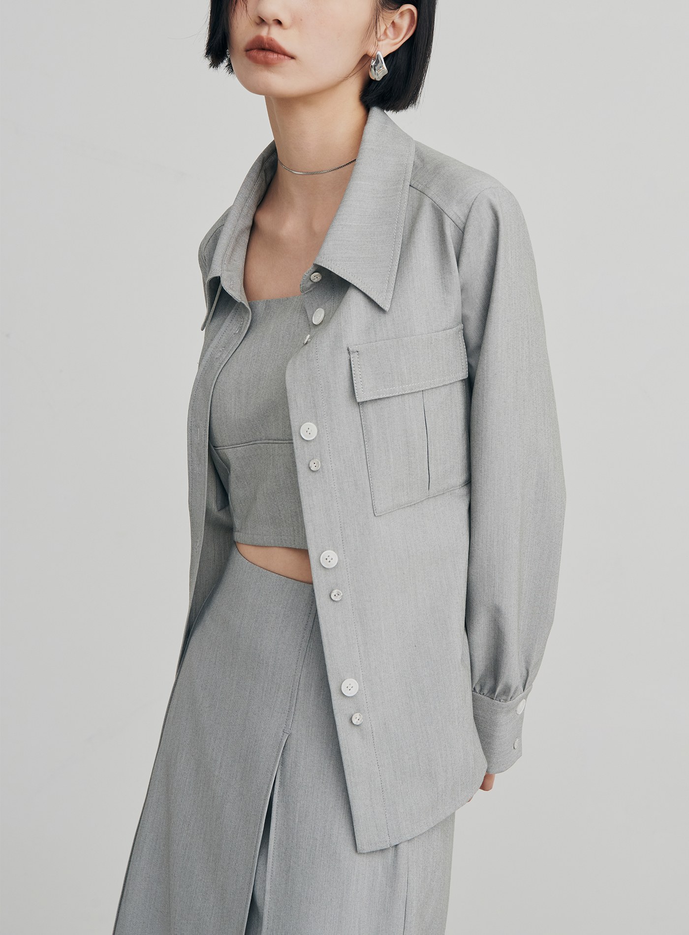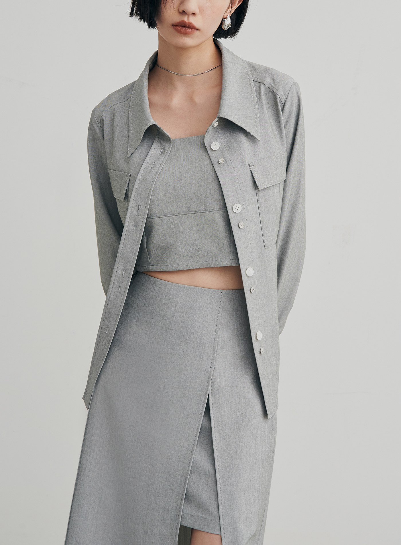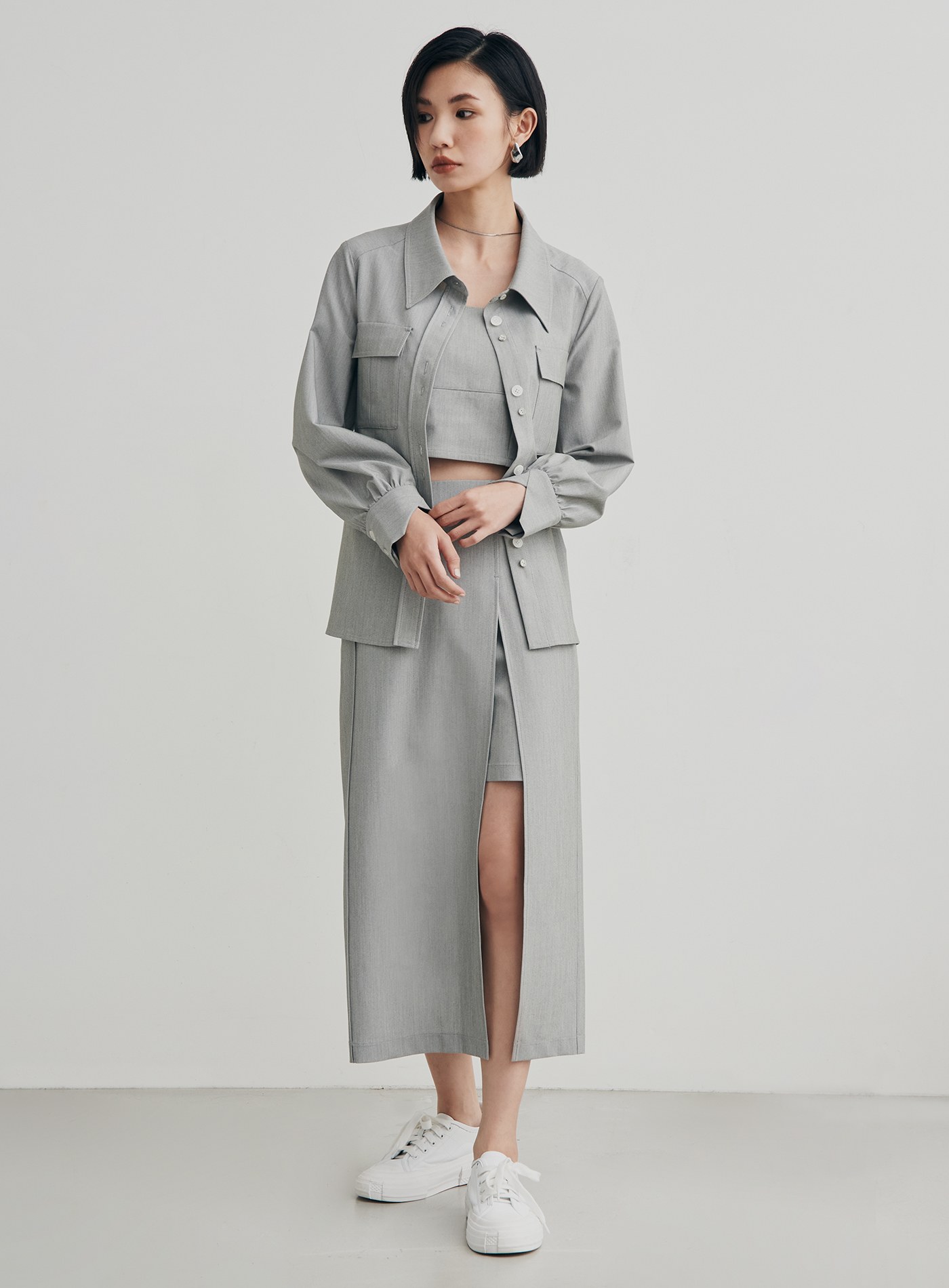 - 可與 '開衩俐落假兩件式直筒裙 搭成一套