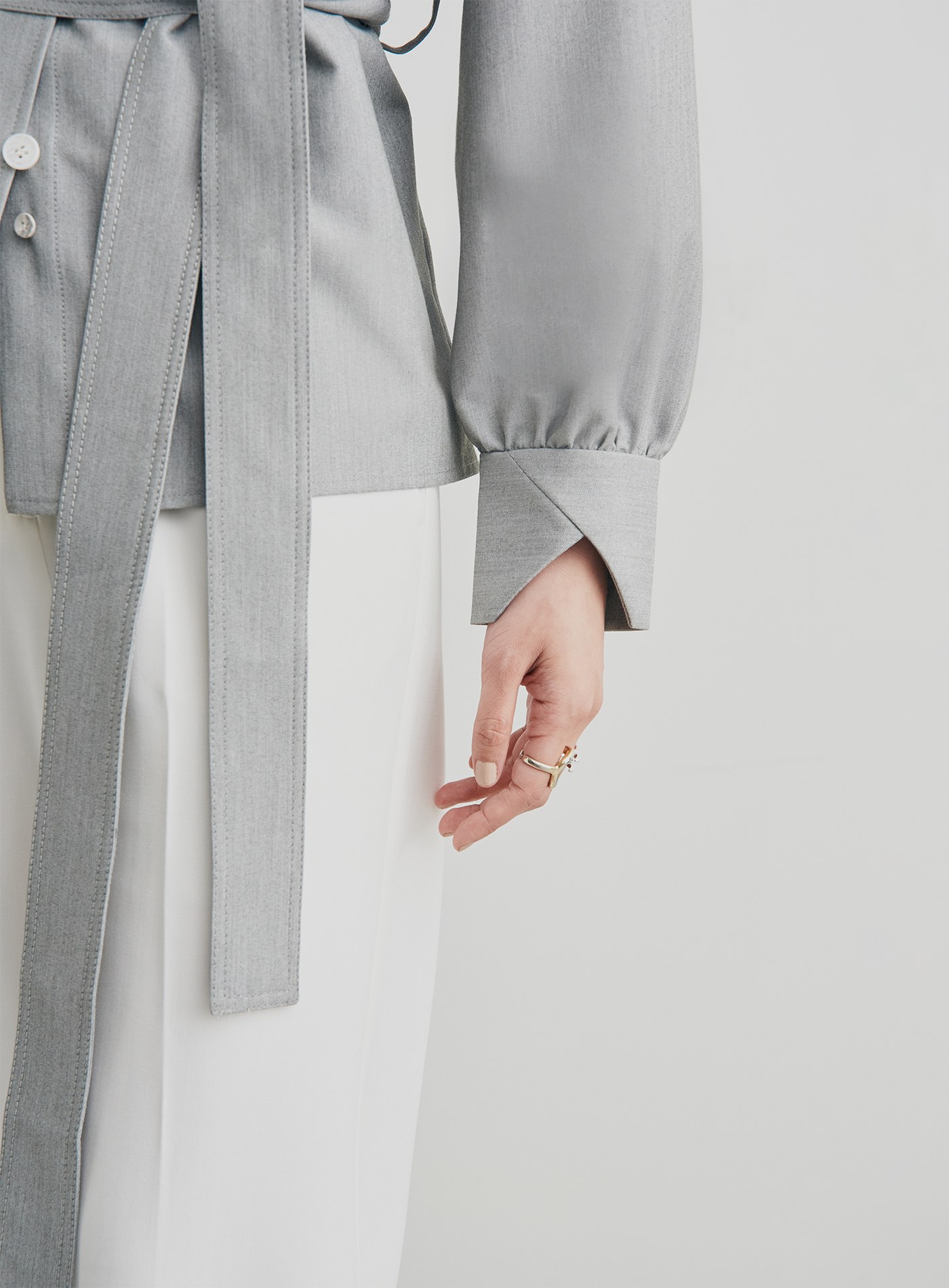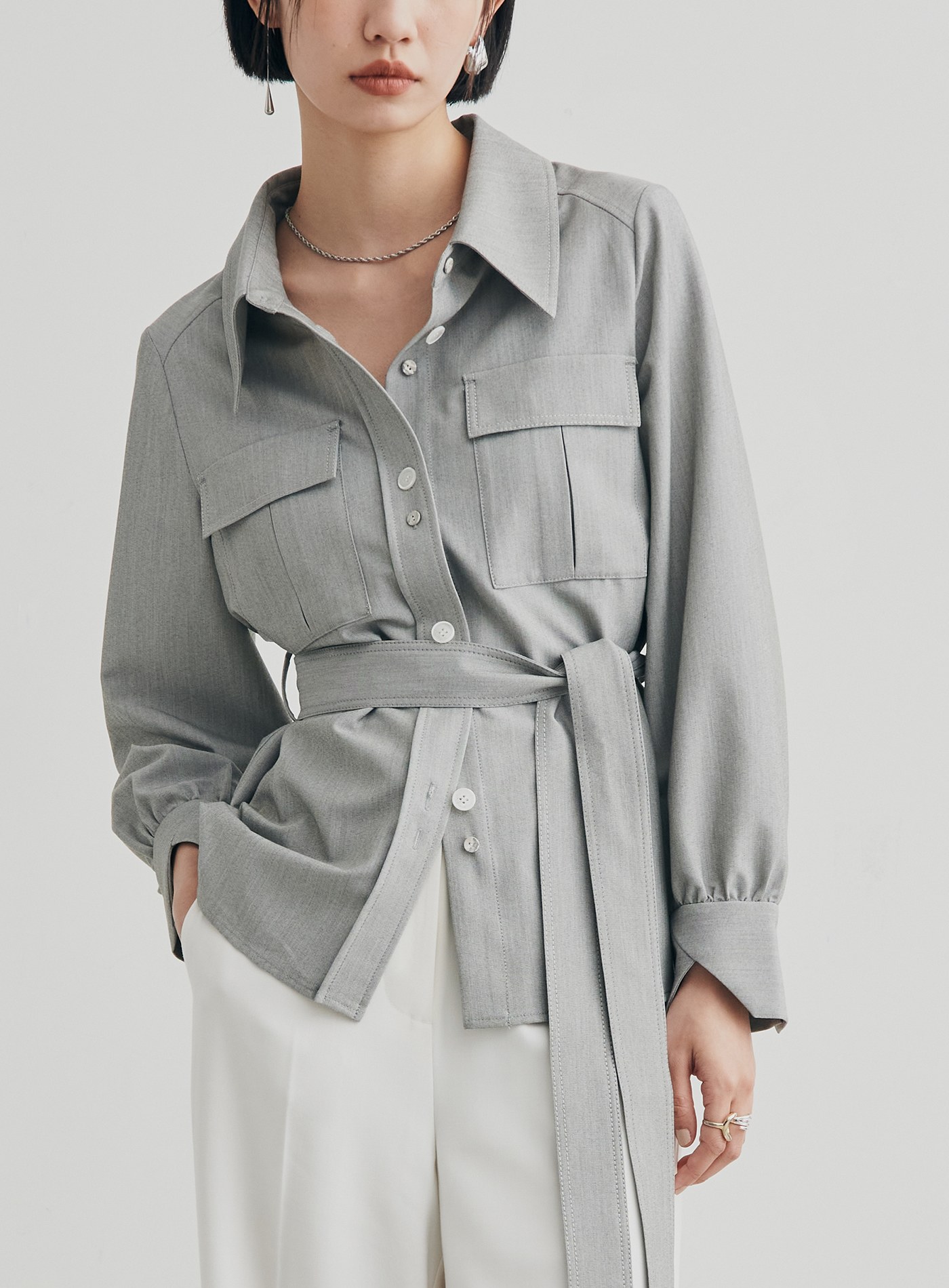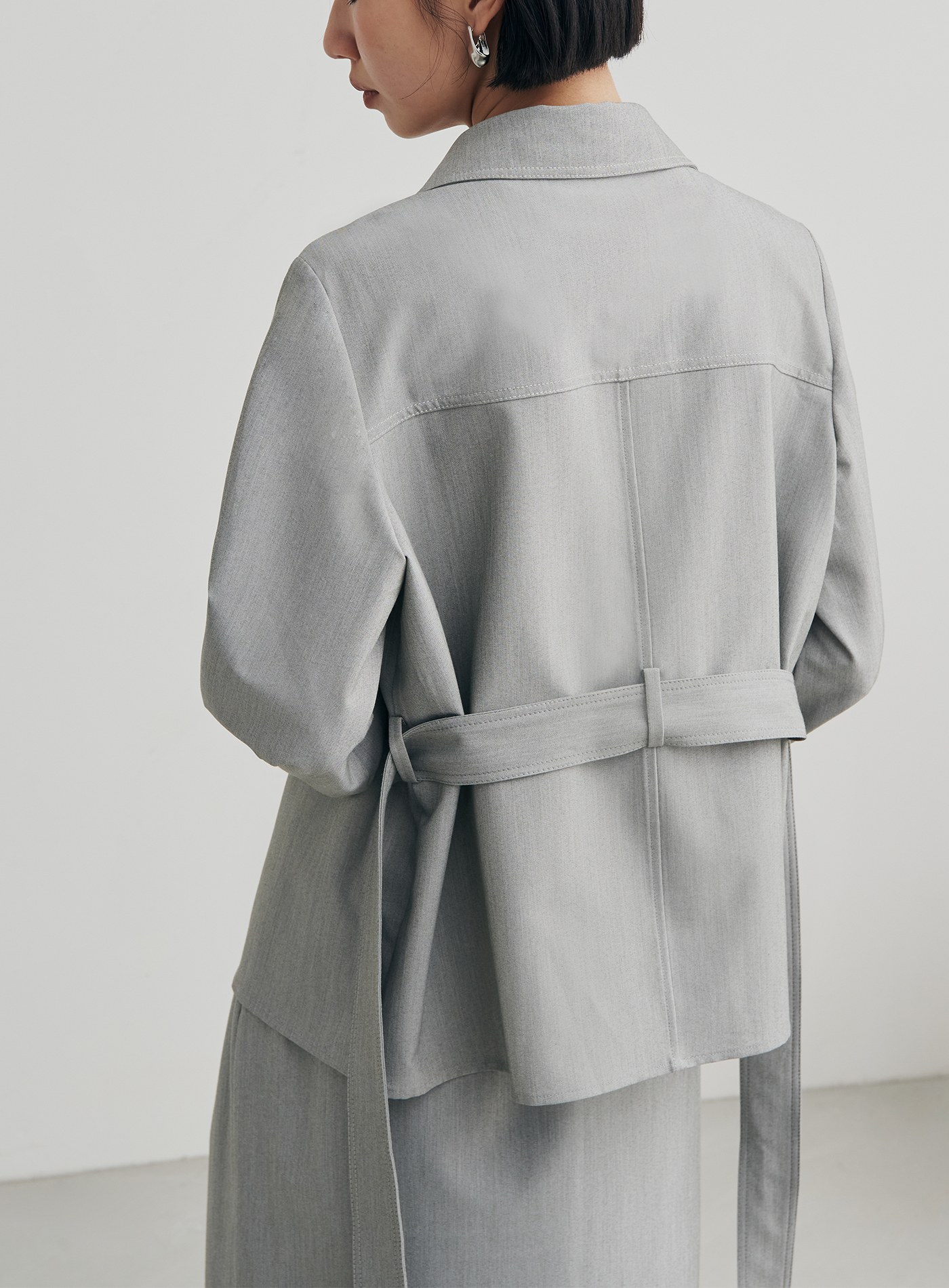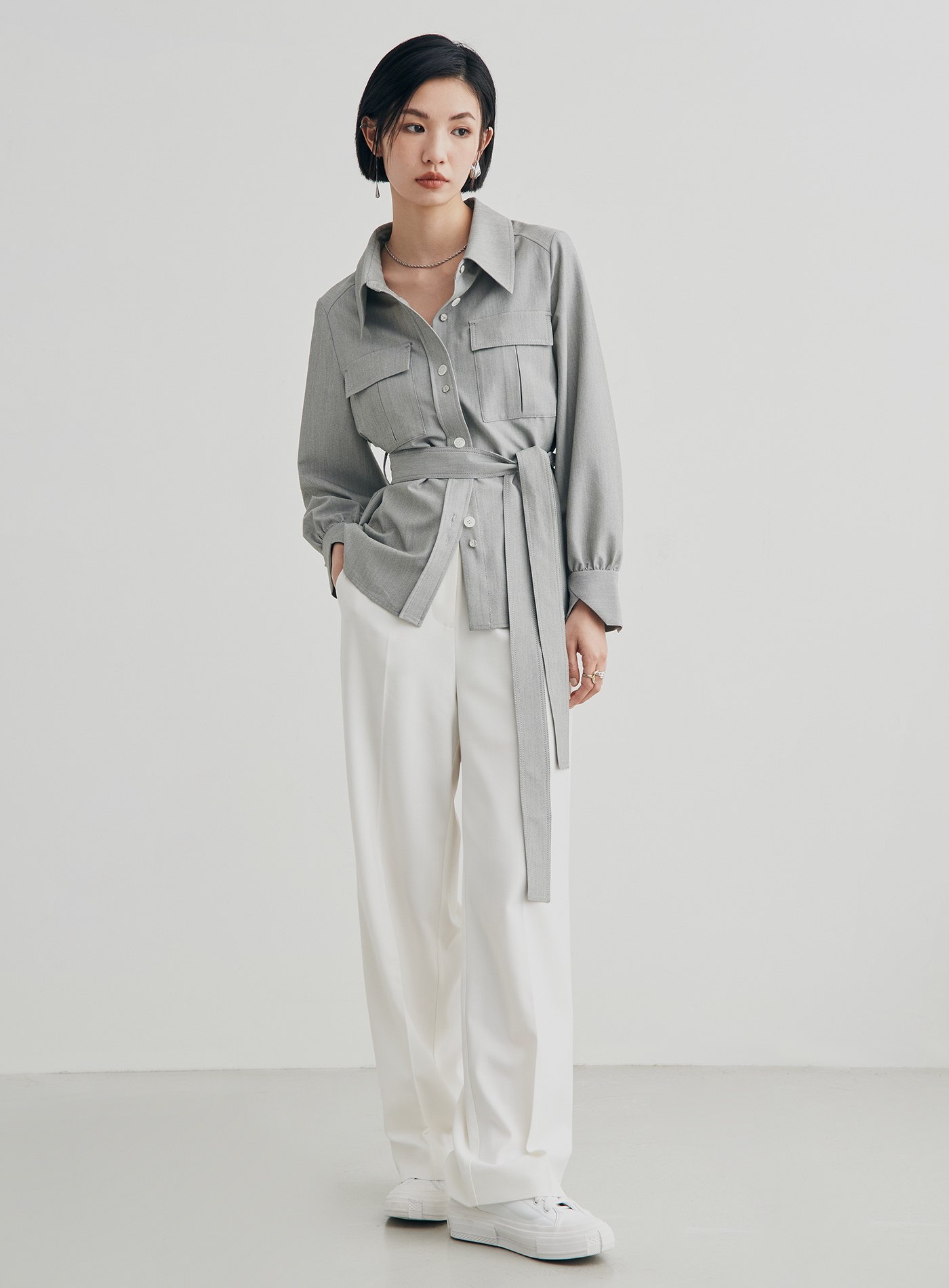 - 直身襯衫式外套剪裁/附可拆式腰帶/無里布