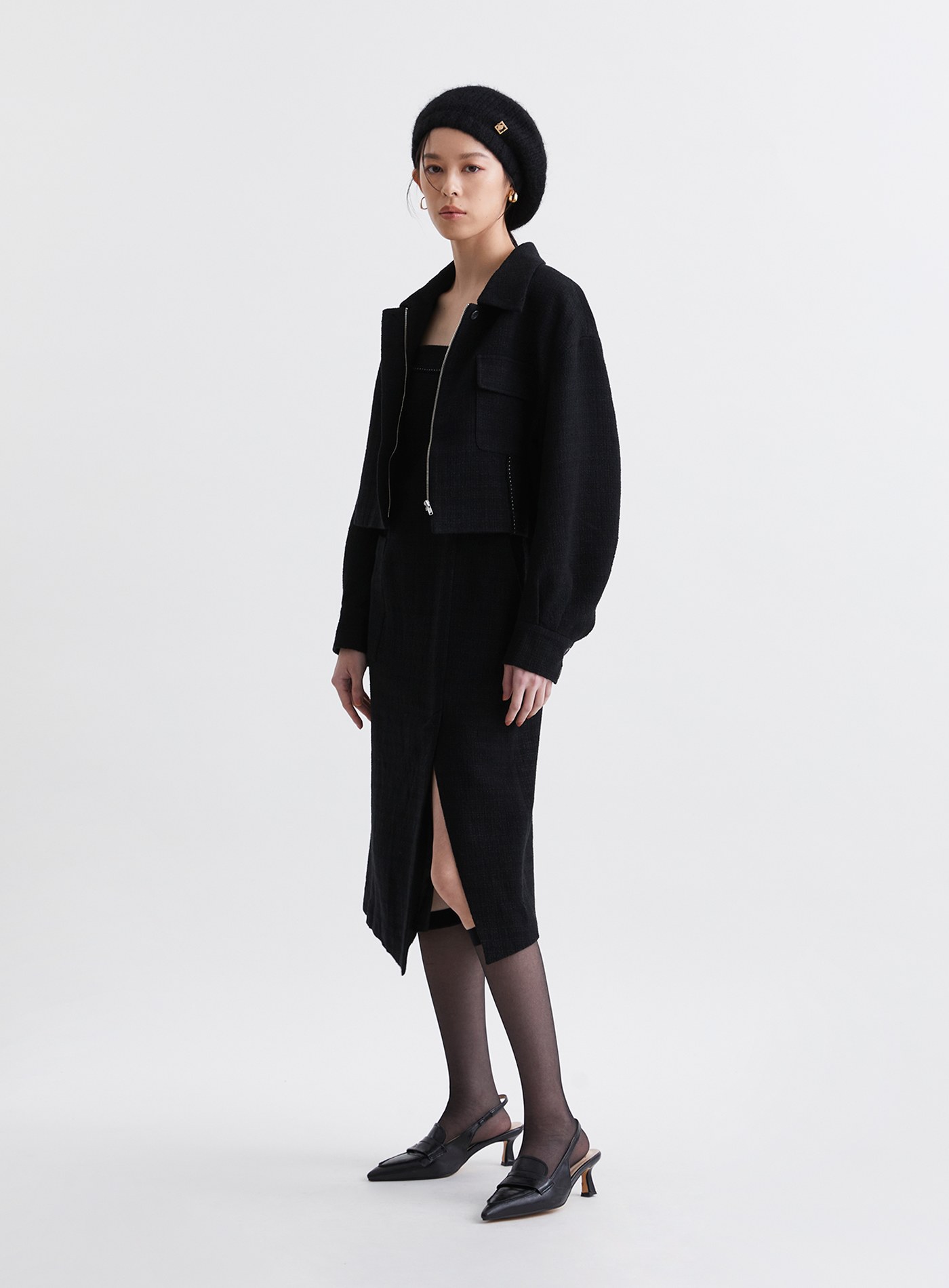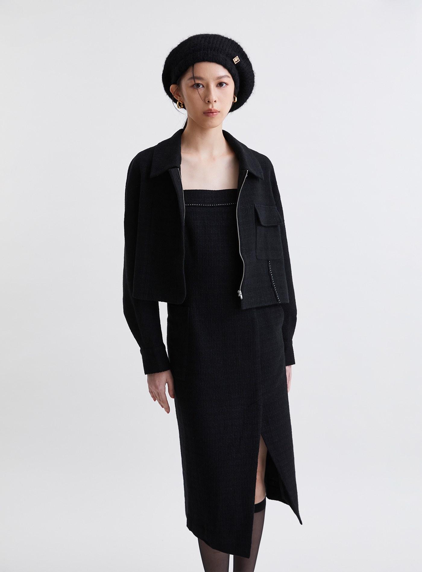 - 可與 '法式優雅拉鍊短版外套' 搭成套裝