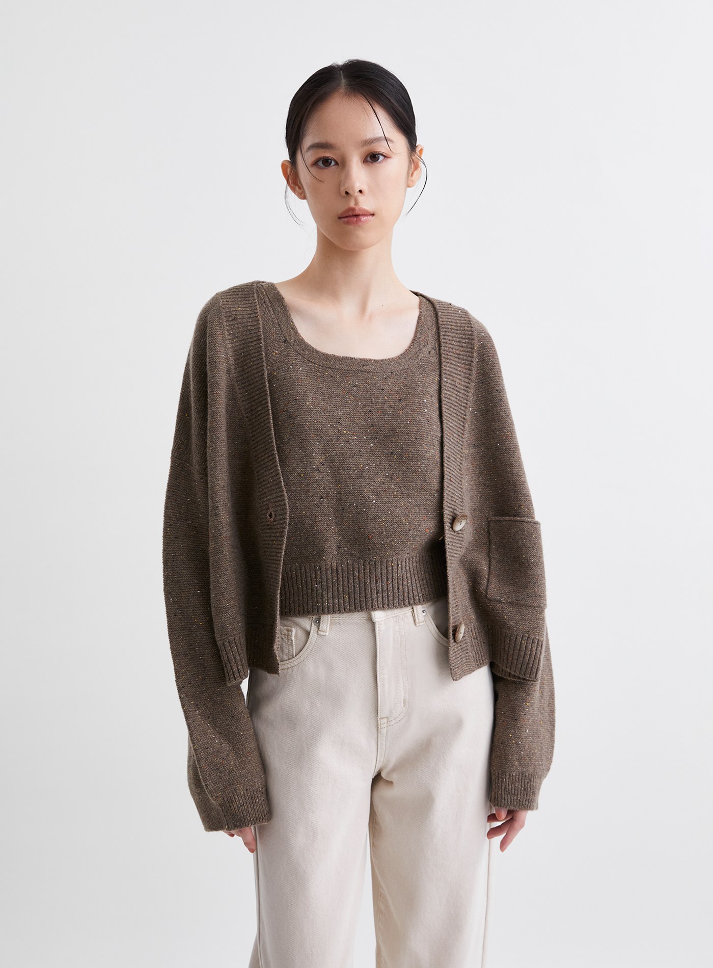- 選用特殊雙色彩點紗,整件立體針織面料