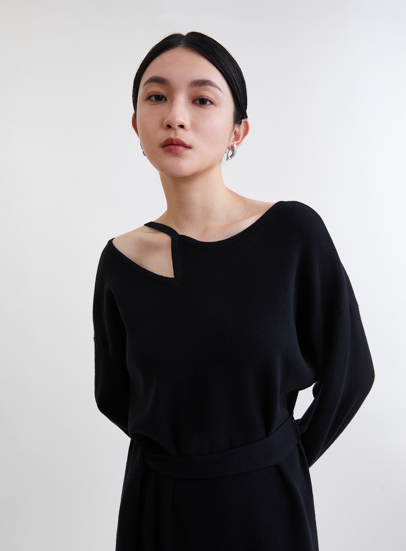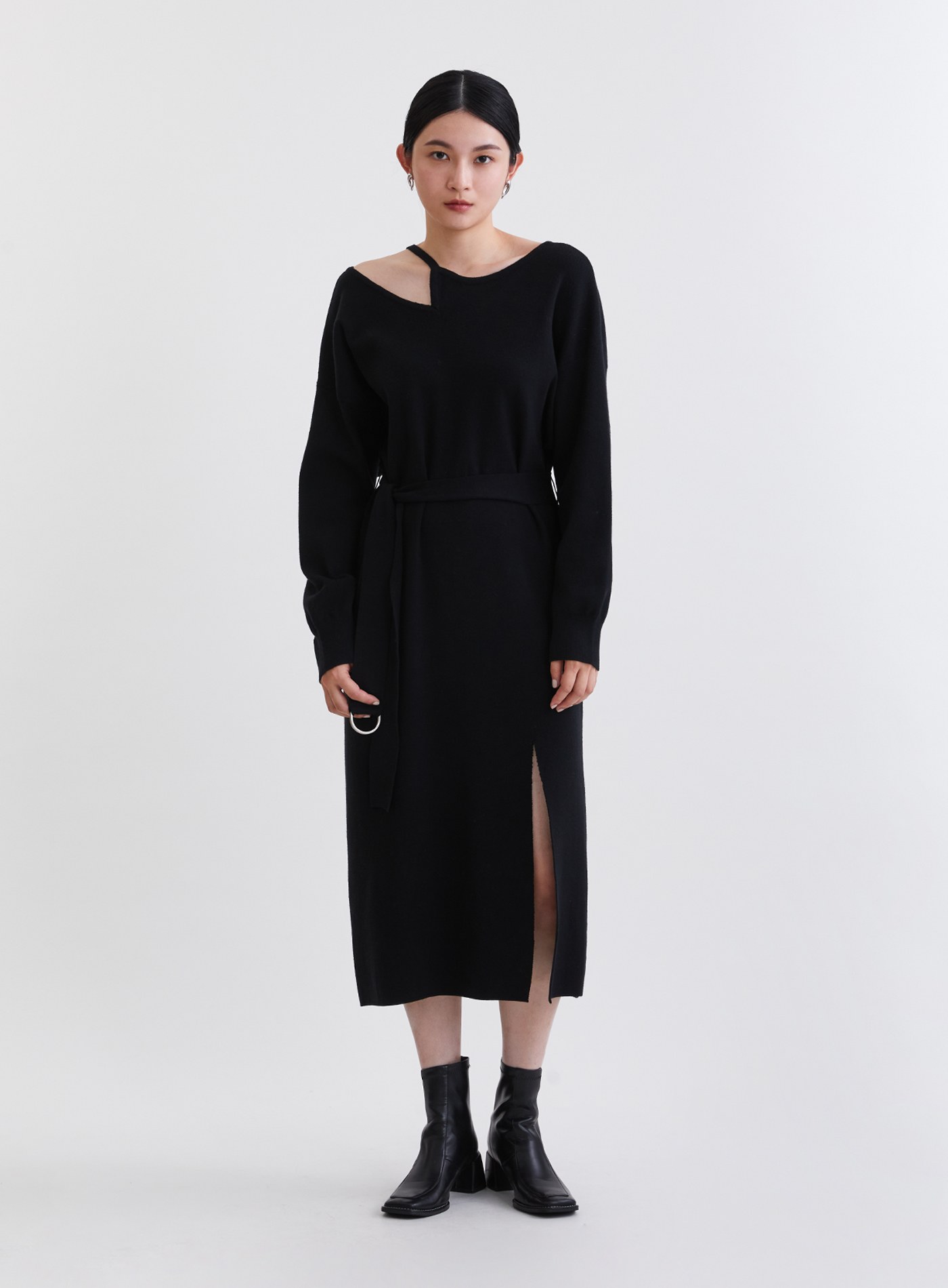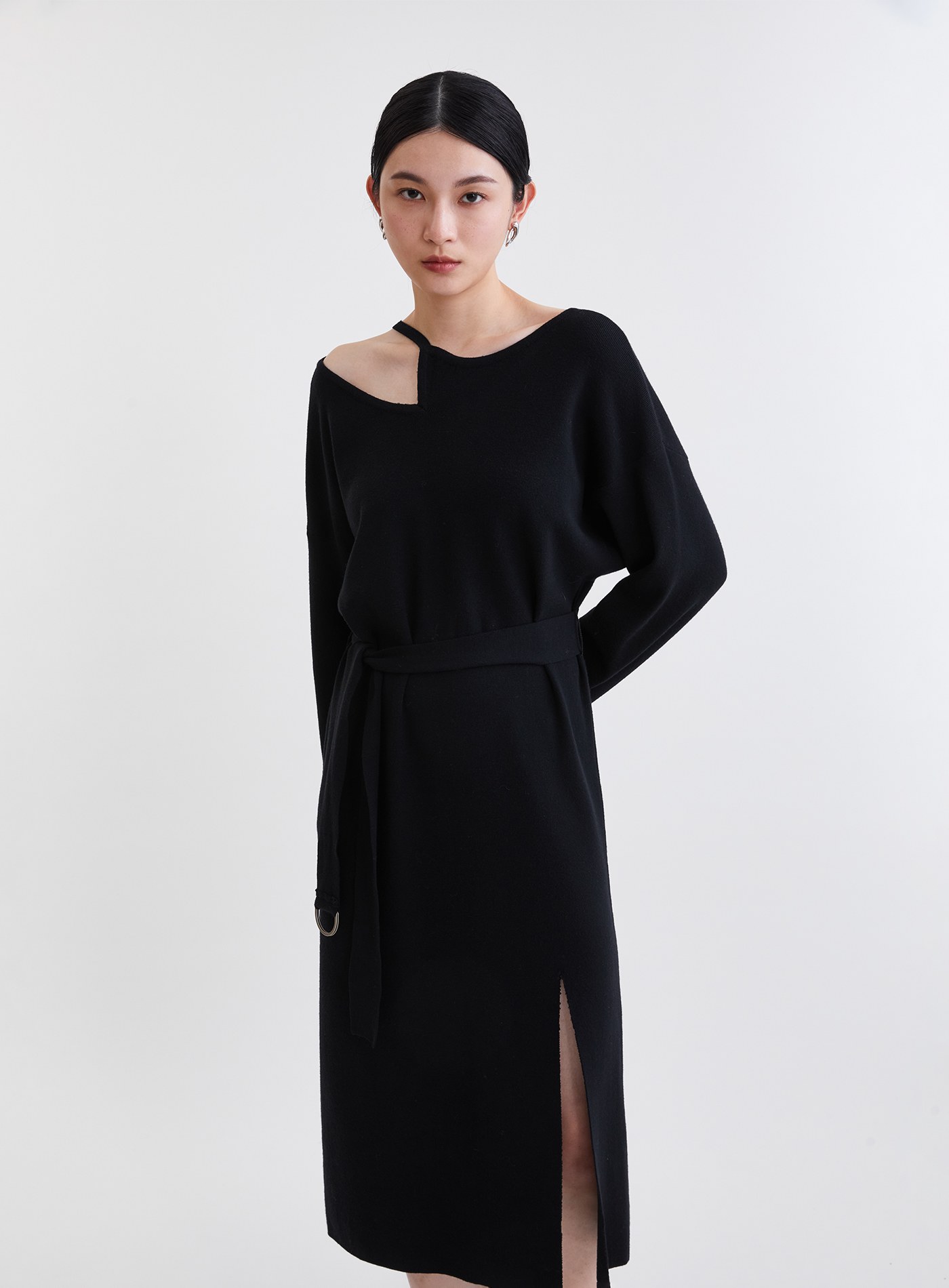 不對稱肩帶盪領斜裁洋裝$86 USD