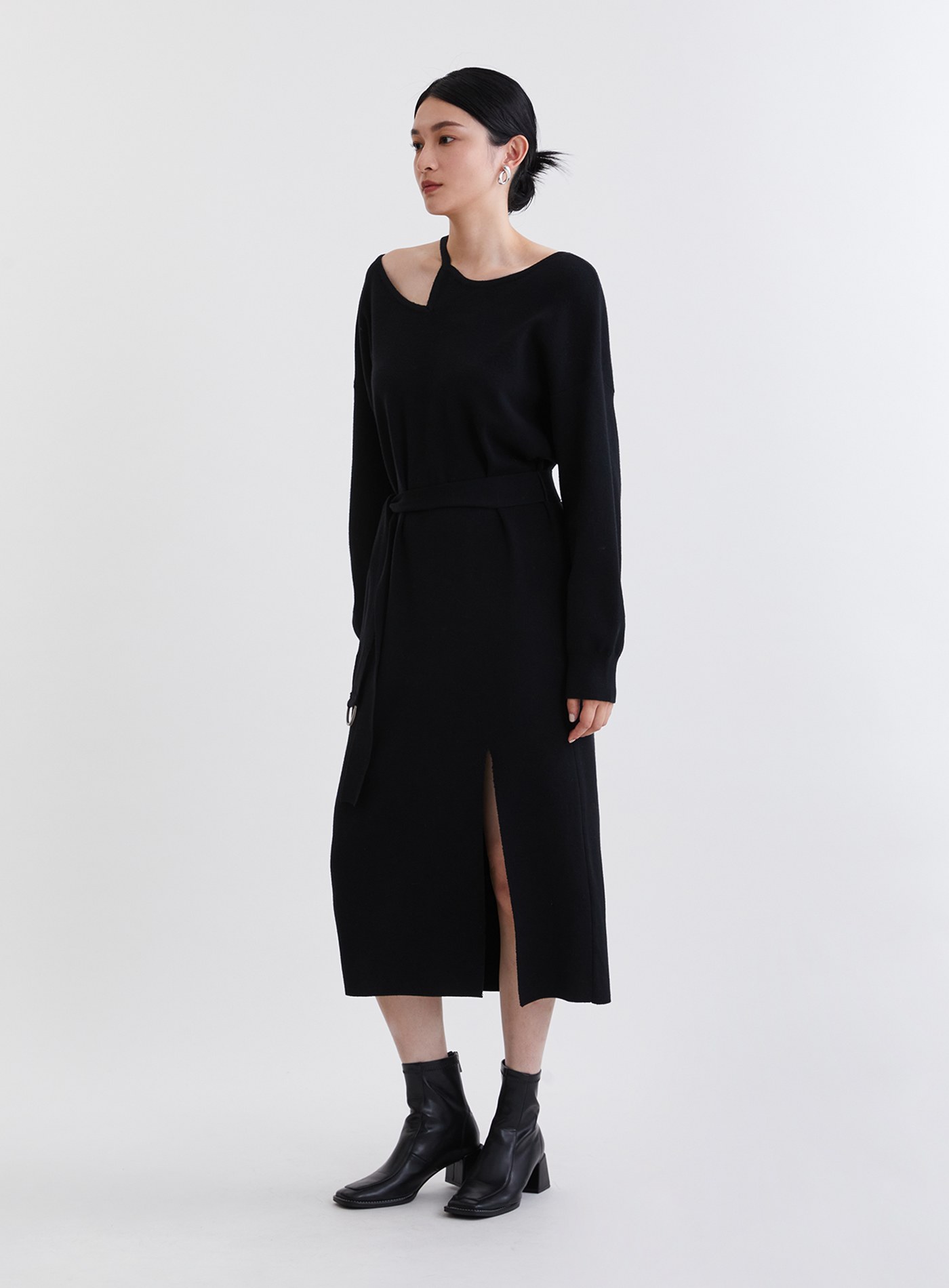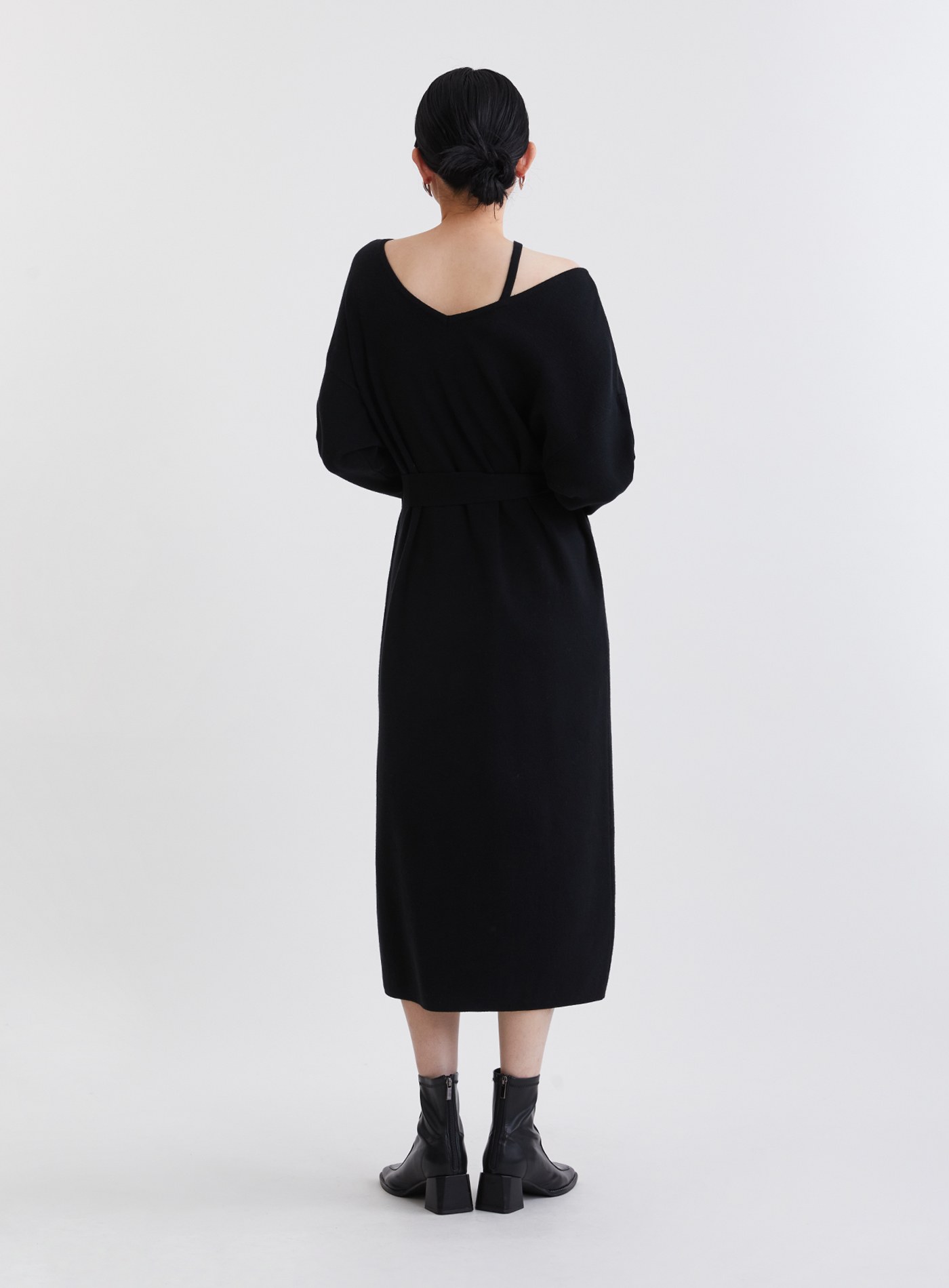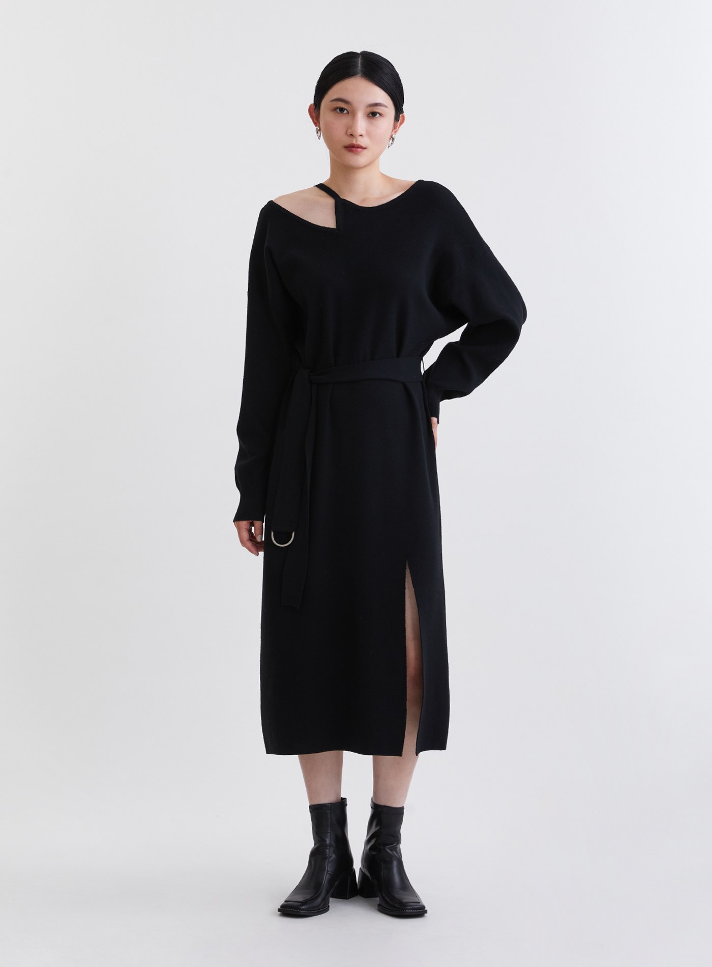 不對稱肩帶盪領斜裁洋裝$86 USD