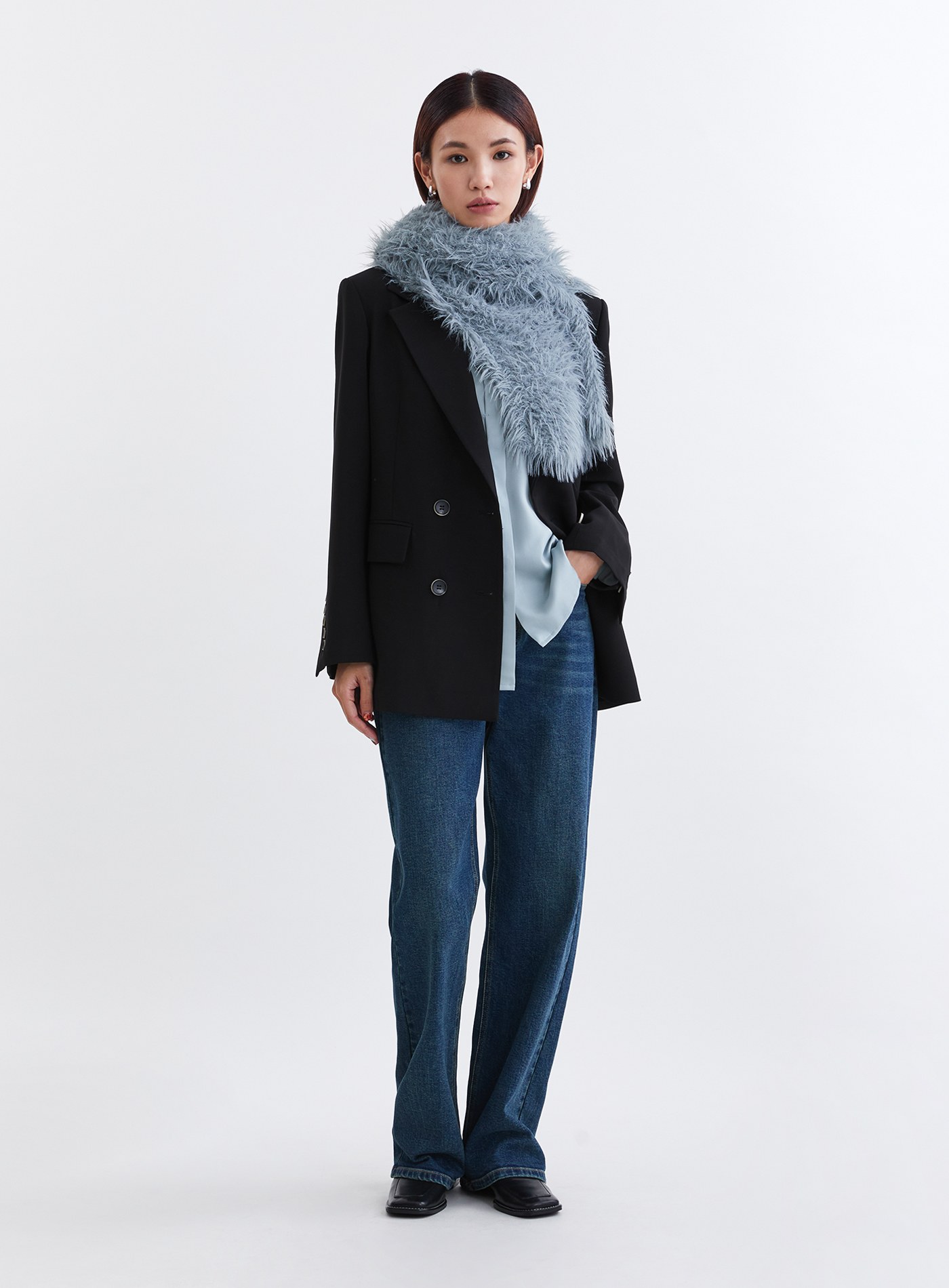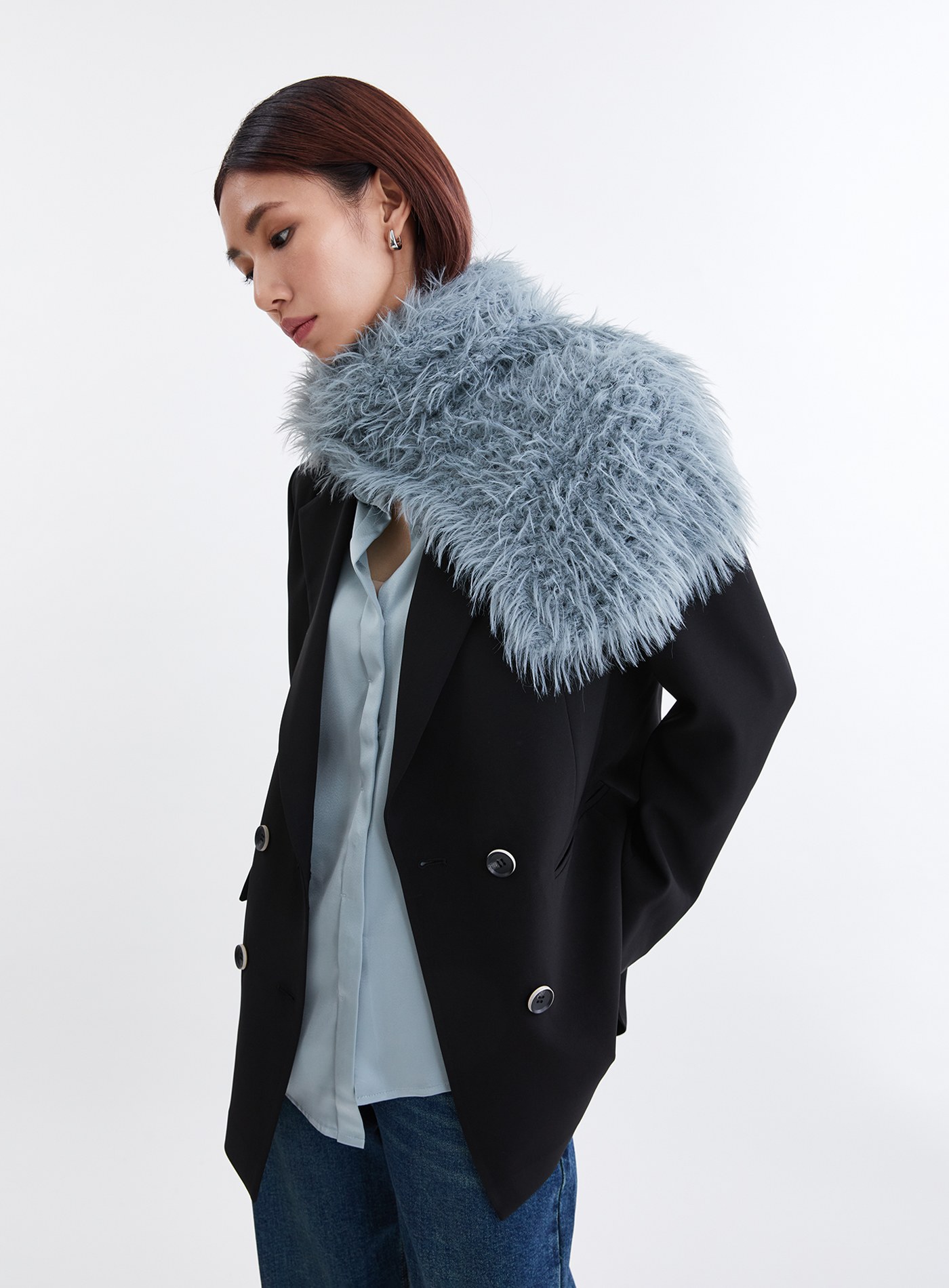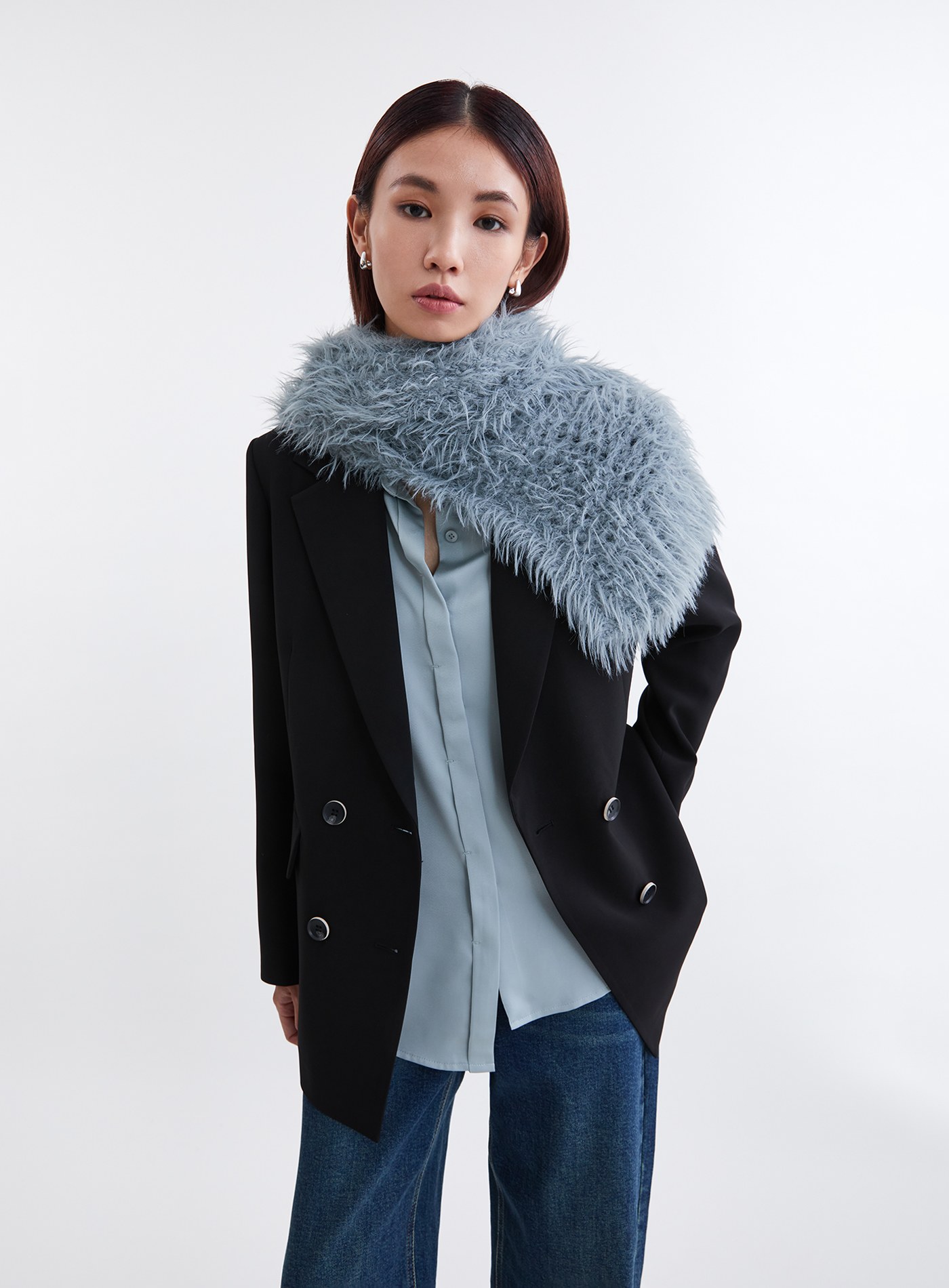 - 長毛紗網洞組織,柔軟垂墜,可隨意穿搭