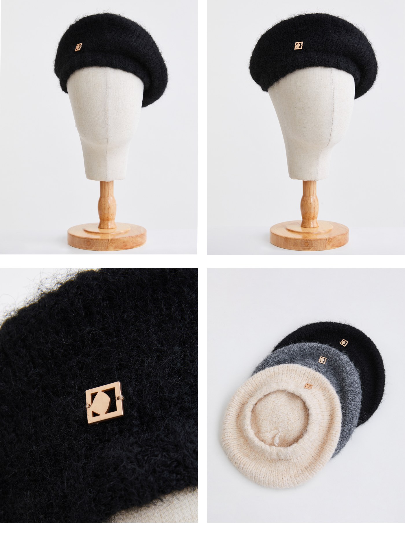 復古輪廓羊毛緞帶寬帽$83 USD