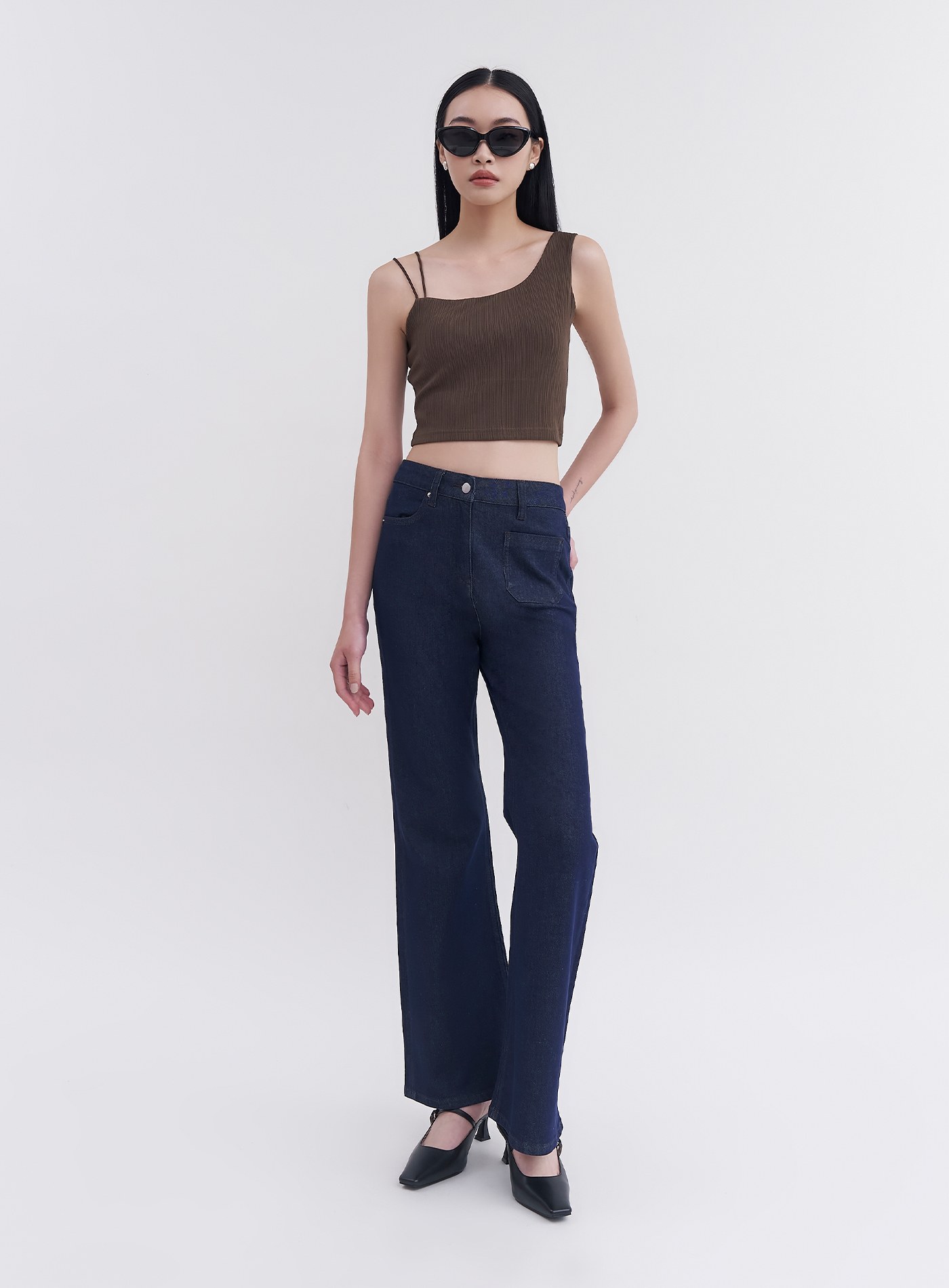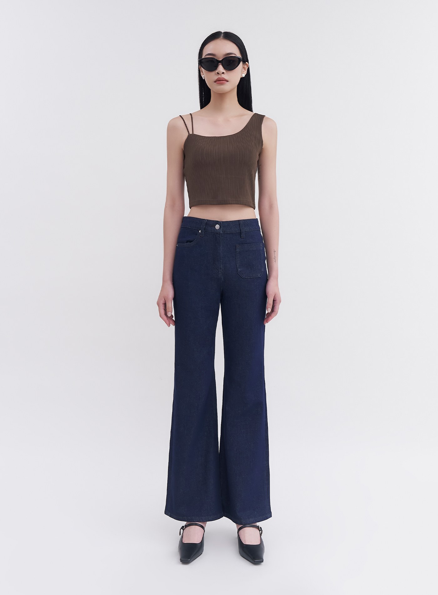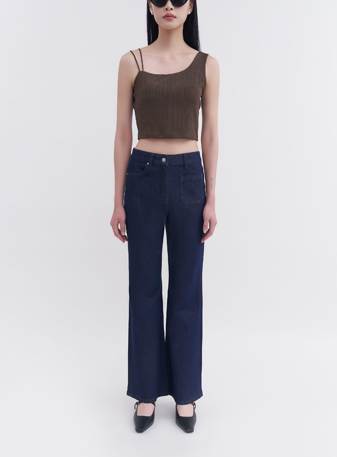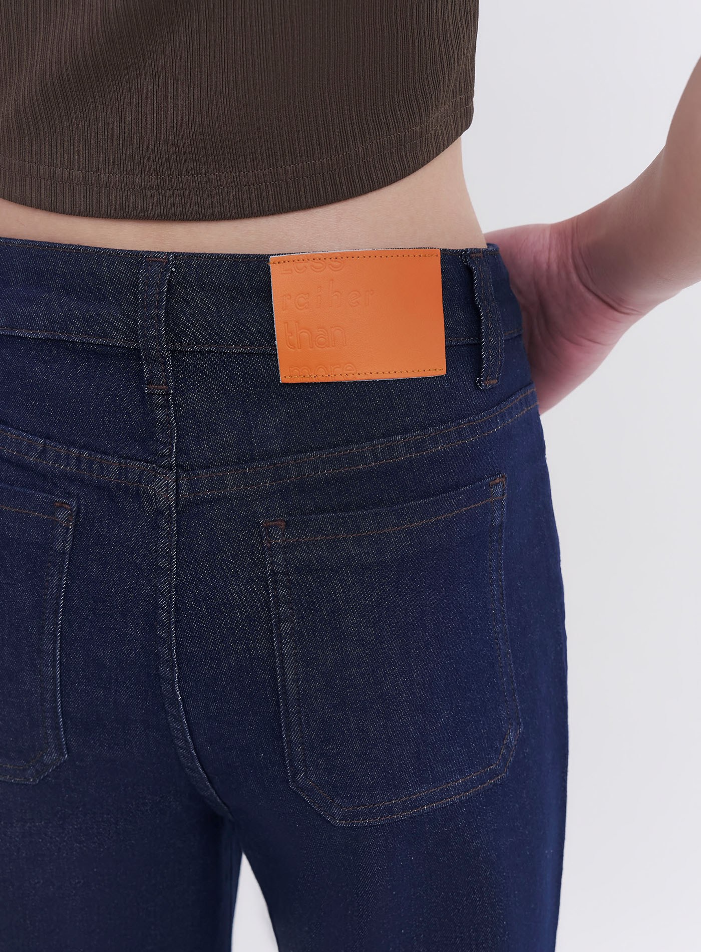 - 撞色牛仔線,後腰頭品牌 LOGO 皮標
