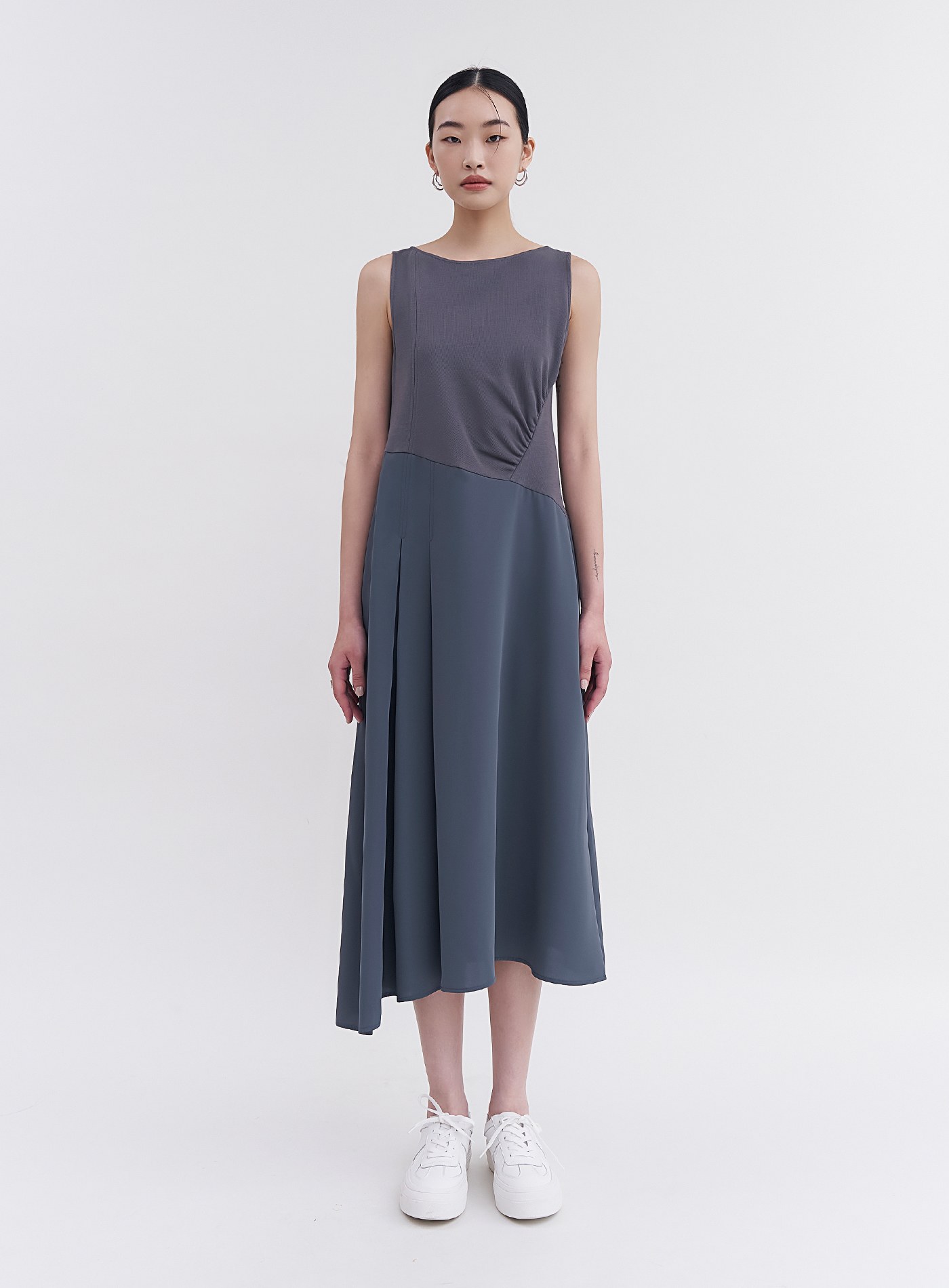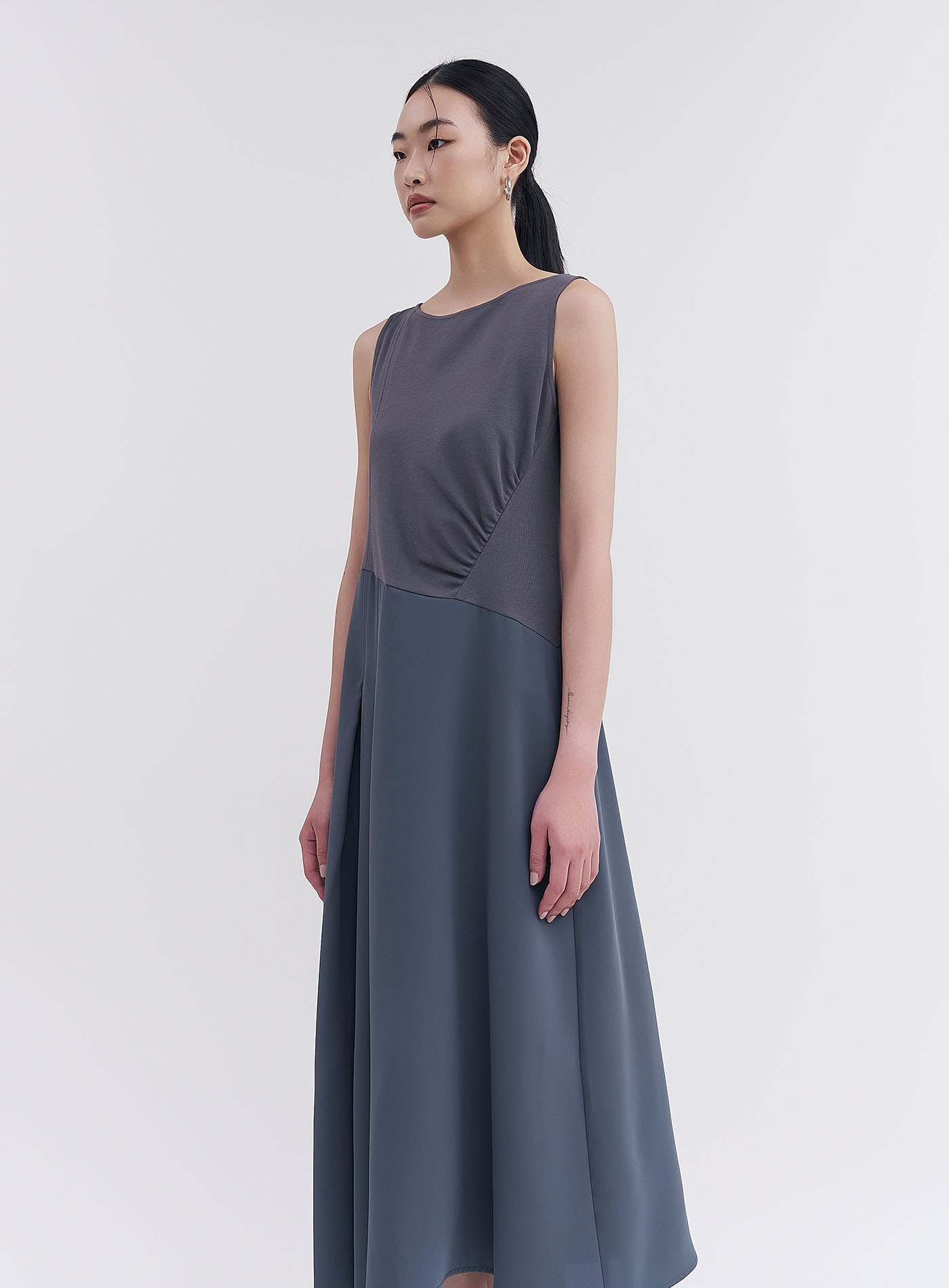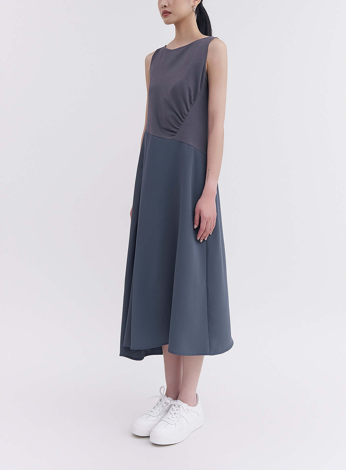 - 側抽皺設計,俐落有型