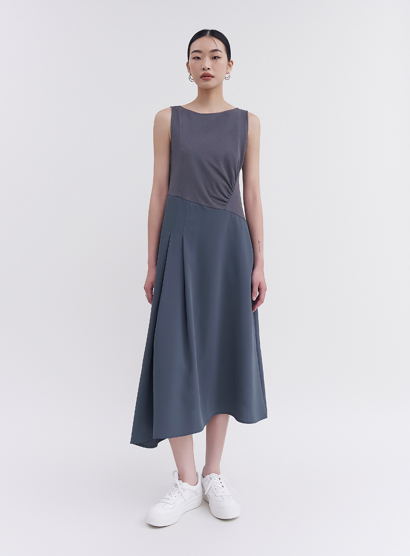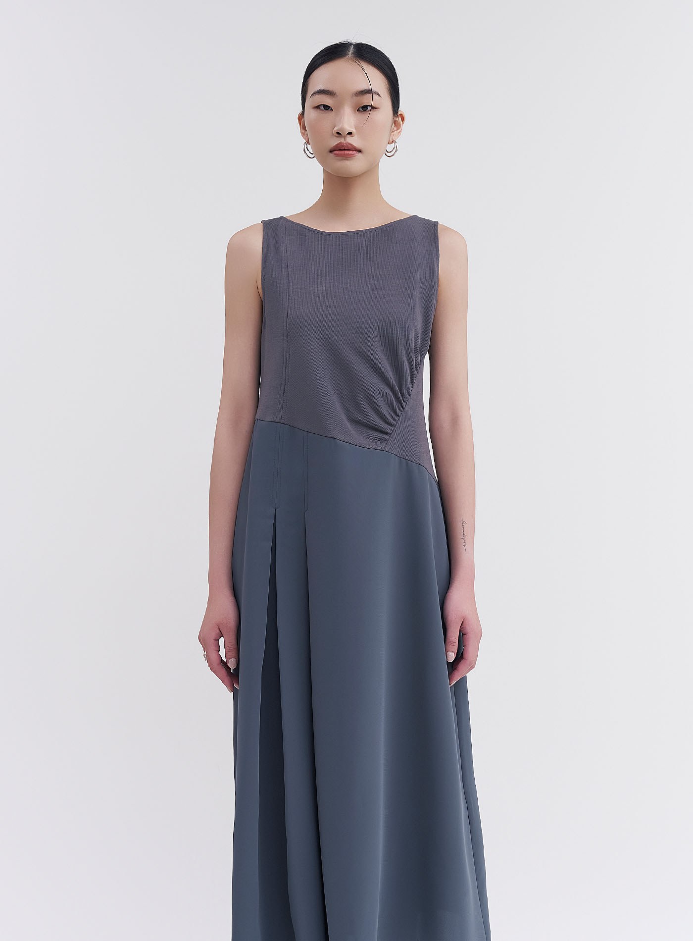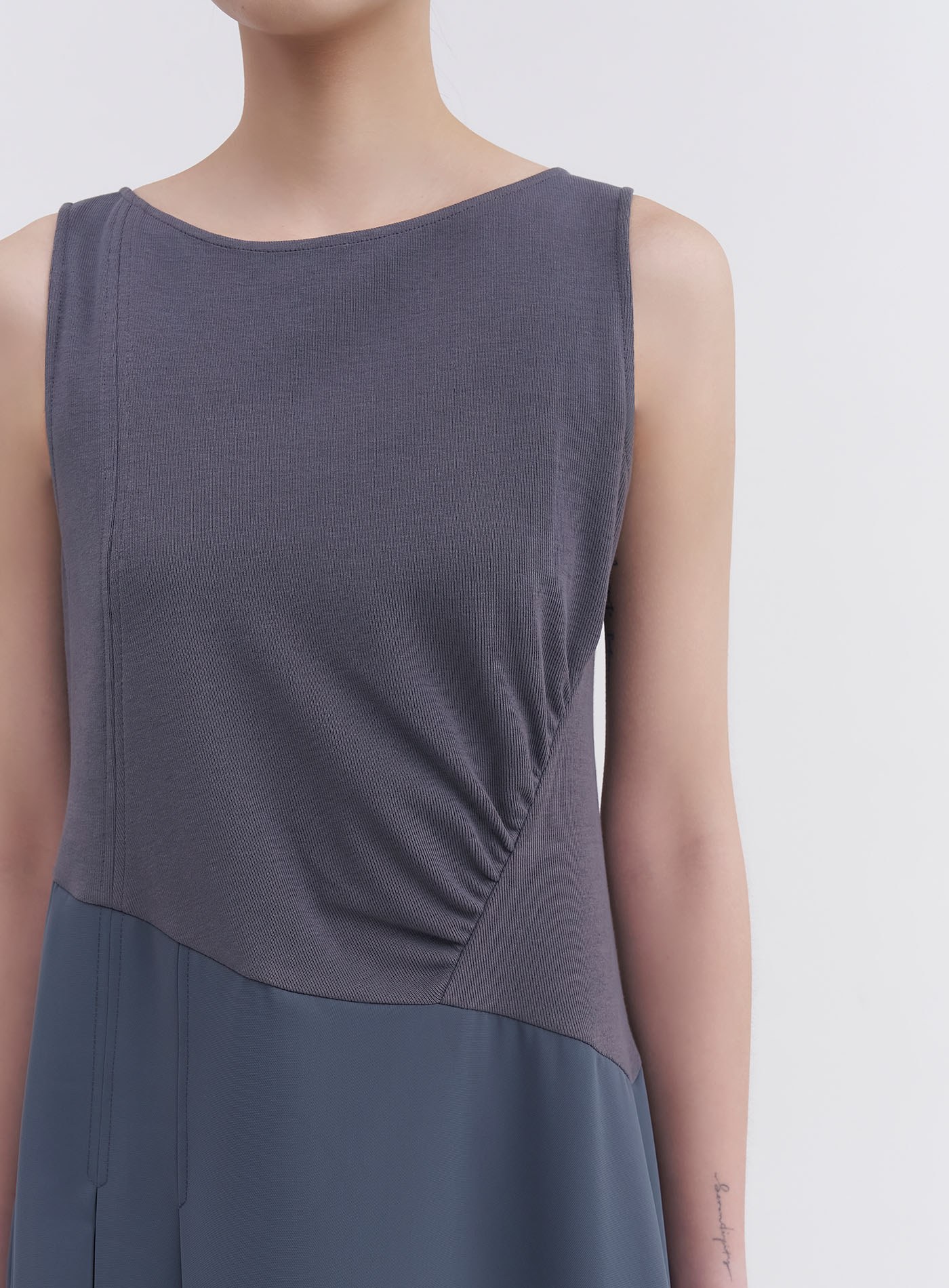 - 側抽皺設計,俐落有型