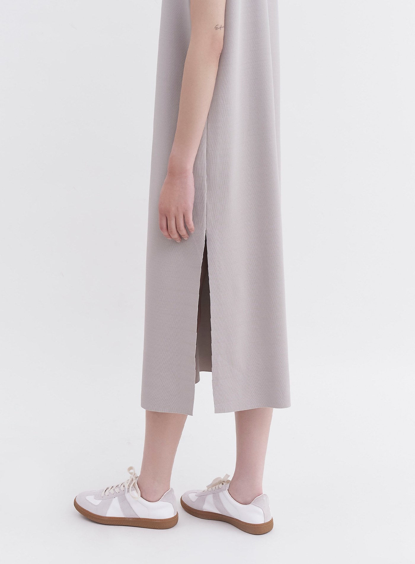 異素材拼接側開衩長洋裝$86 USD