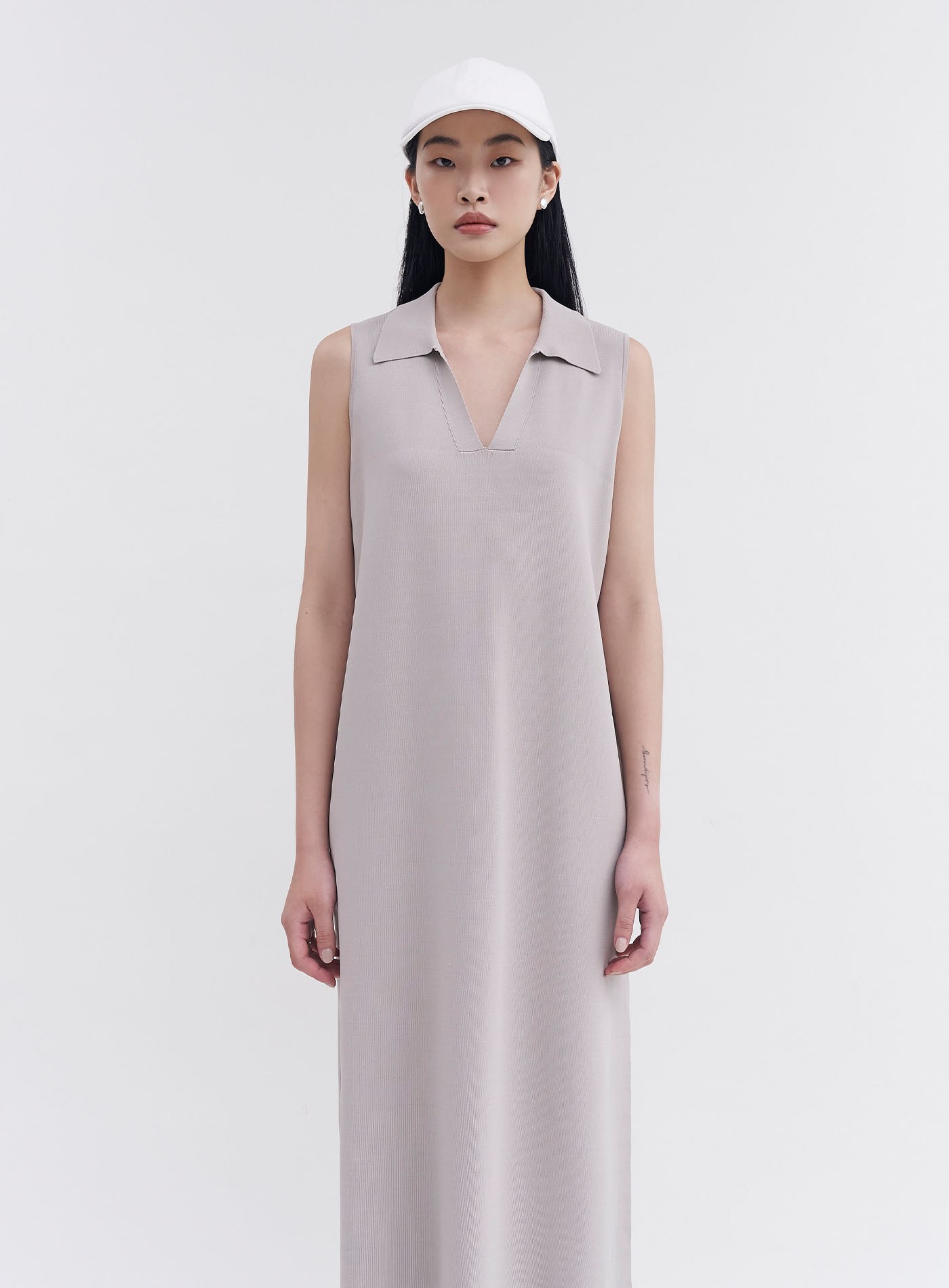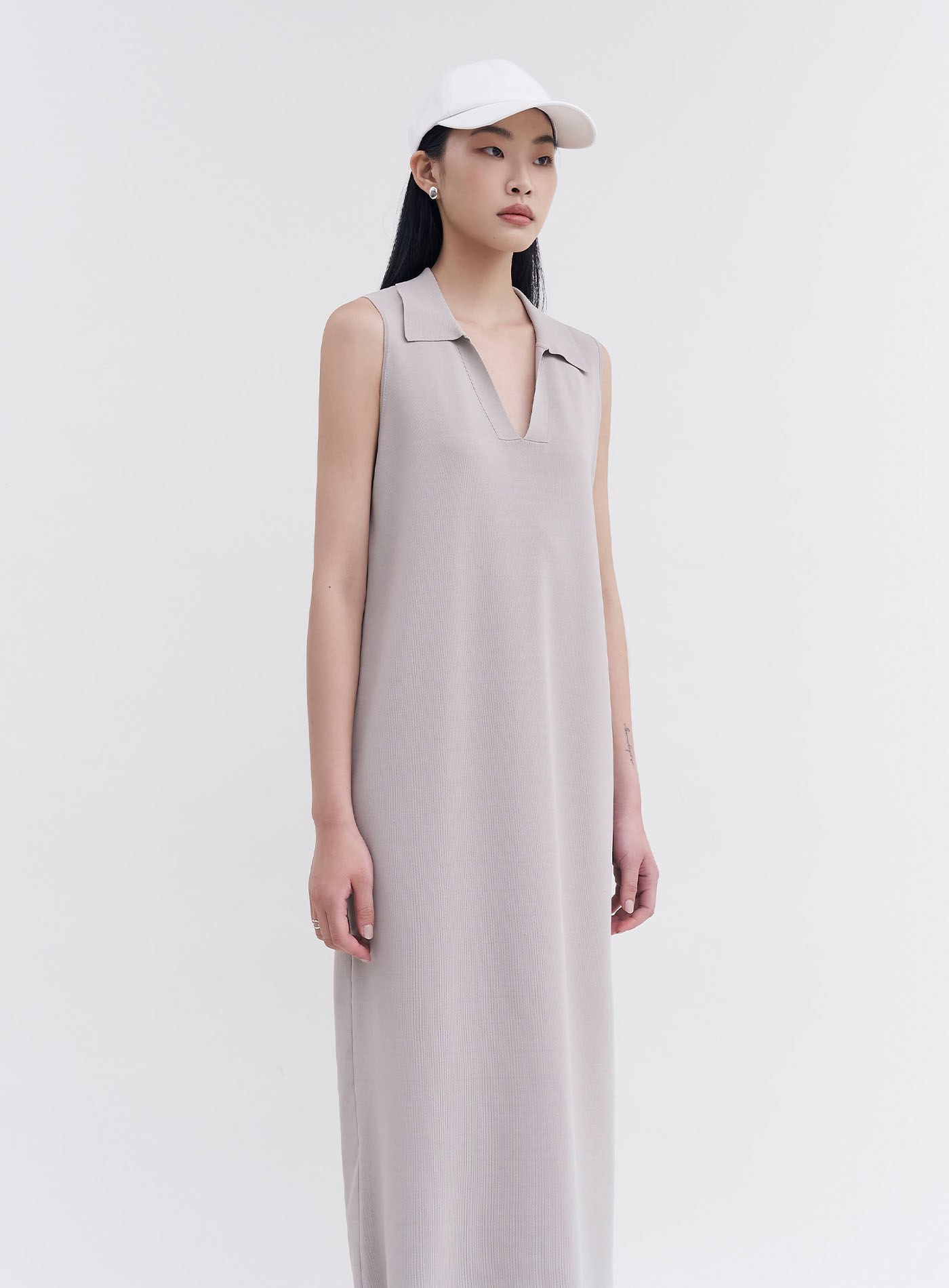 船領細羅紋抽皺長洋裝$105 USD