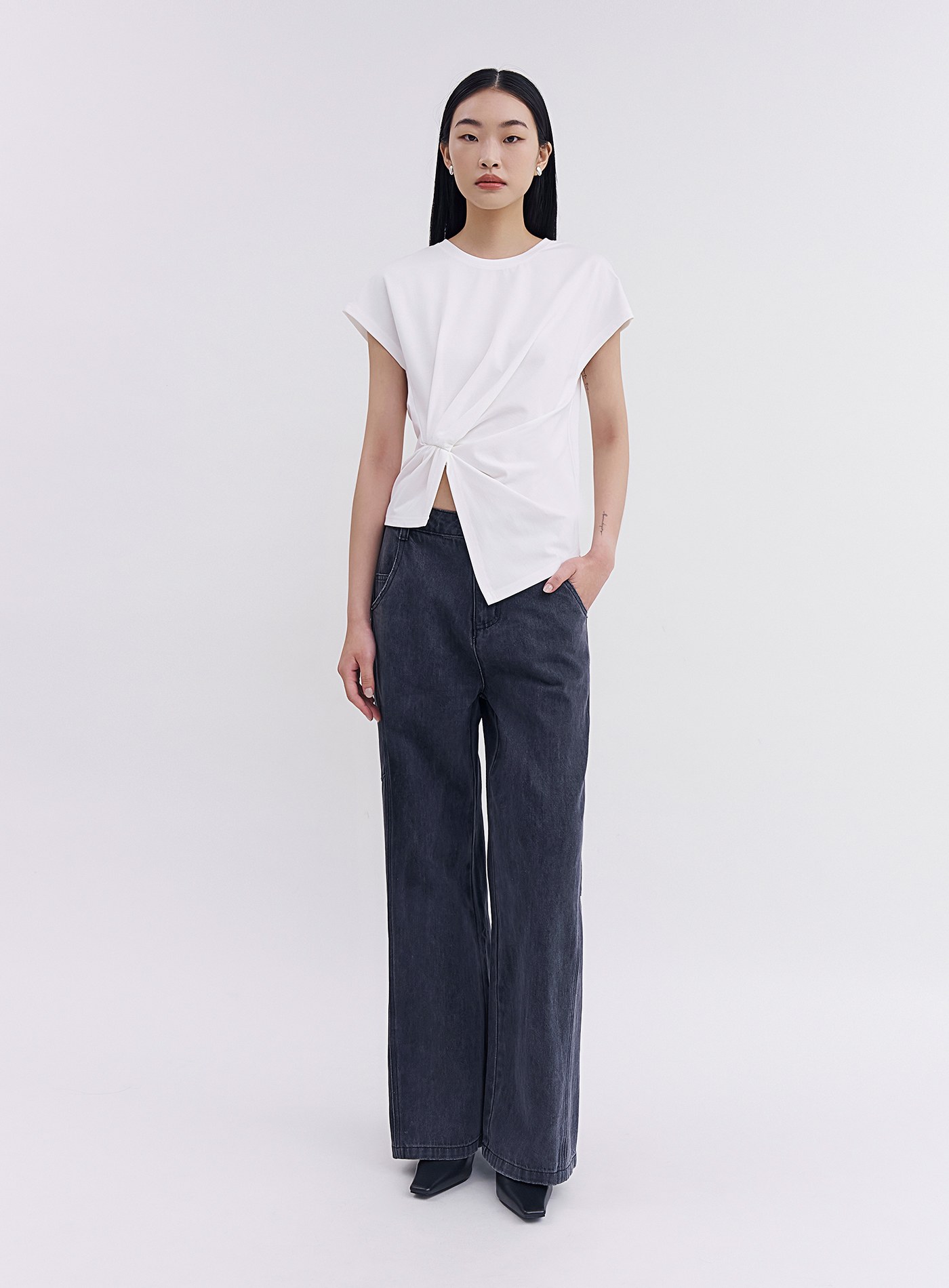 顯瘦滑順鬆緊西裝寬褲$70 USD