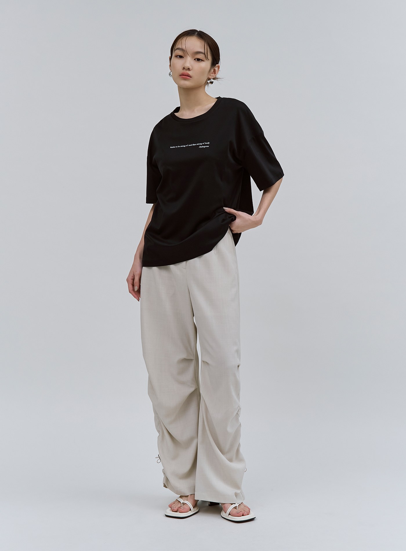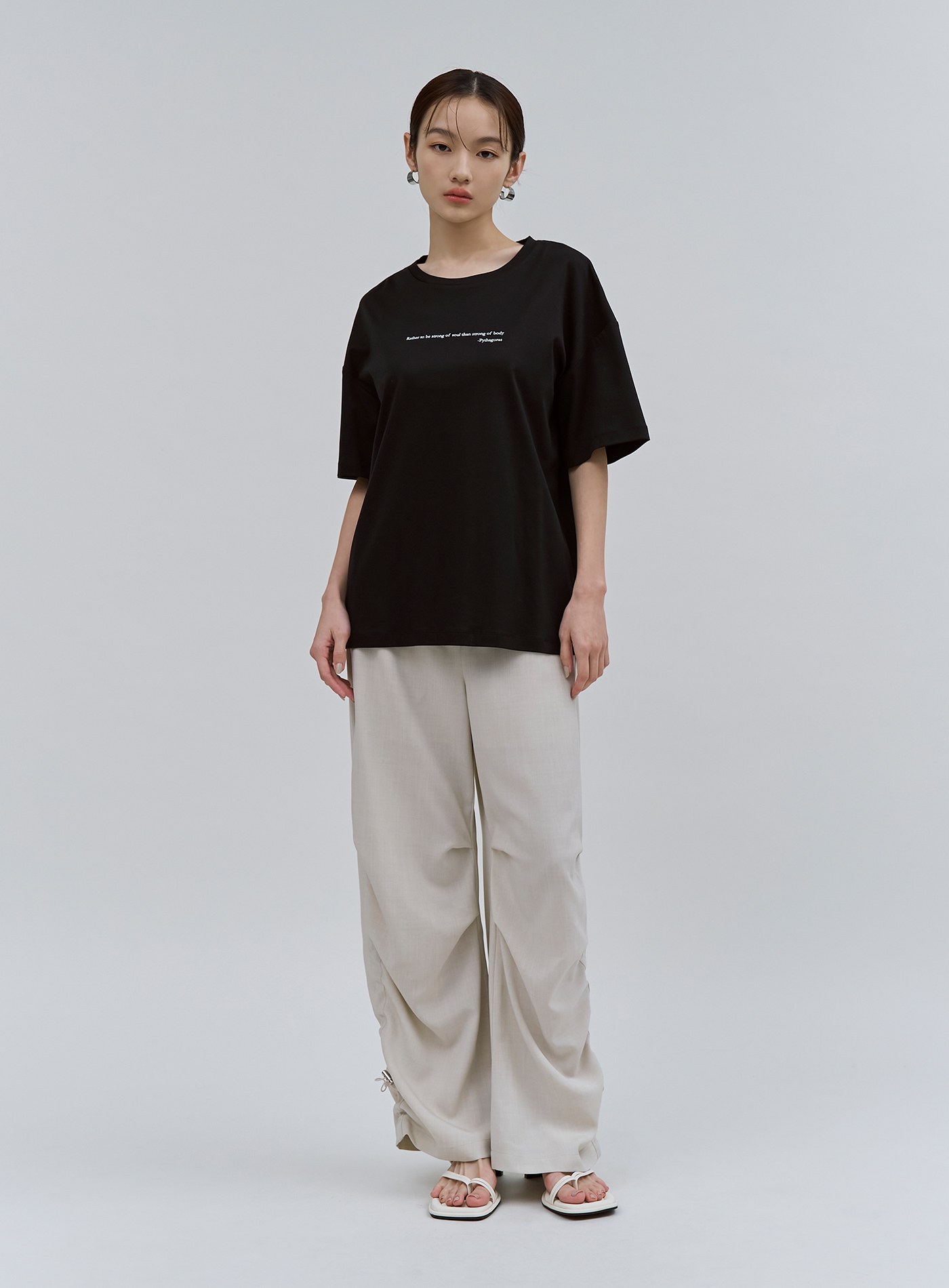微光澤後壓褶五分袖上衣$63 USD