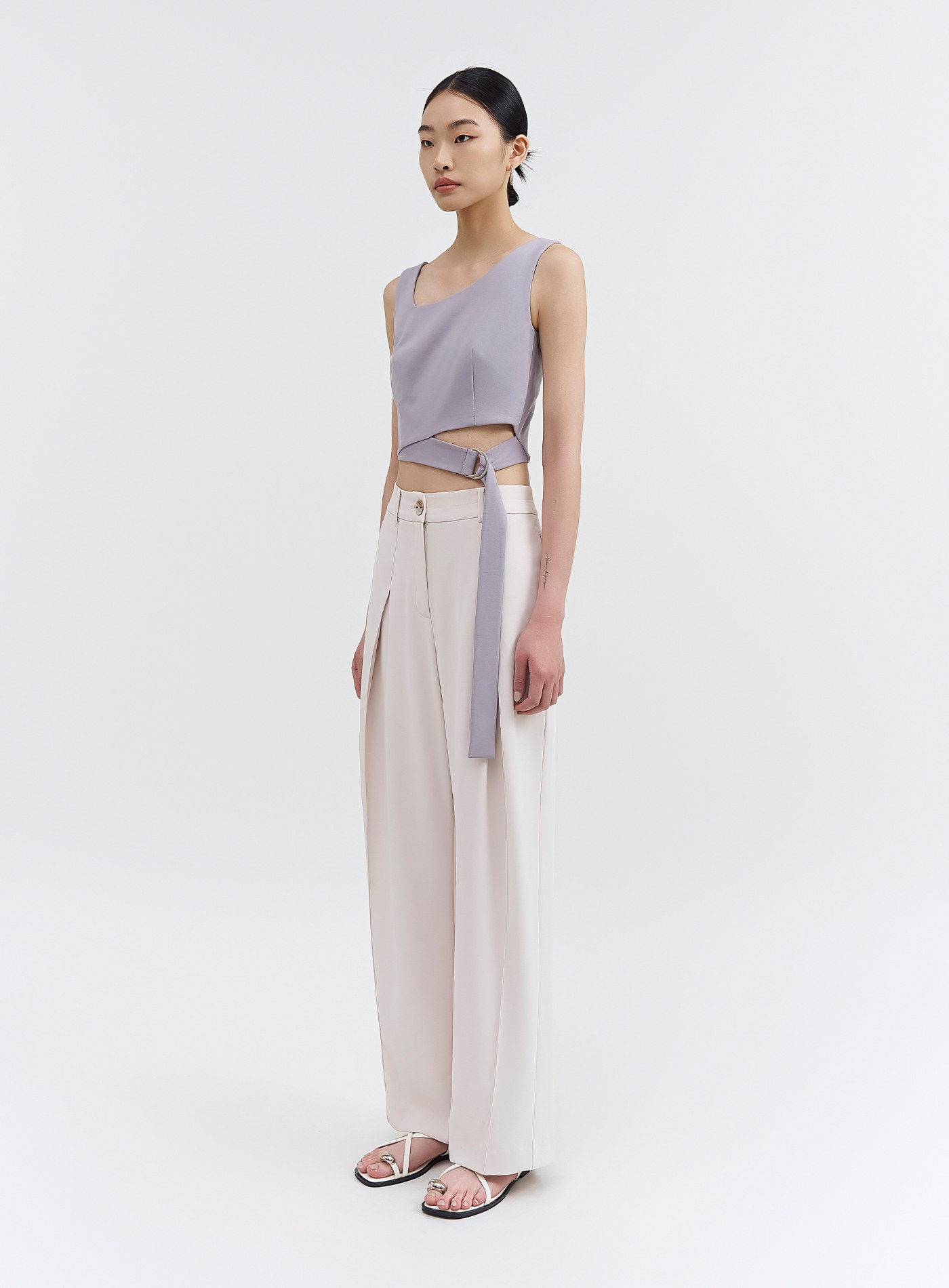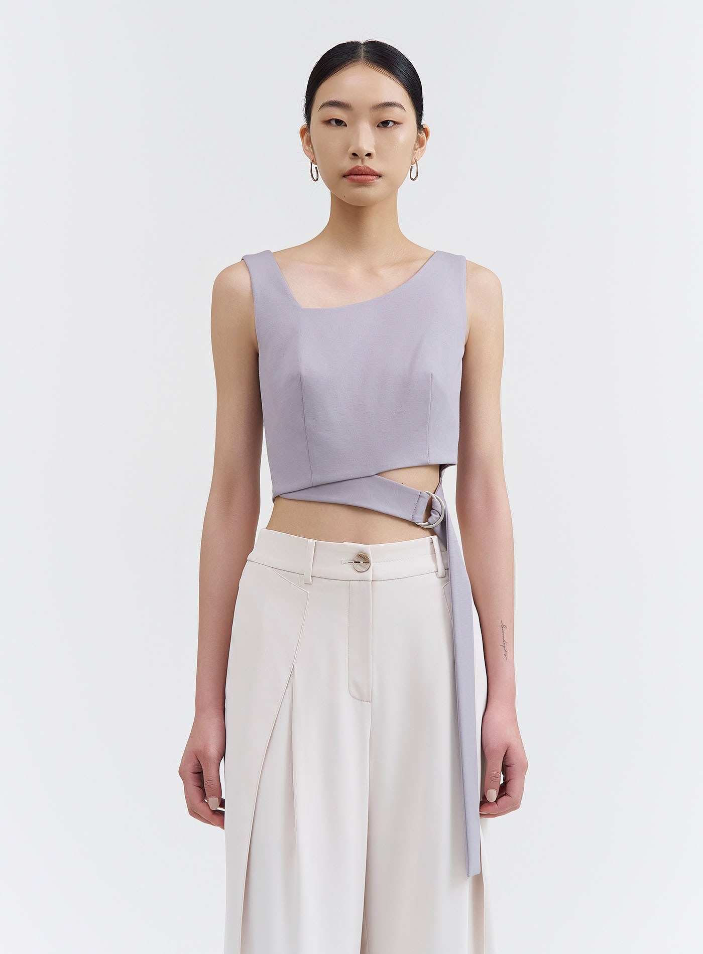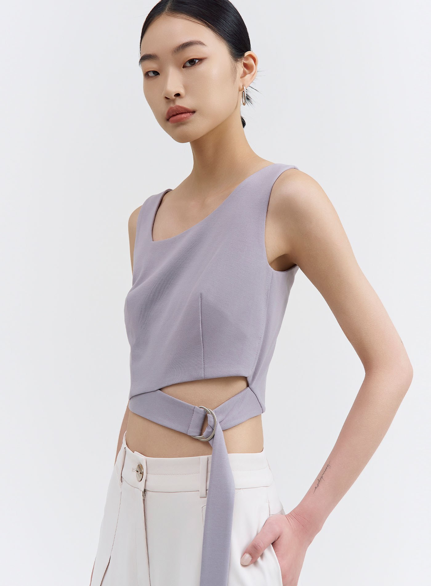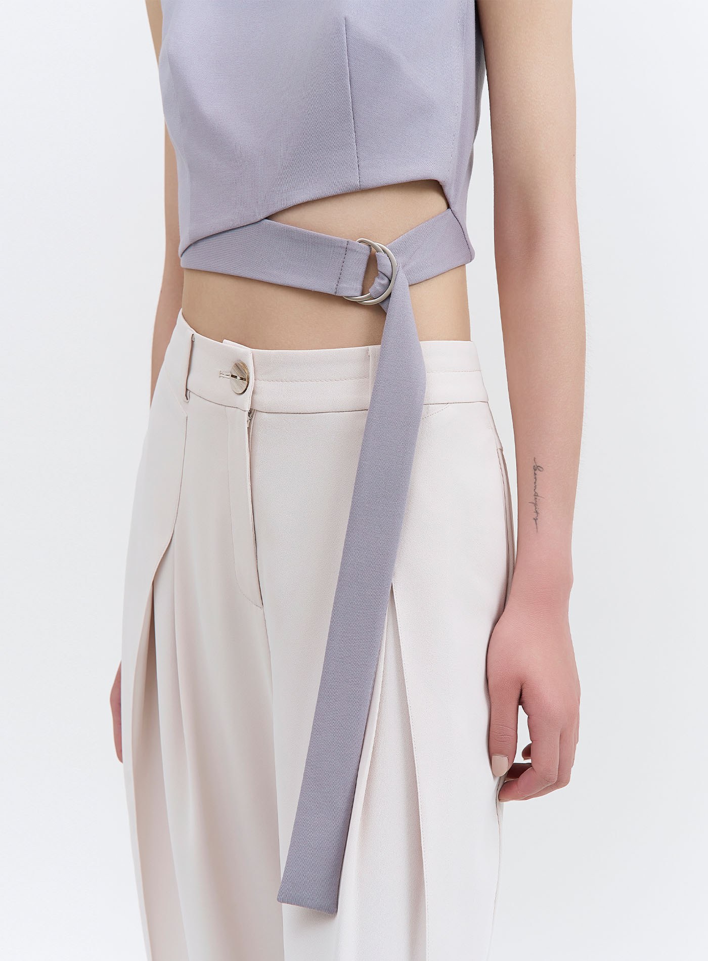 - 側邊雙D環腰帶,略微鏤空,增添造型感